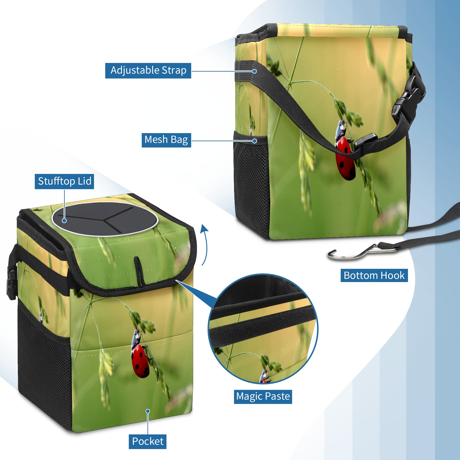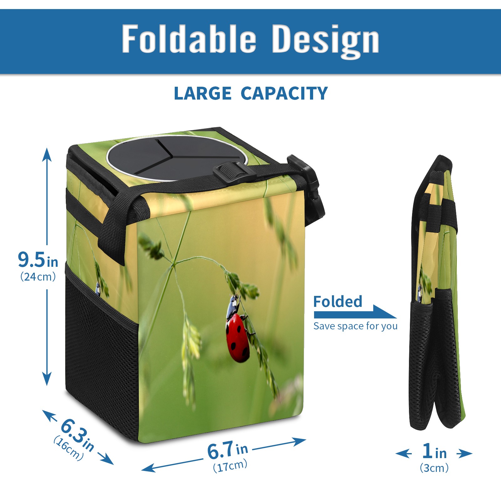 Car Garbage Can — Multi-functional, Lightweight Portable, Reusable Vehicle Trash Can, Waterproof with Sufficient Storage Capacity Ladybug On Plant