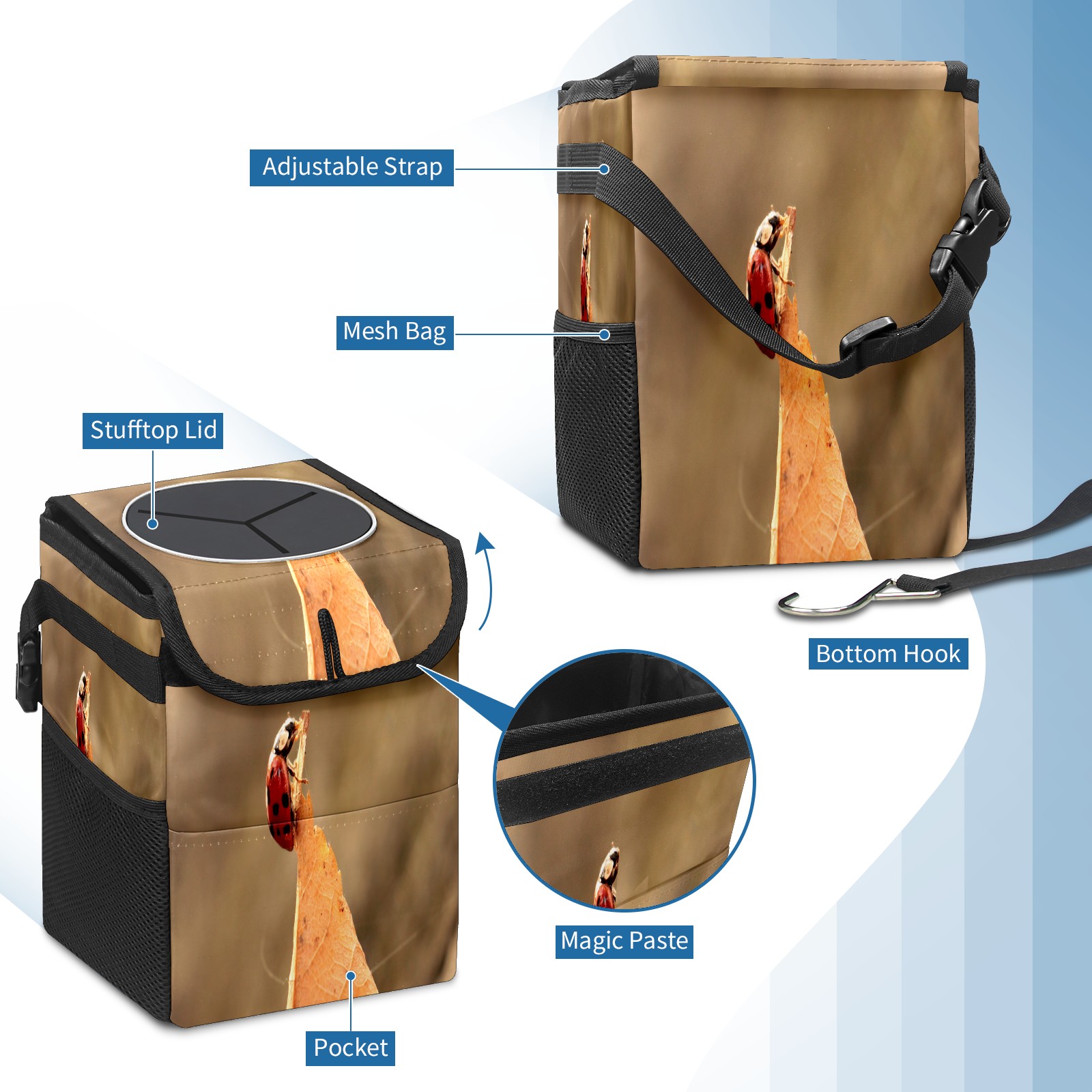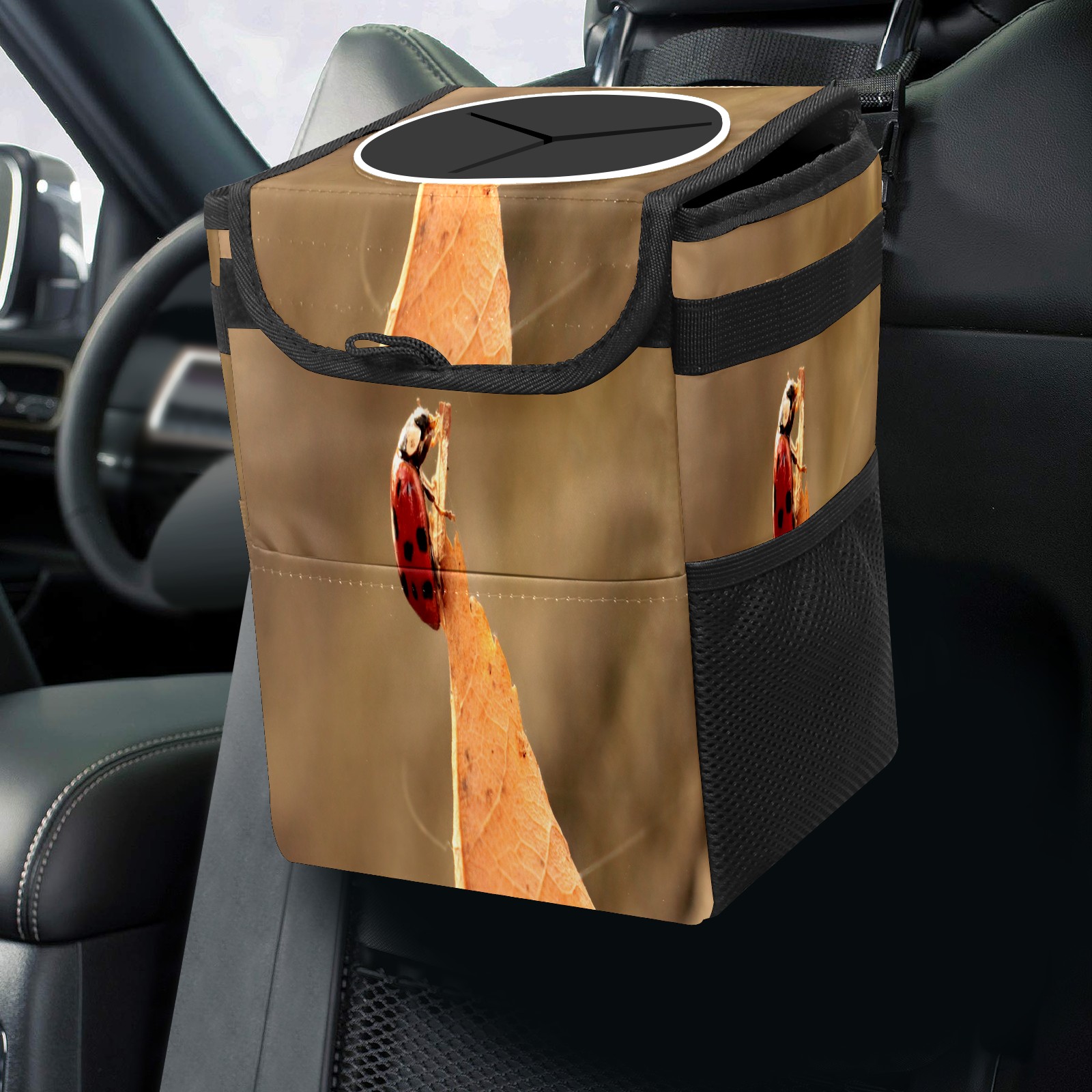 Car Garbage Can — Multi-functional, Lightweight Portable, Reusable Vehicle Trash Can, Waterproof with Sufficient Storage Capacity Ladybug On Leaves