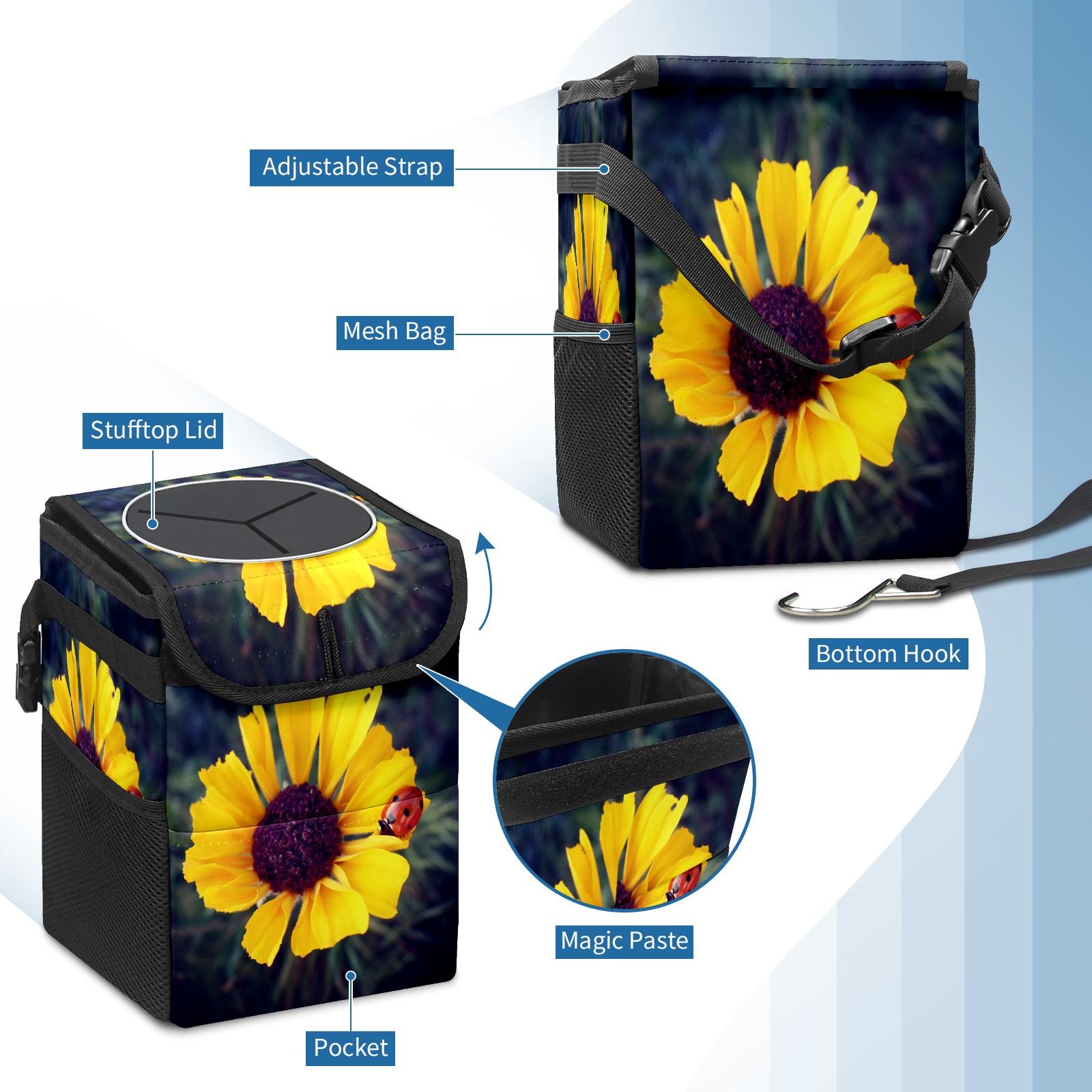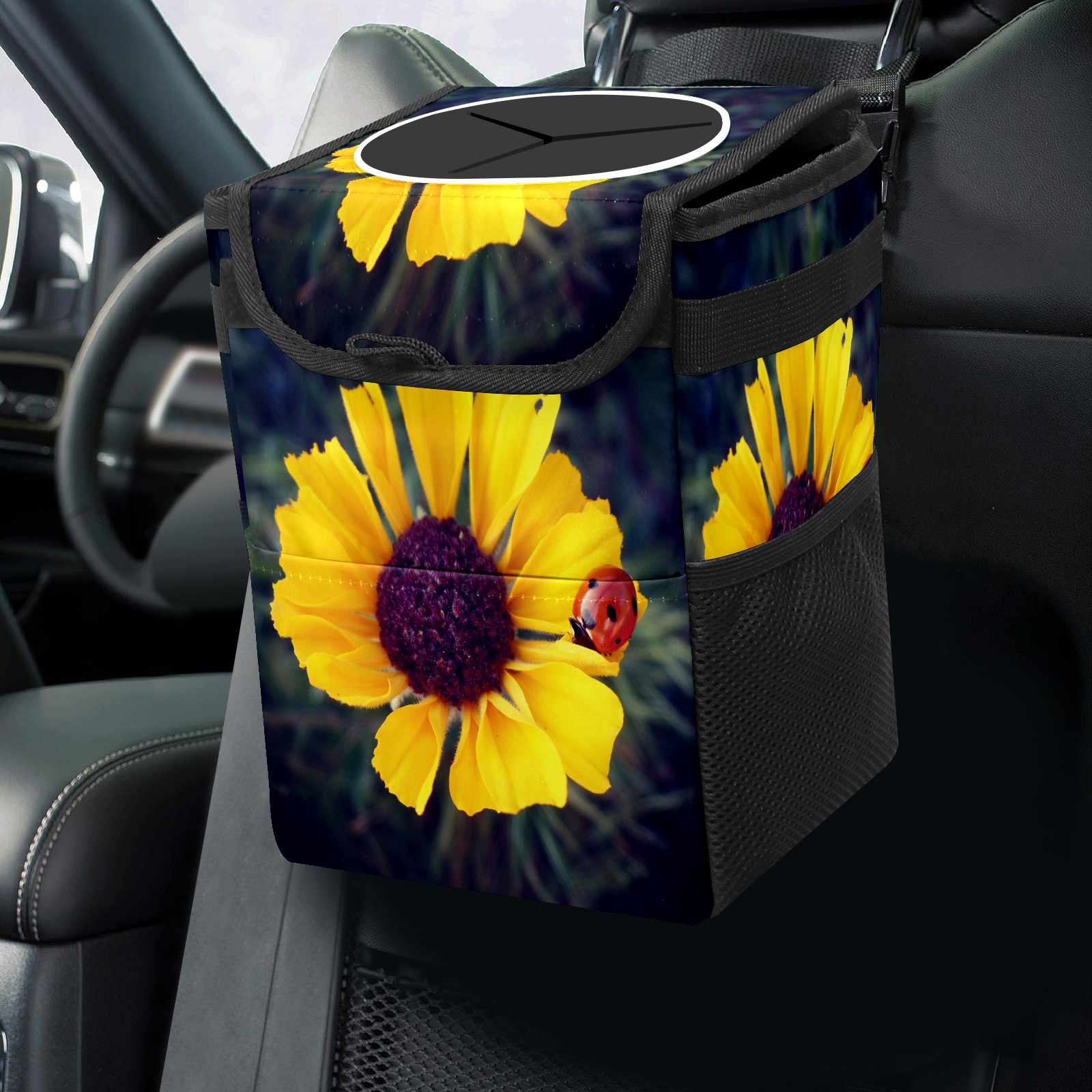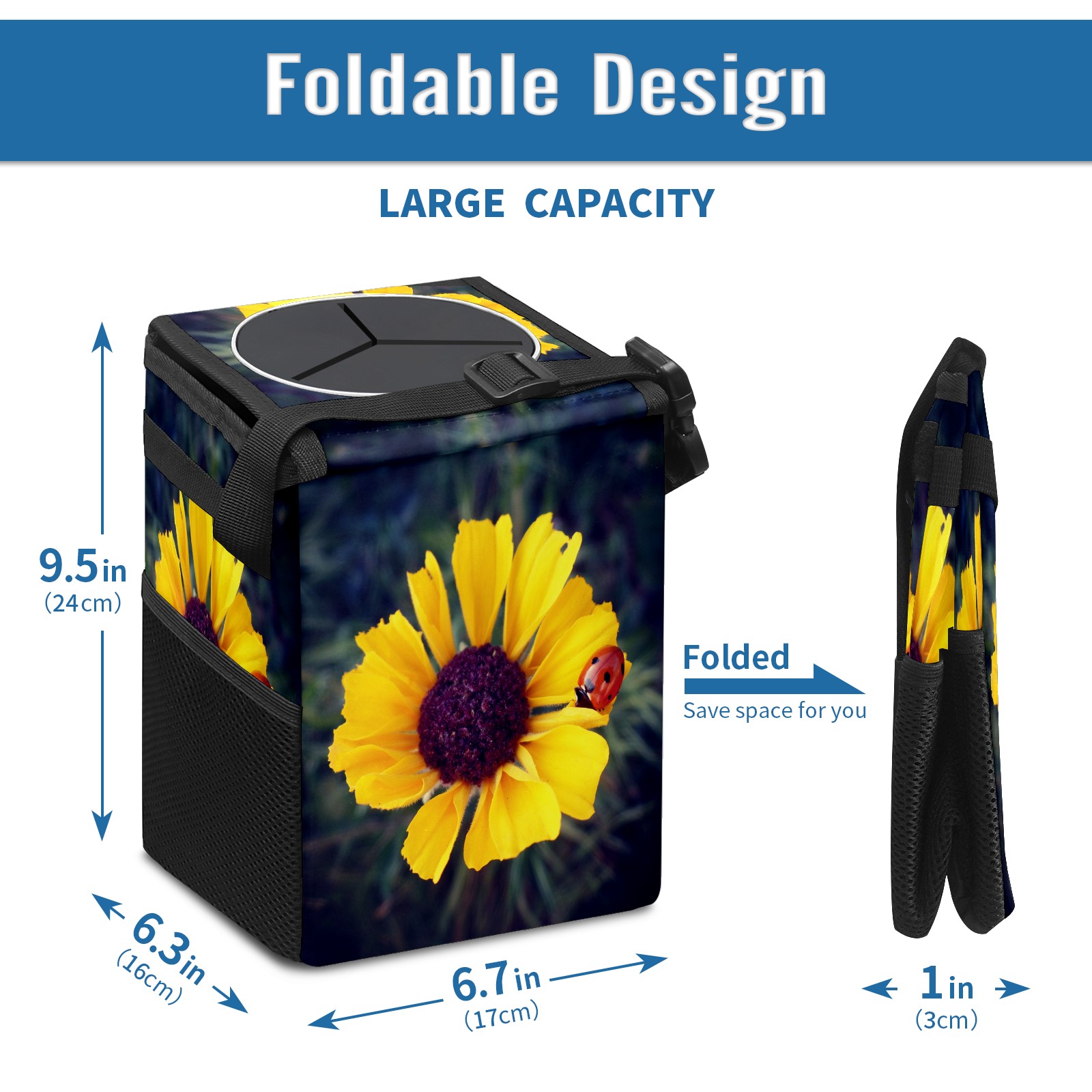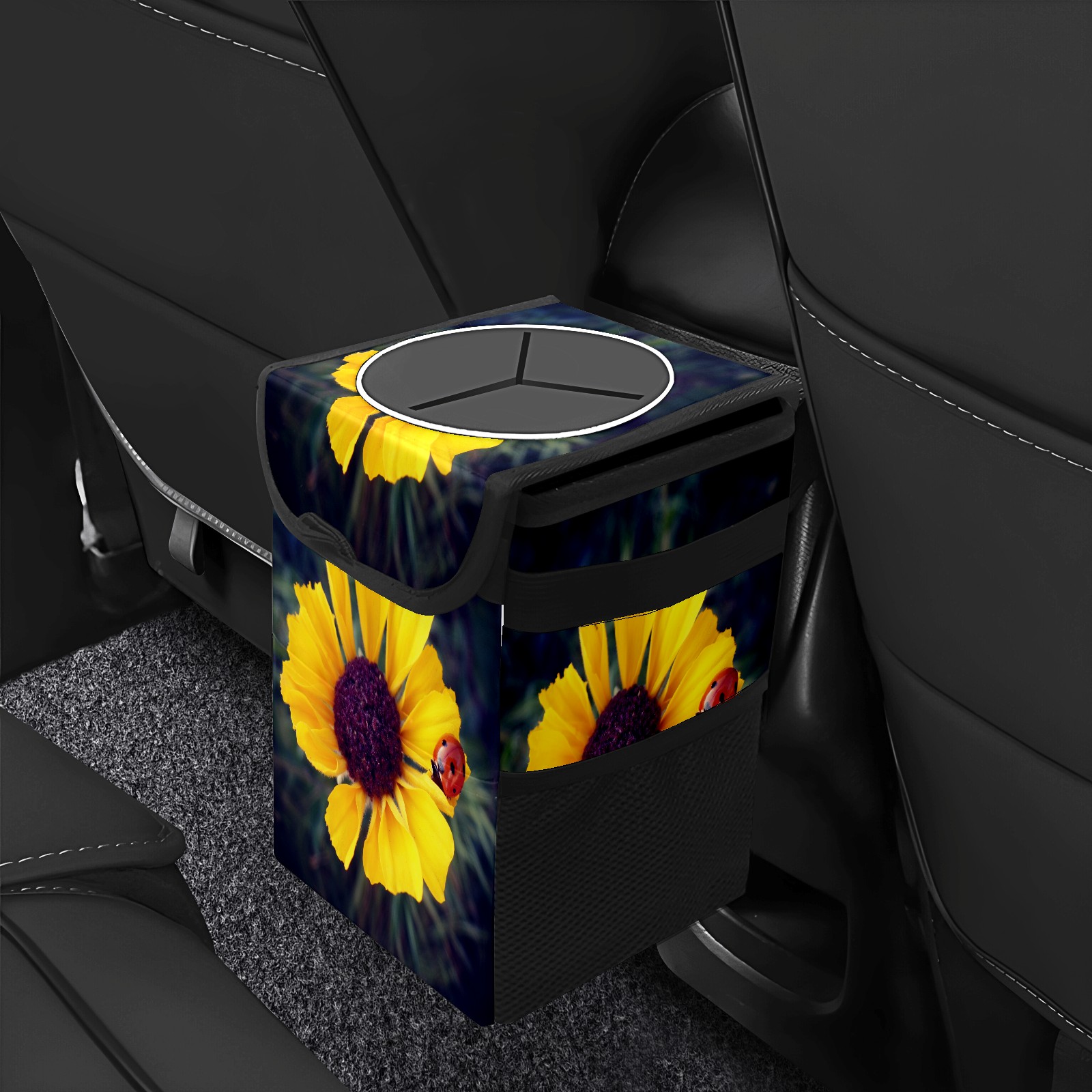 Car Garbage Can — Multi-functional, Lightweight Portable, Reusable Vehicle Trash Can, Waterproof with Sufficient Storage Capacity Ladybug On Blossom Summer (1)