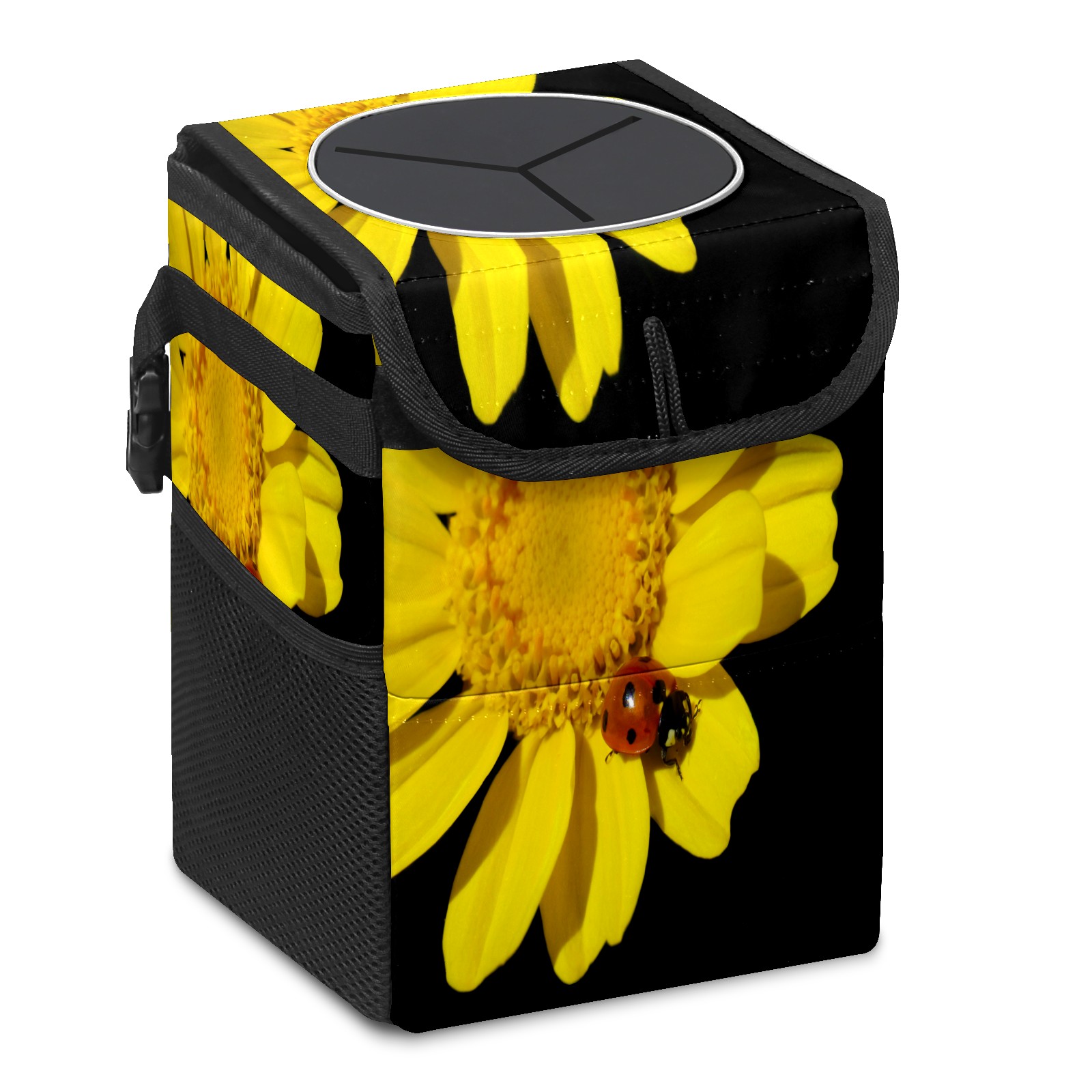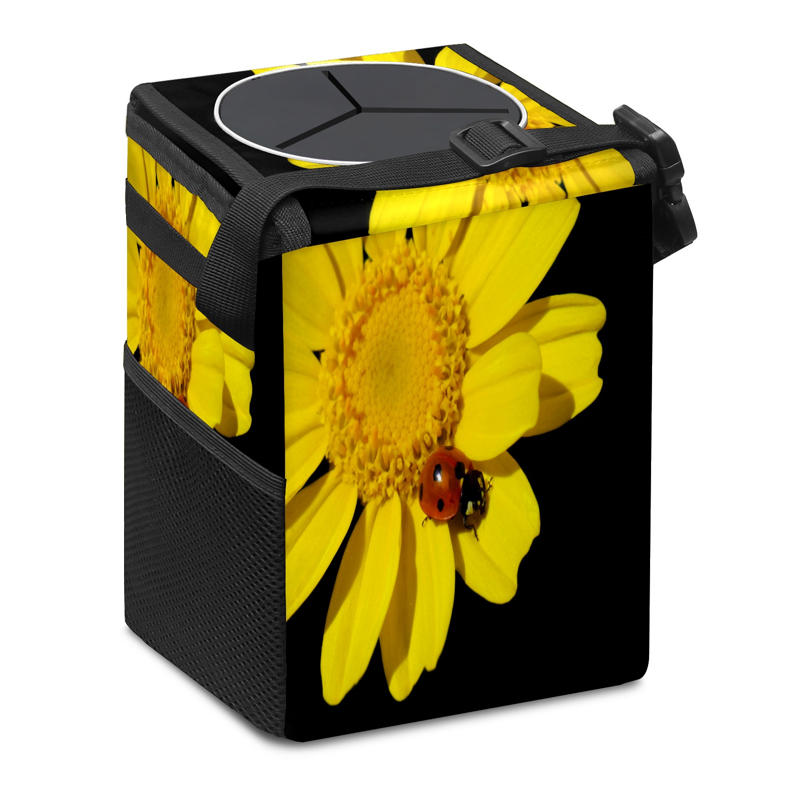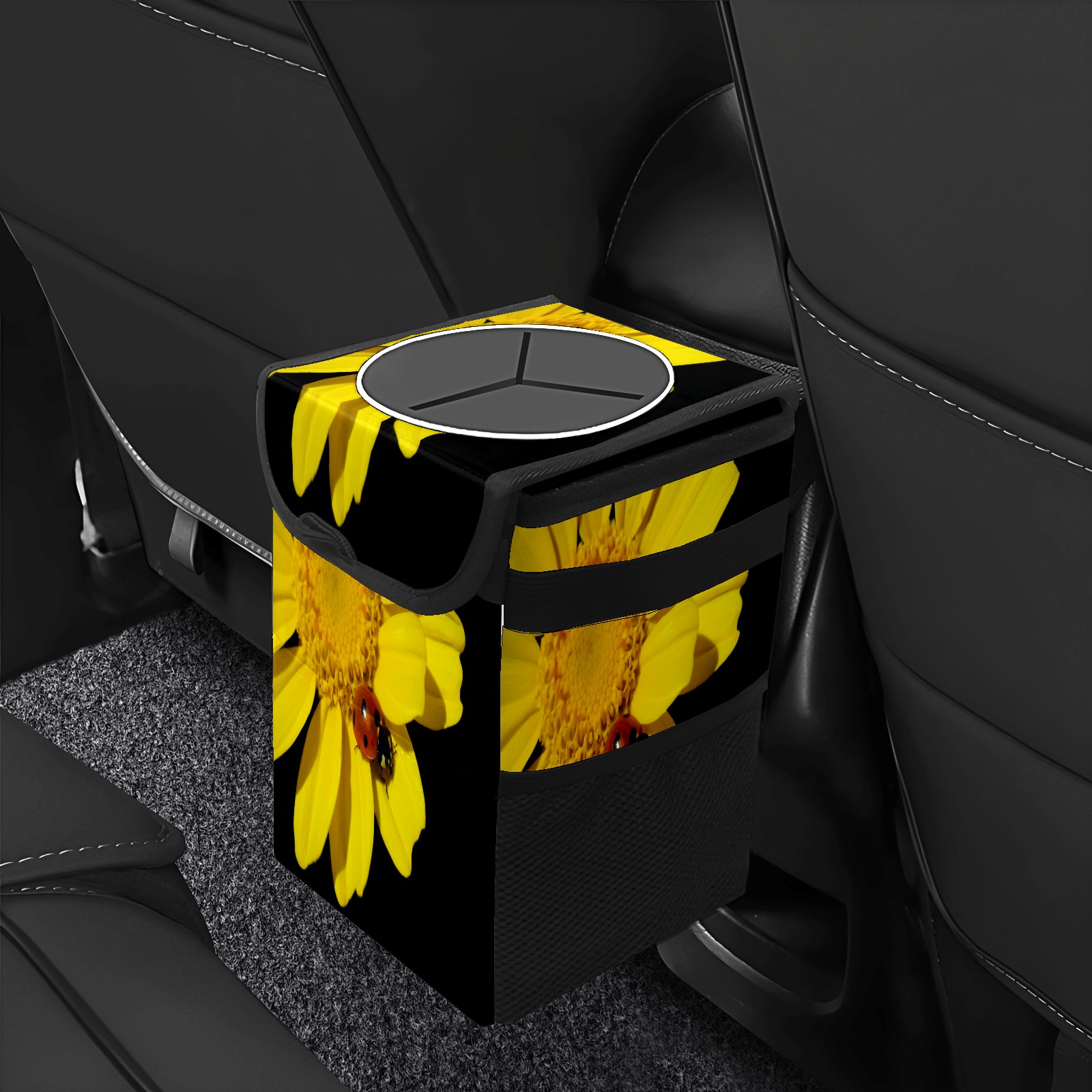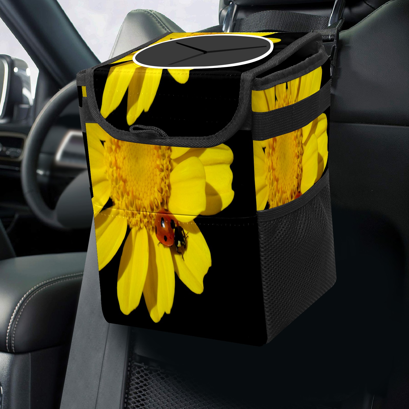 Car Garbage Can — Multi-functional, Lightweight Portable, Reusable Vehicle Trash Can, Waterproof with Sufficient Storage Capacity Ladybug Insect Sunflower Black