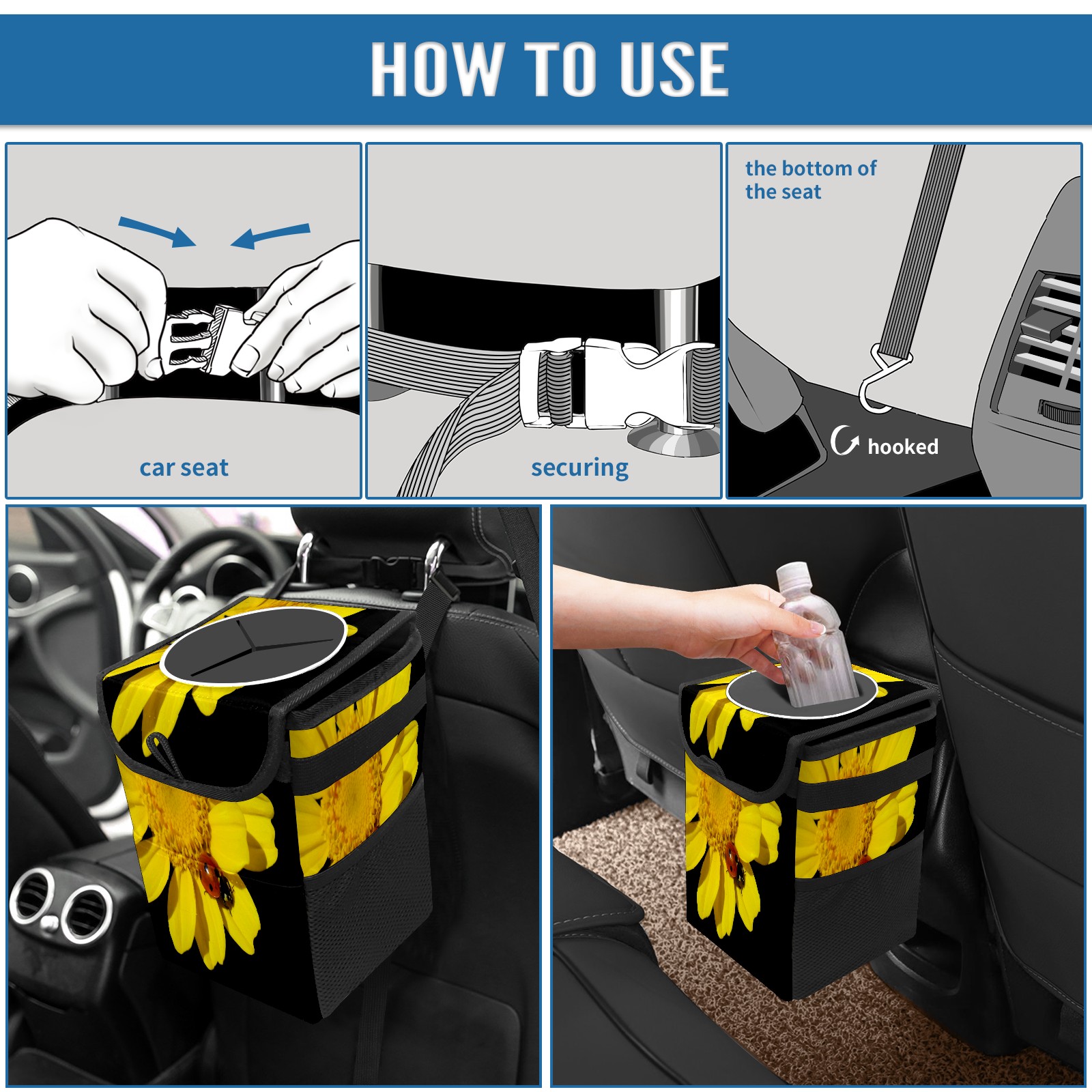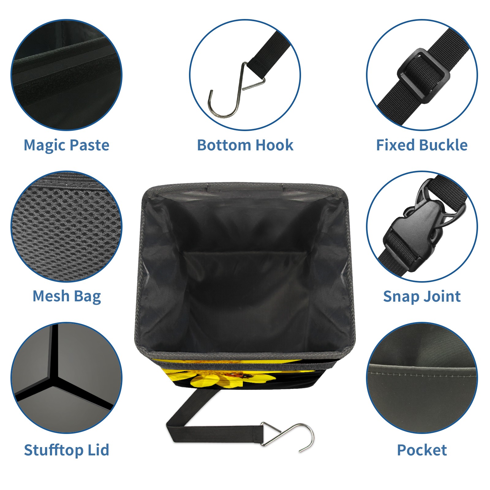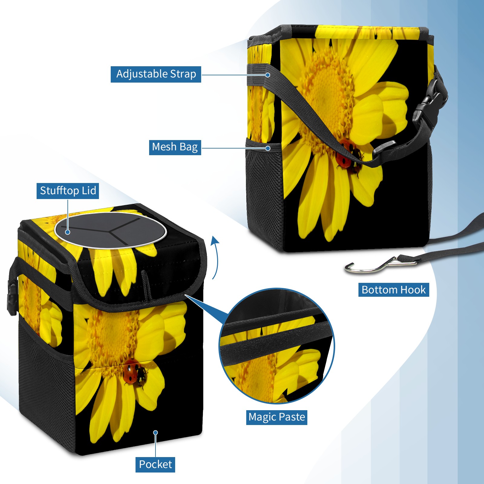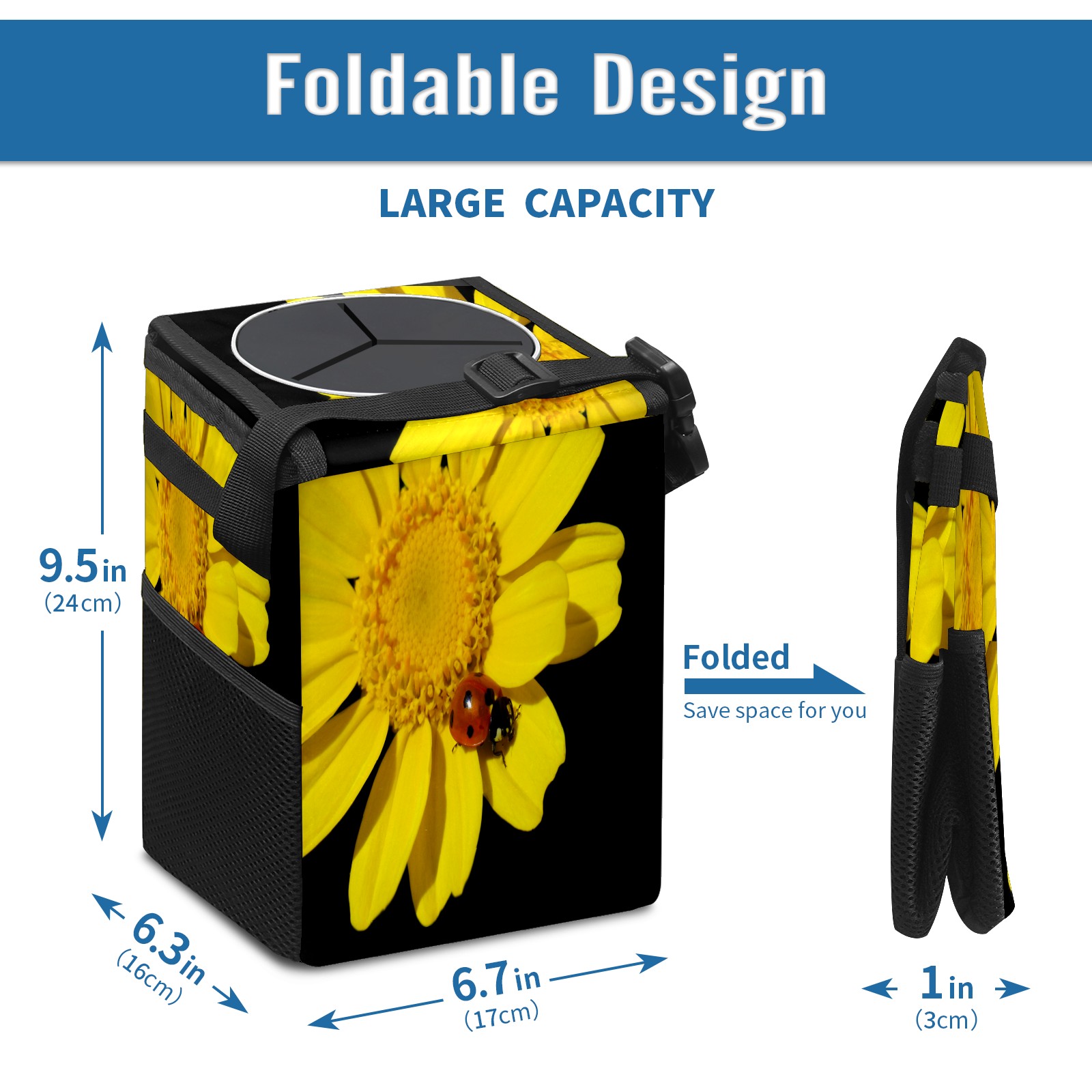 Car Garbage Can — Multi-functional, Lightweight Portable, Reusable Vehicle Trash Can, Waterproof with Sufficient Storage Capacity Ladybug Insect Sunflower Black