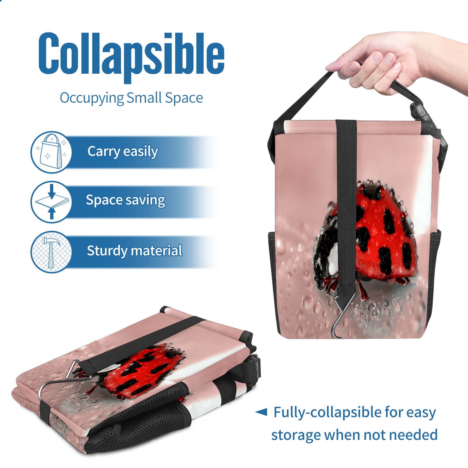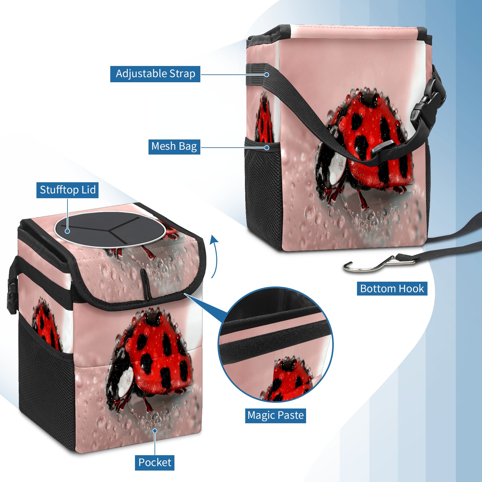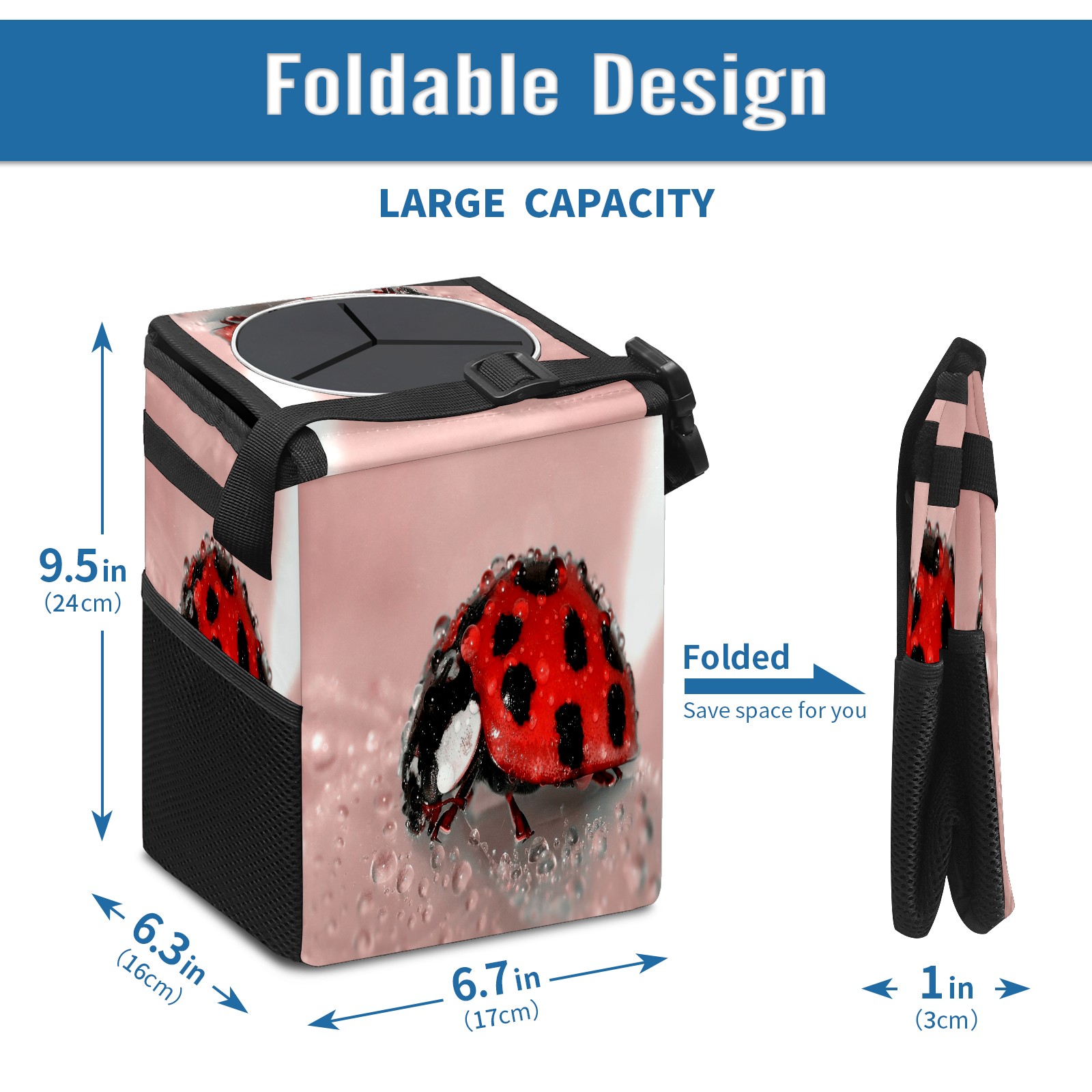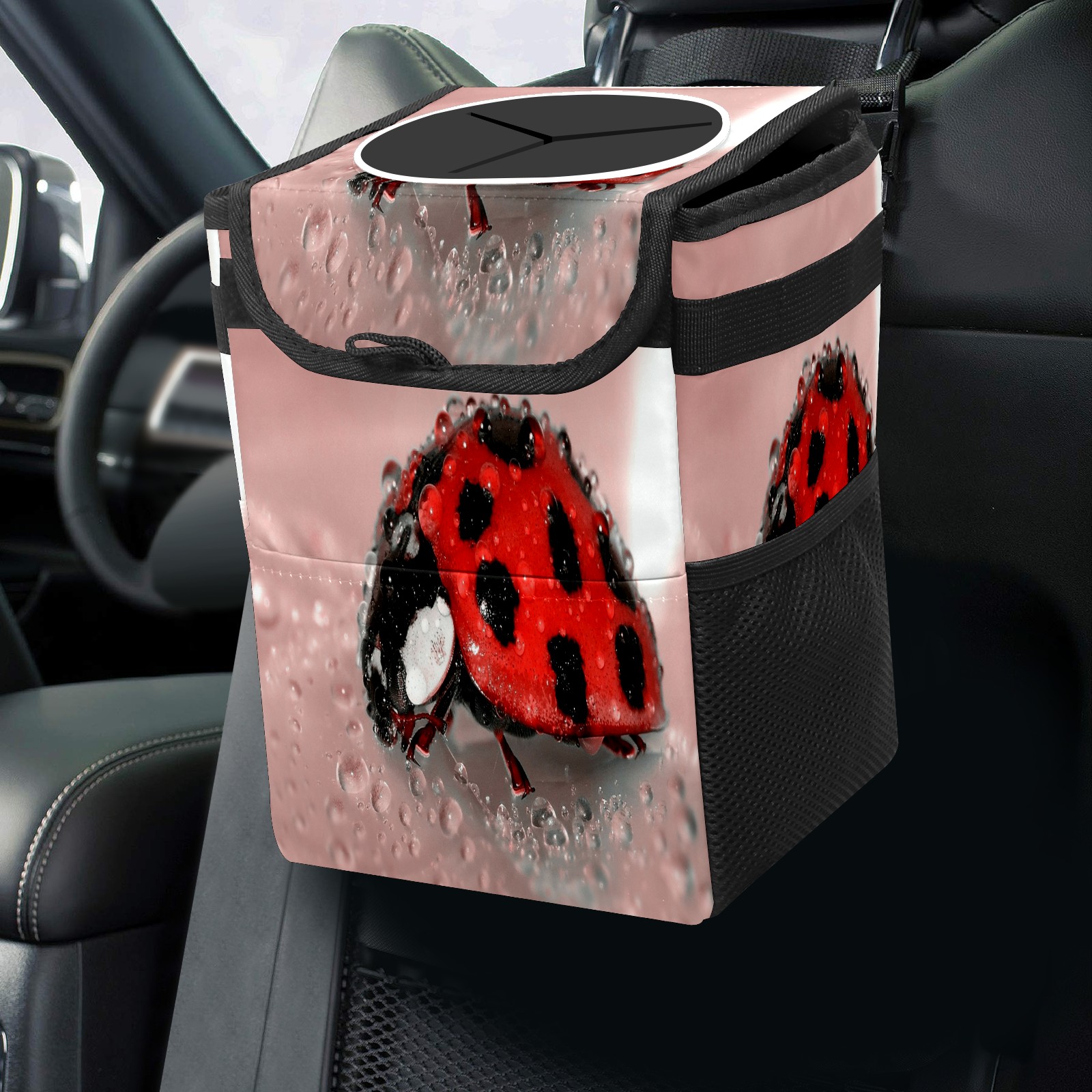 Car Garbage Can — Multi-functional, Lightweight Portable, Reusable Vehicle Trash Can, Waterproof with Sufficient Storage Capacity Ladybug Cute Waterdrop