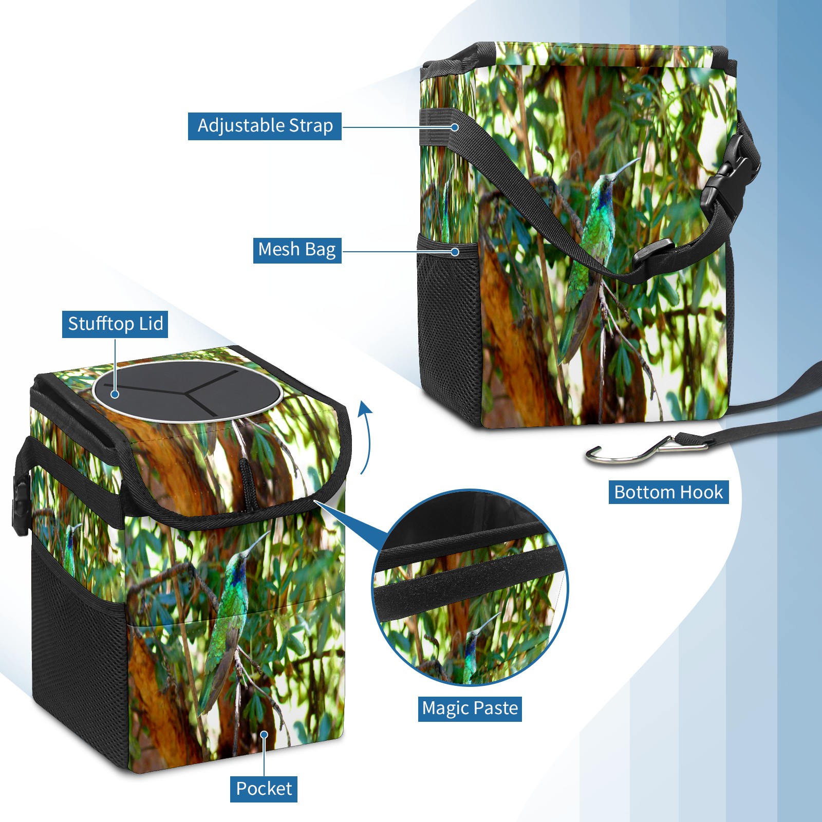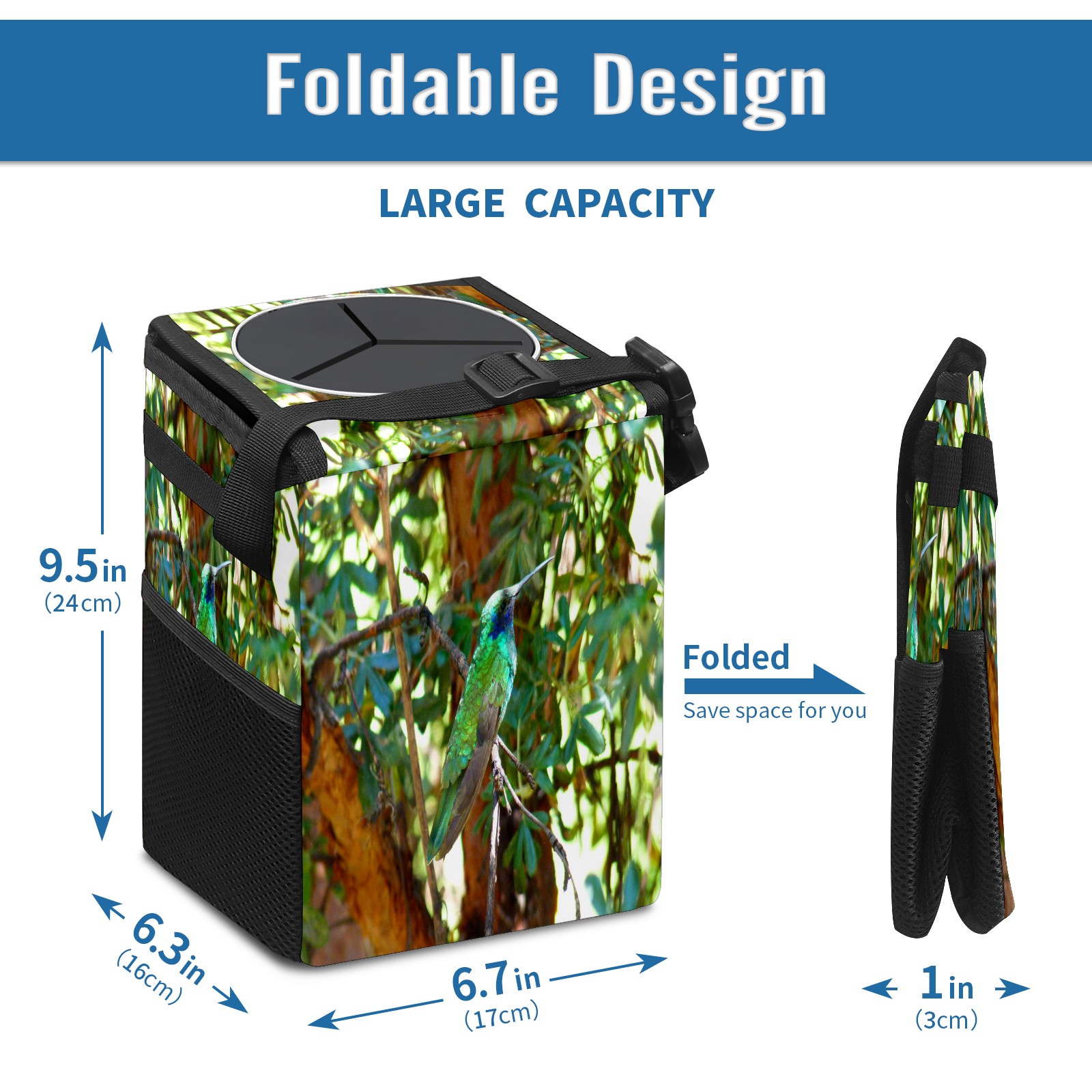 Car Garbage Can — Multi-functional, Lightweight Portable, Reusable Vehicle Trash Can, Waterproof with Sufficient Storage Capacity Hummingbird On Tree Summer