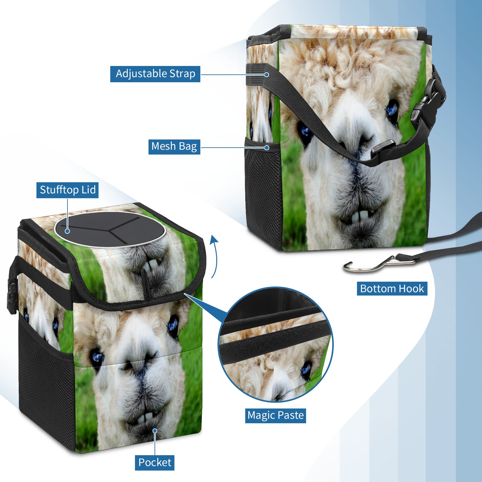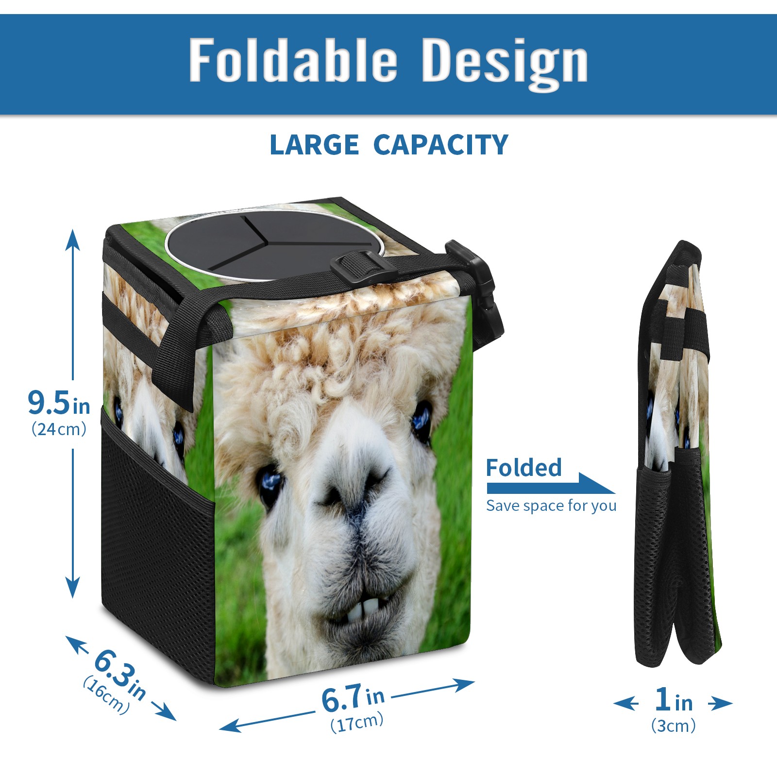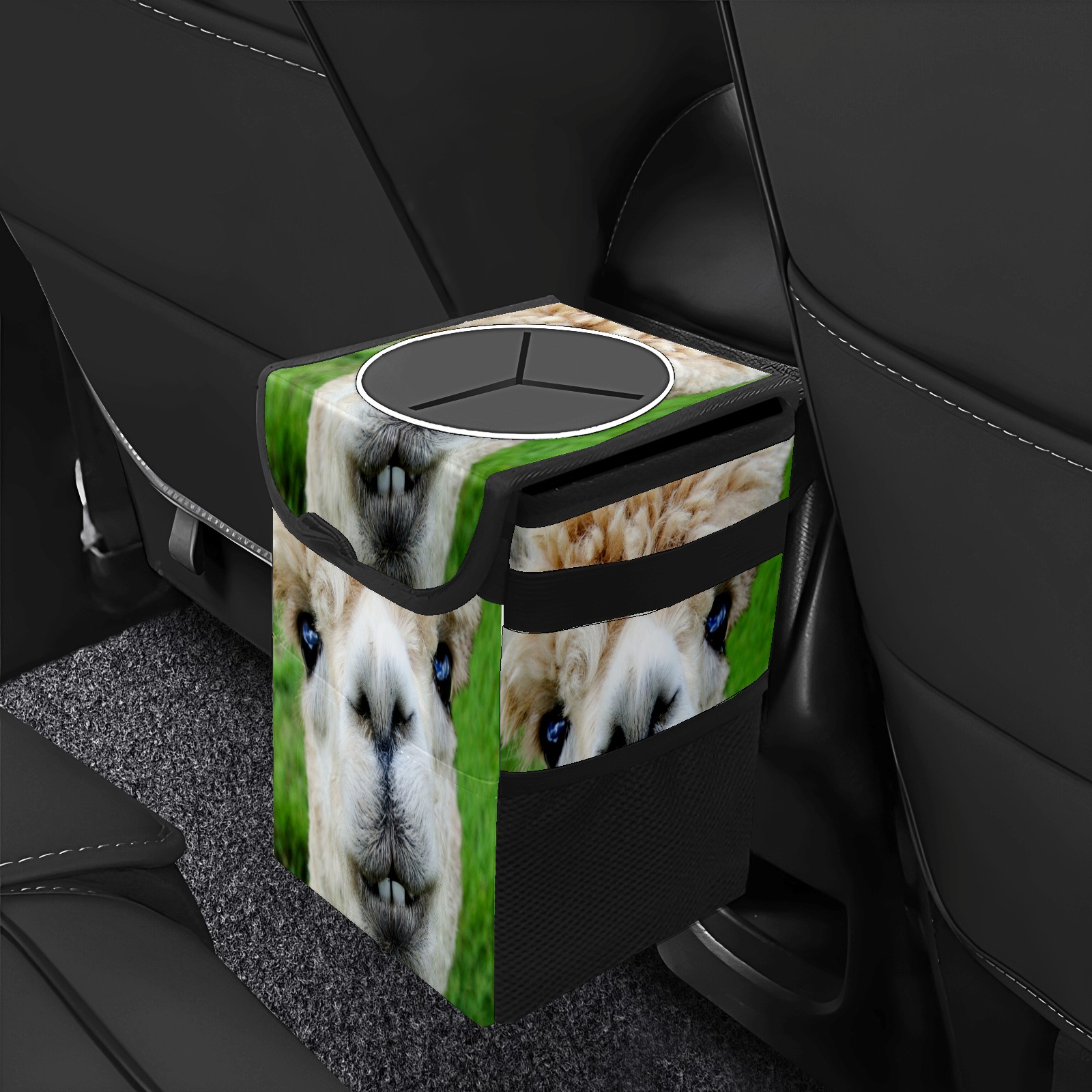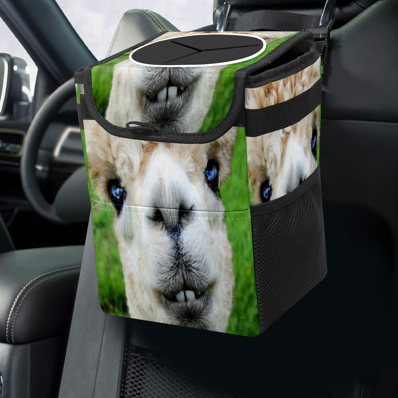 Car Garbage Can — Multi-functional, Lightweight Portable, Reusable Vehicle Trash Can, Waterproof with Sufficient Storage Capacity Alpaca Head Sheep Fluffy