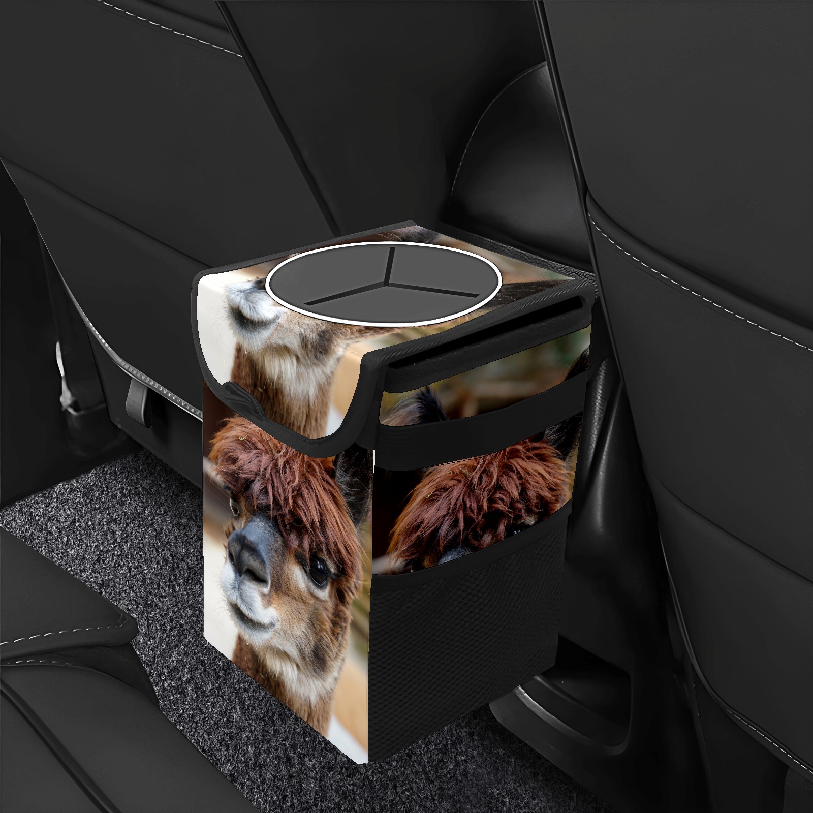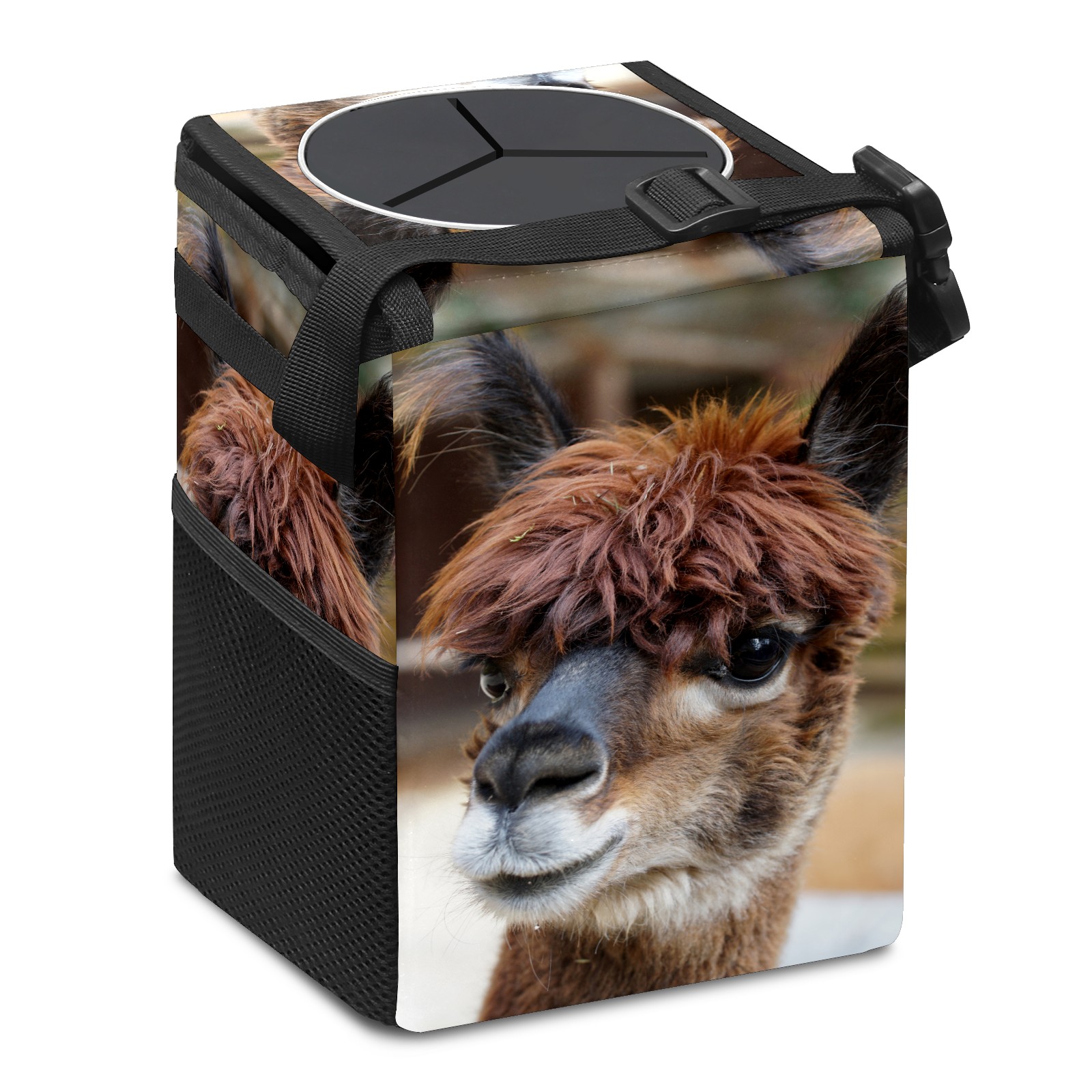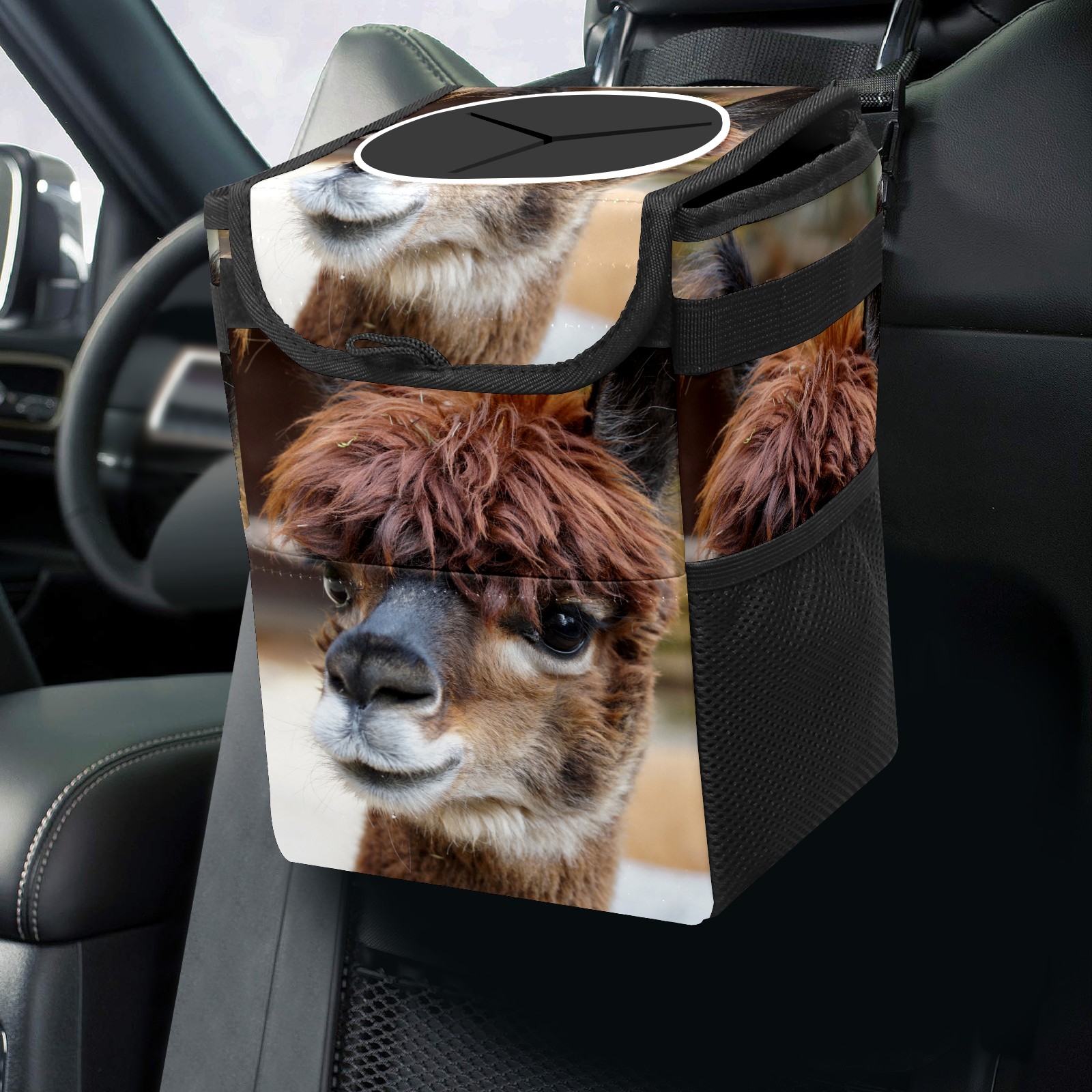 Car Garbage Can — Multi-functional, Lightweight Portable, Reusable Vehicle Trash Can, Waterproof with Sufficient Storage Capacity Alpaca Head Cute Fluffy