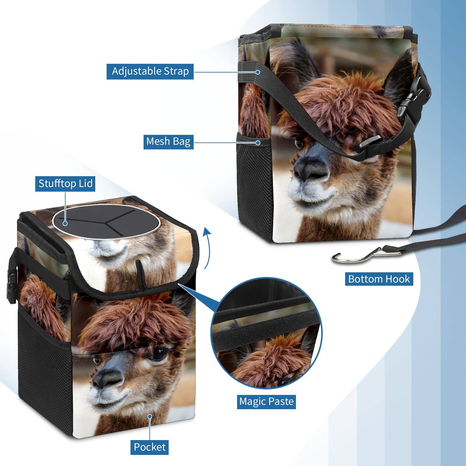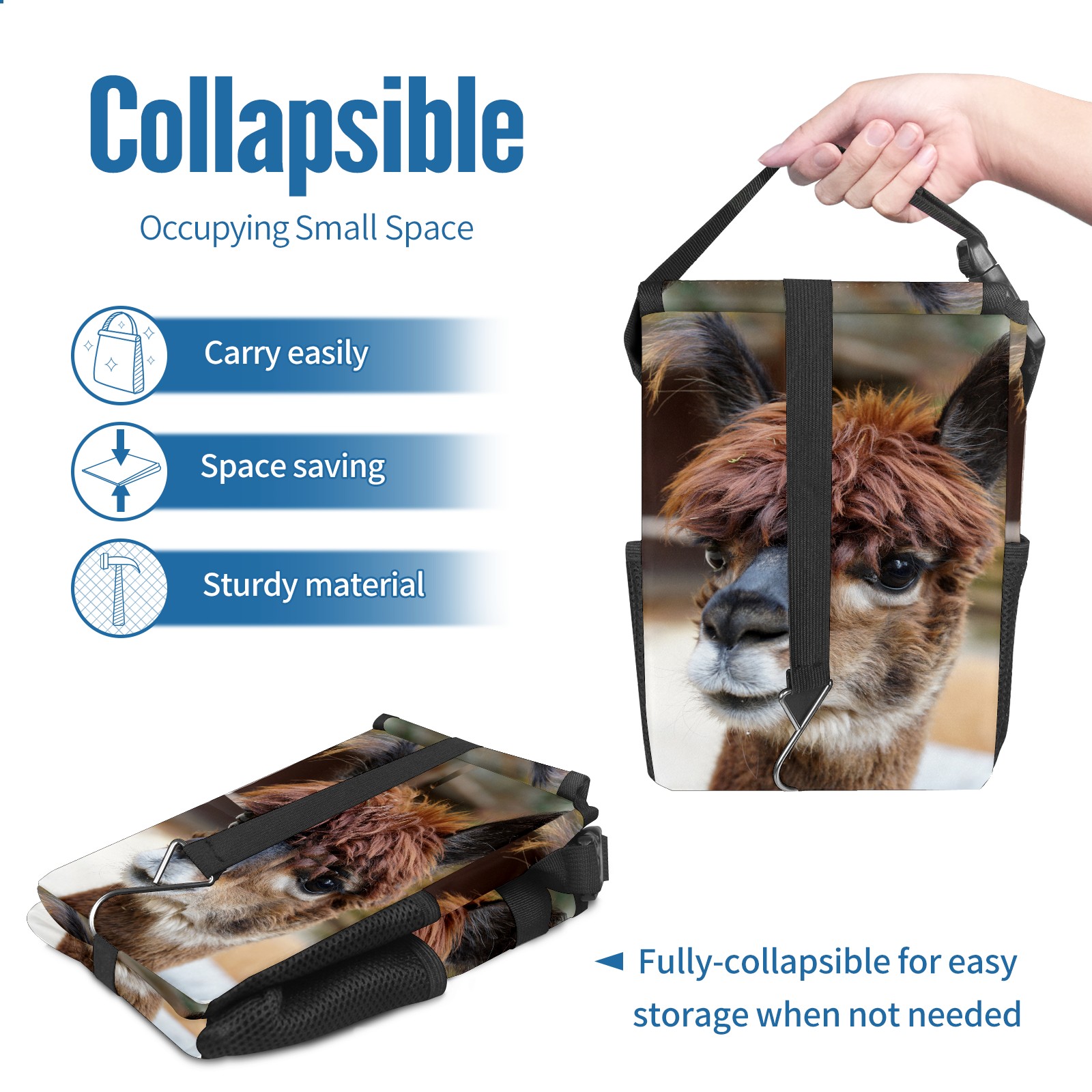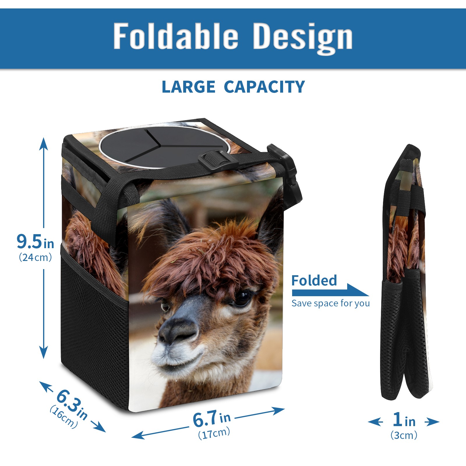 Car Garbage Can — Multi-functional, Lightweight Portable, Reusable Vehicle Trash Can, Waterproof with Sufficient Storage Capacity Alpaca Head Cute Fluffy