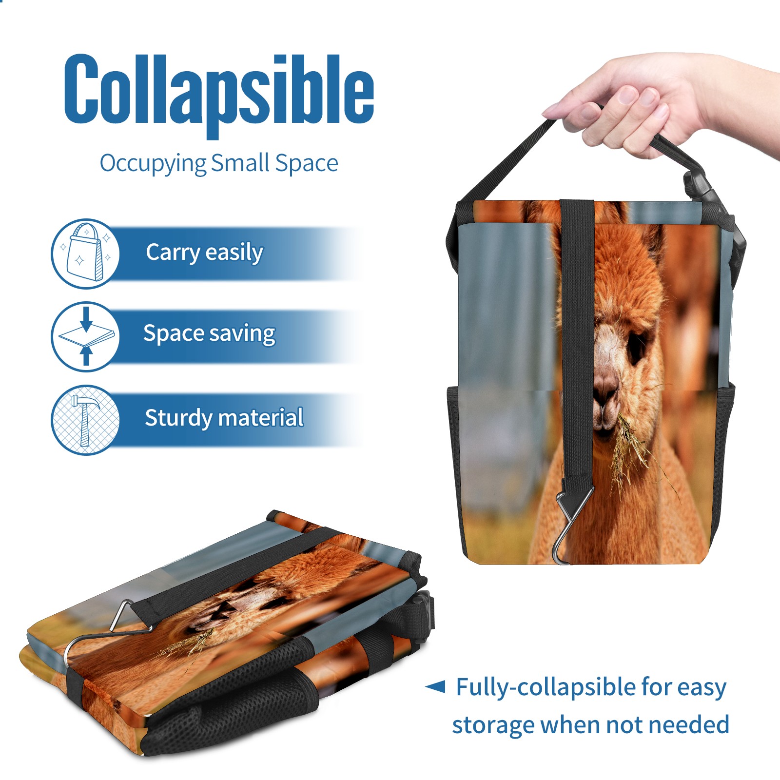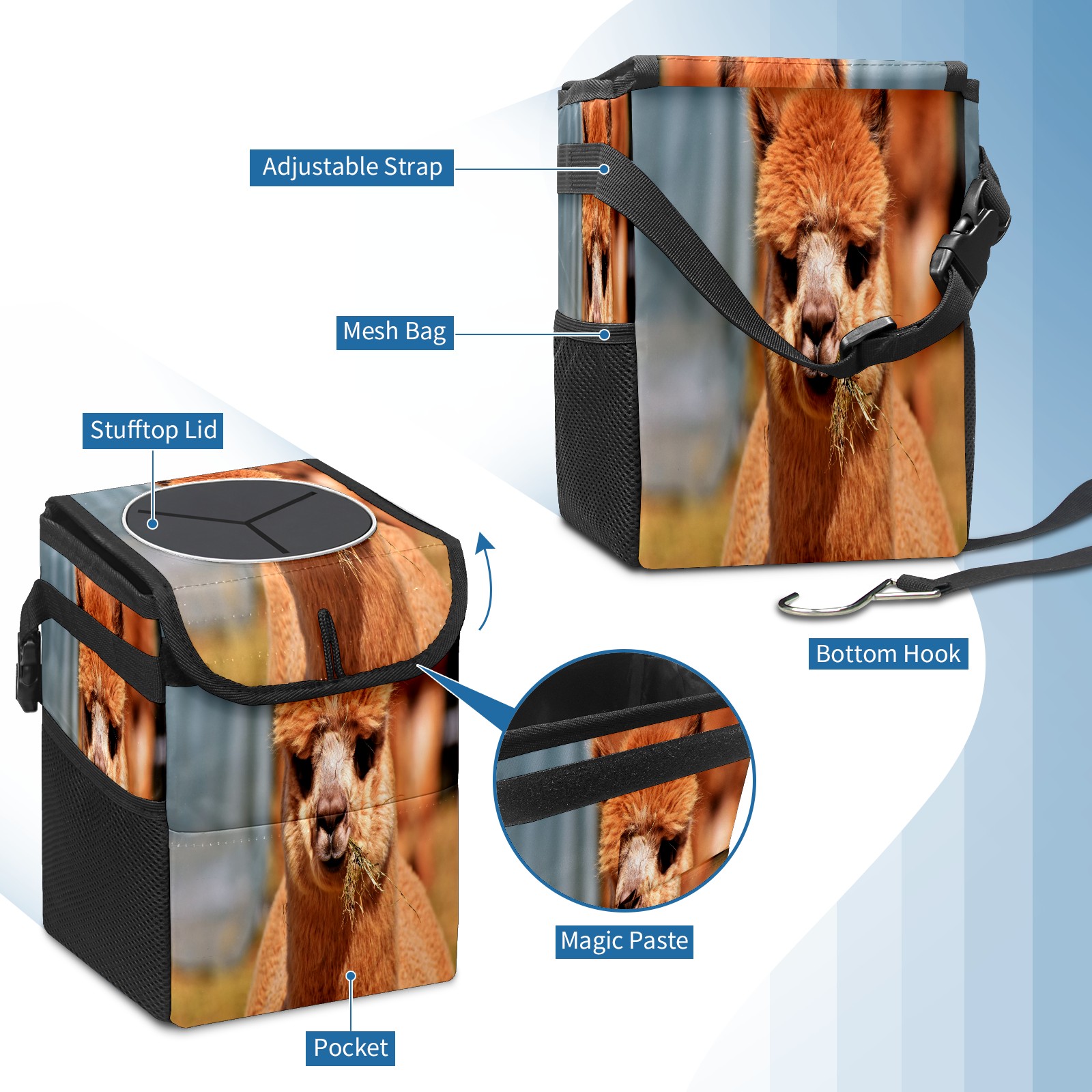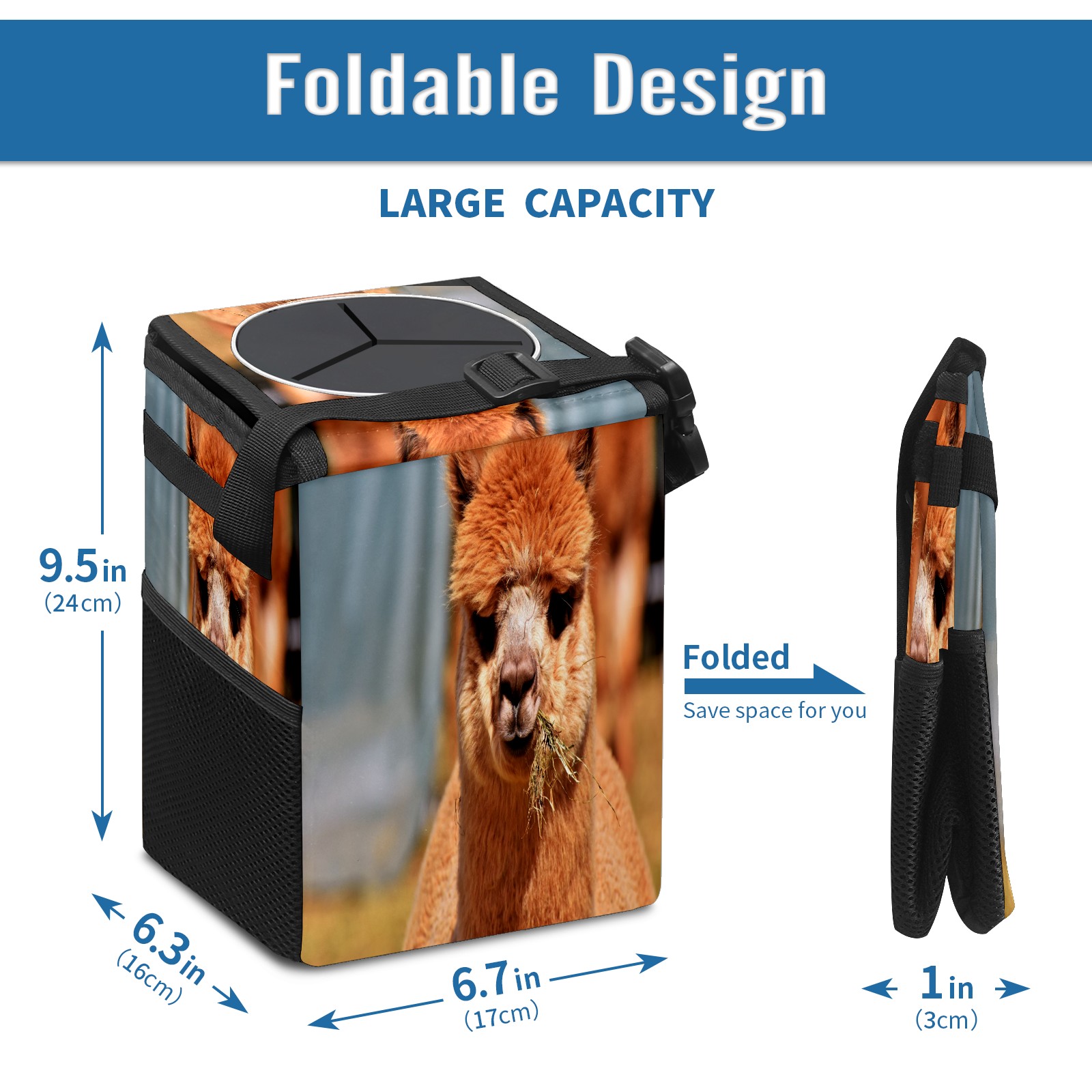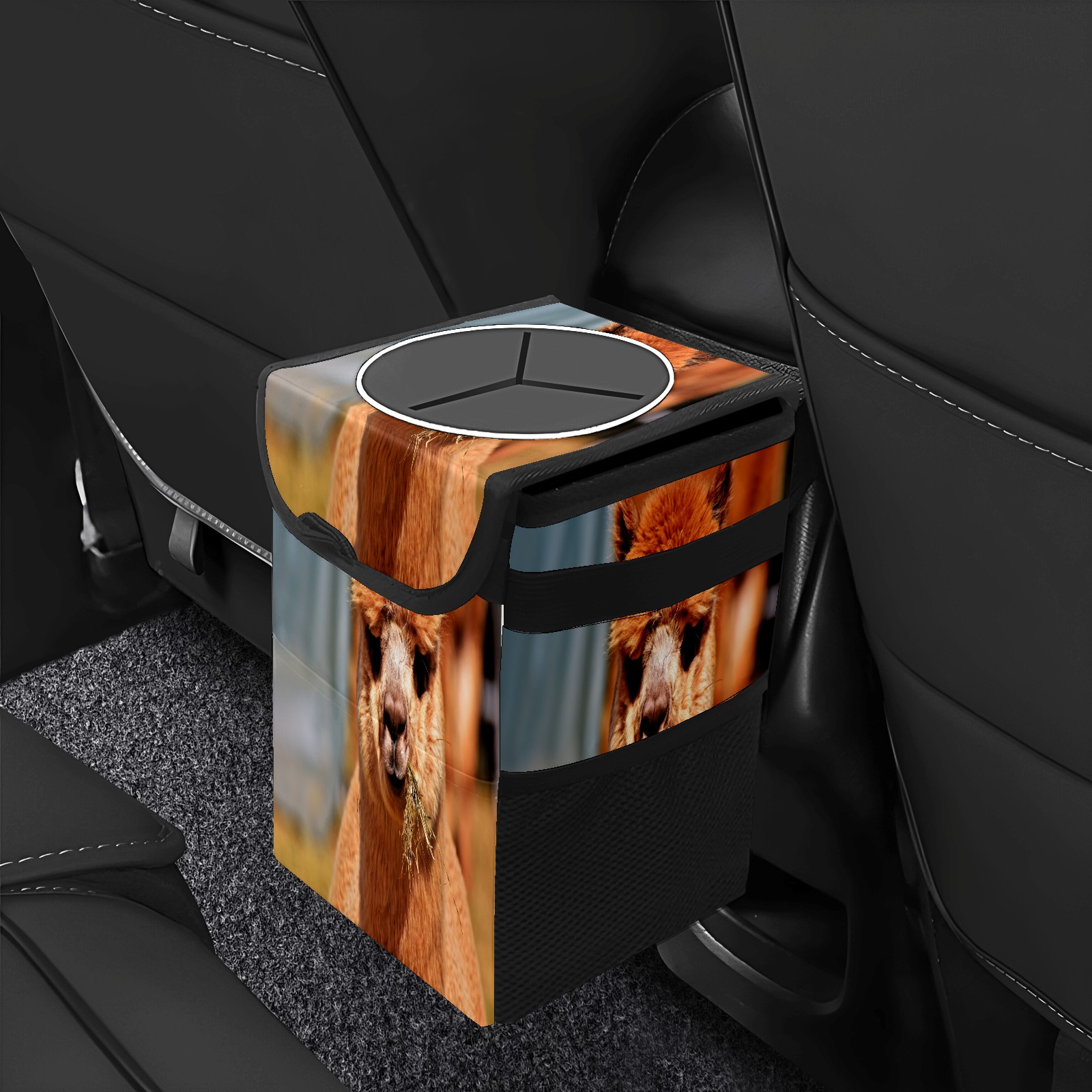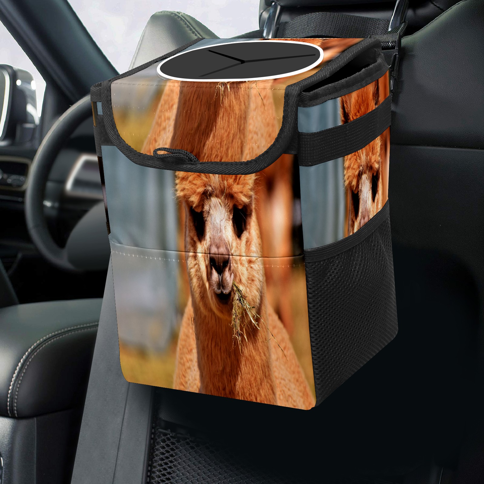 Car Garbage Can — Multi-functional, Lightweight Portable, Reusable Vehicle Trash Can, Waterproof with Sufficient Storage Capacity Alpaca Eat Grass Fluffy
