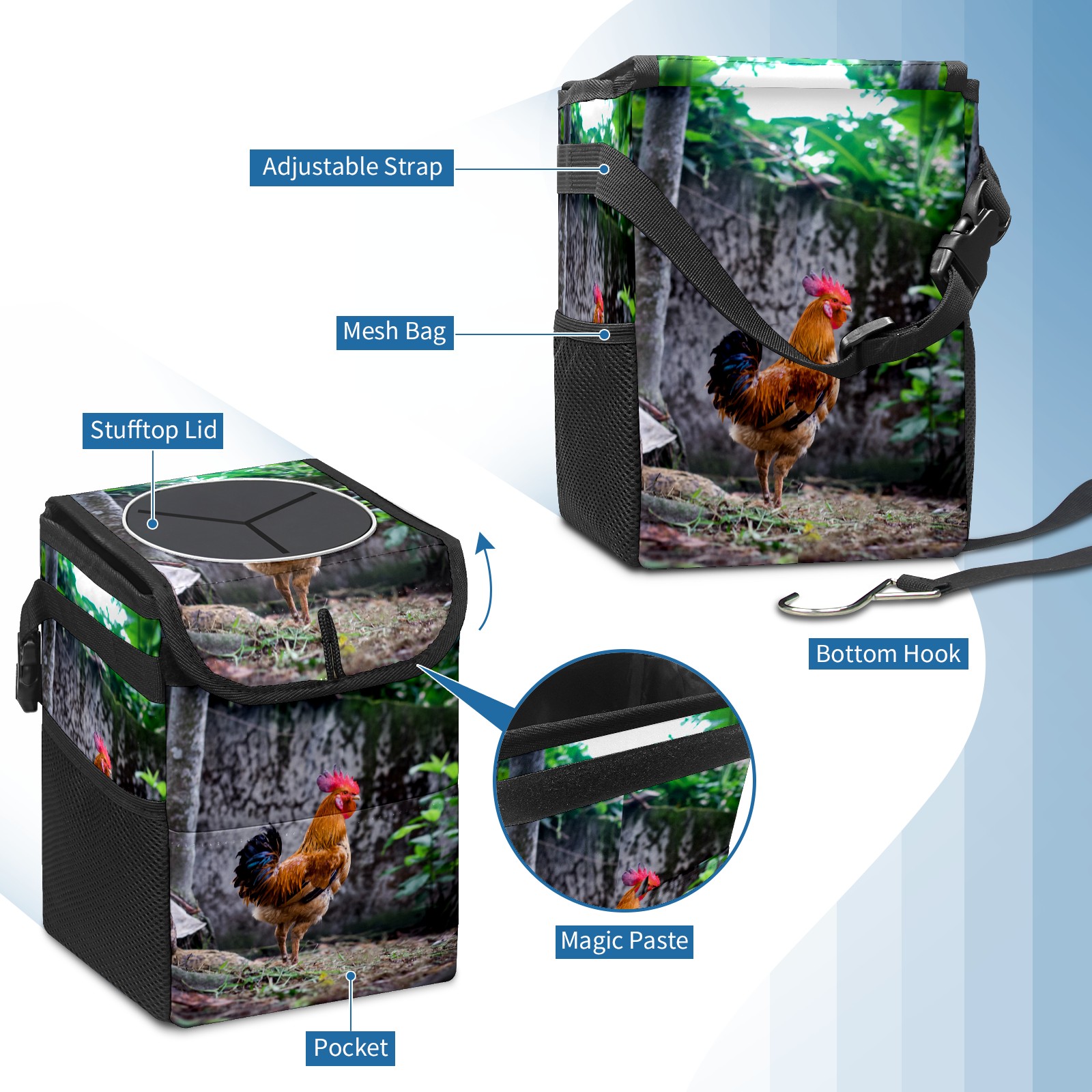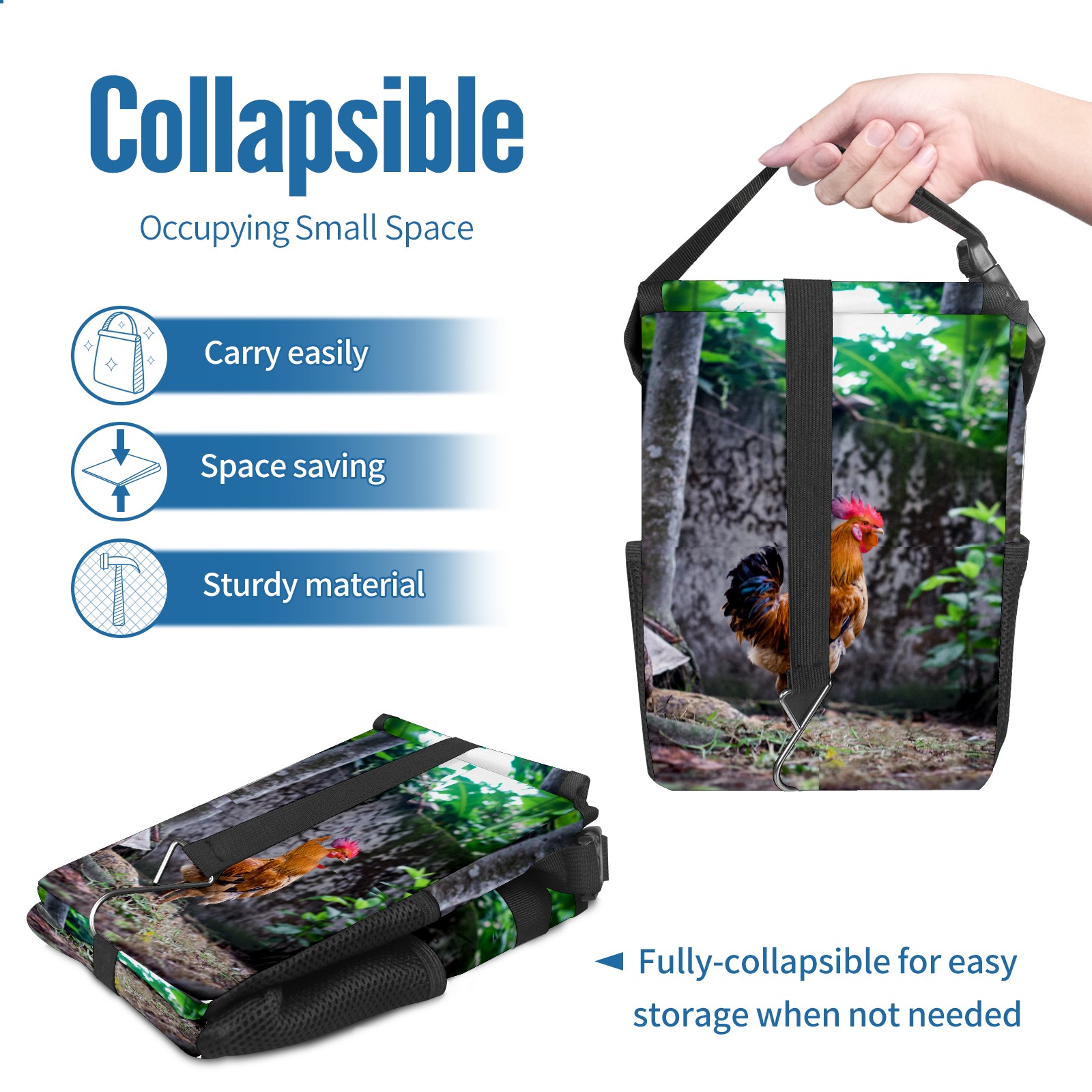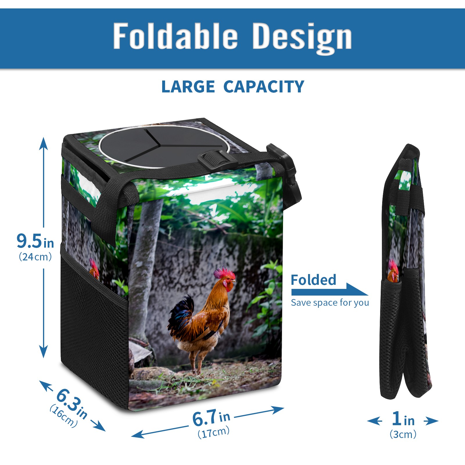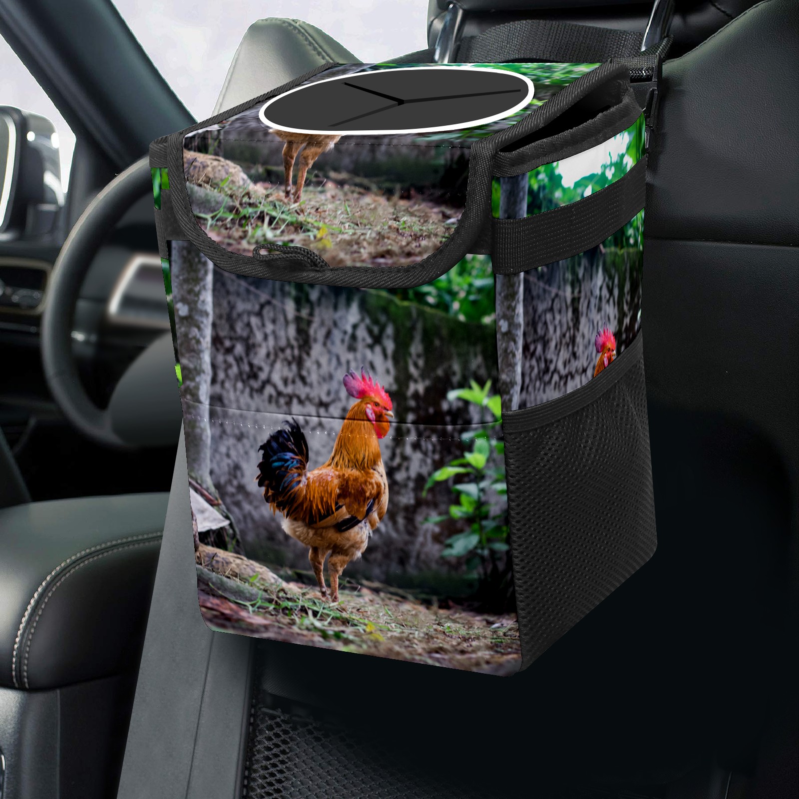 Car Garbage Can — Multi-functional, Lightweight Portable, Reusable Vehicle Trash Can, Waterproof with Sufficient Storage Capacity Rooster Chicken Plant