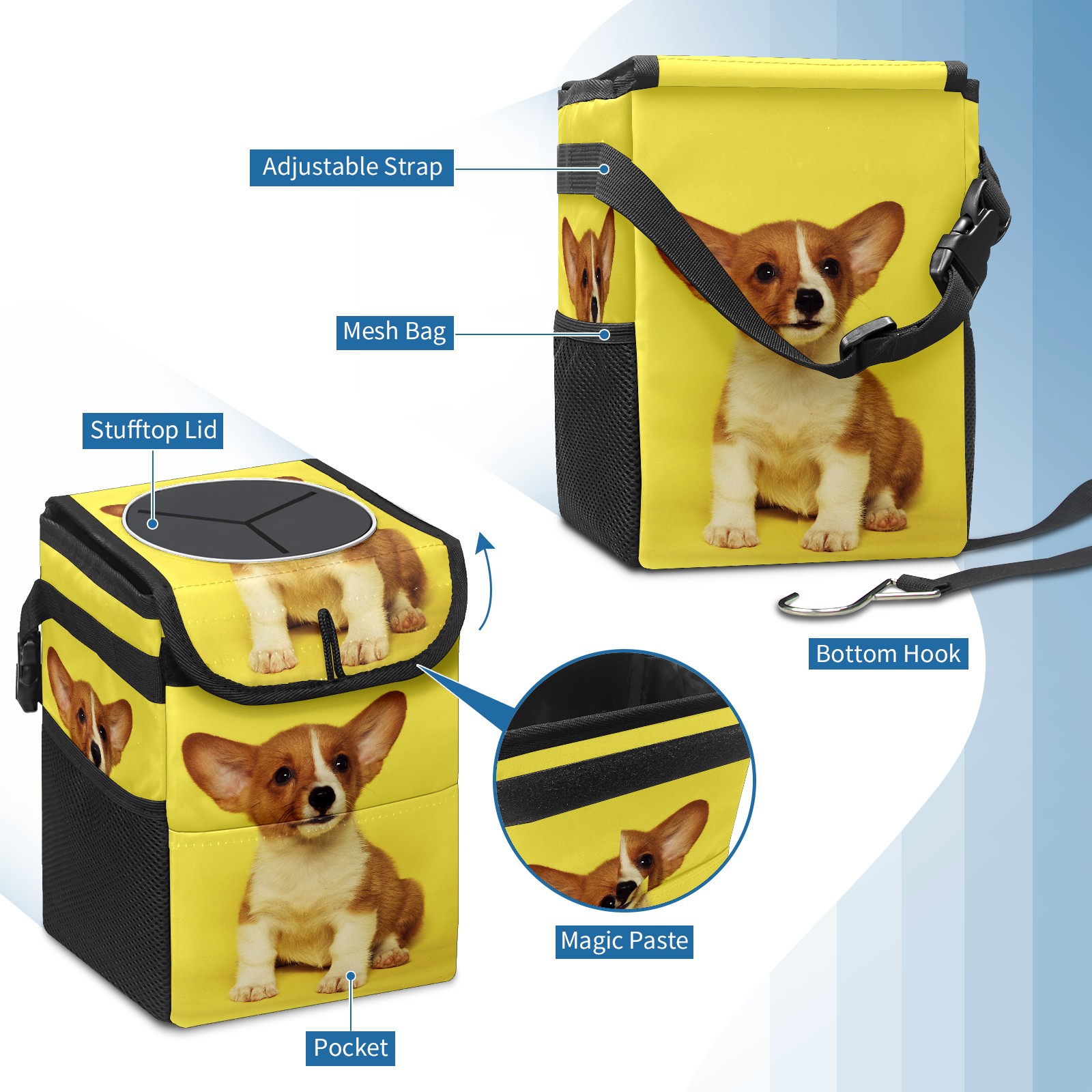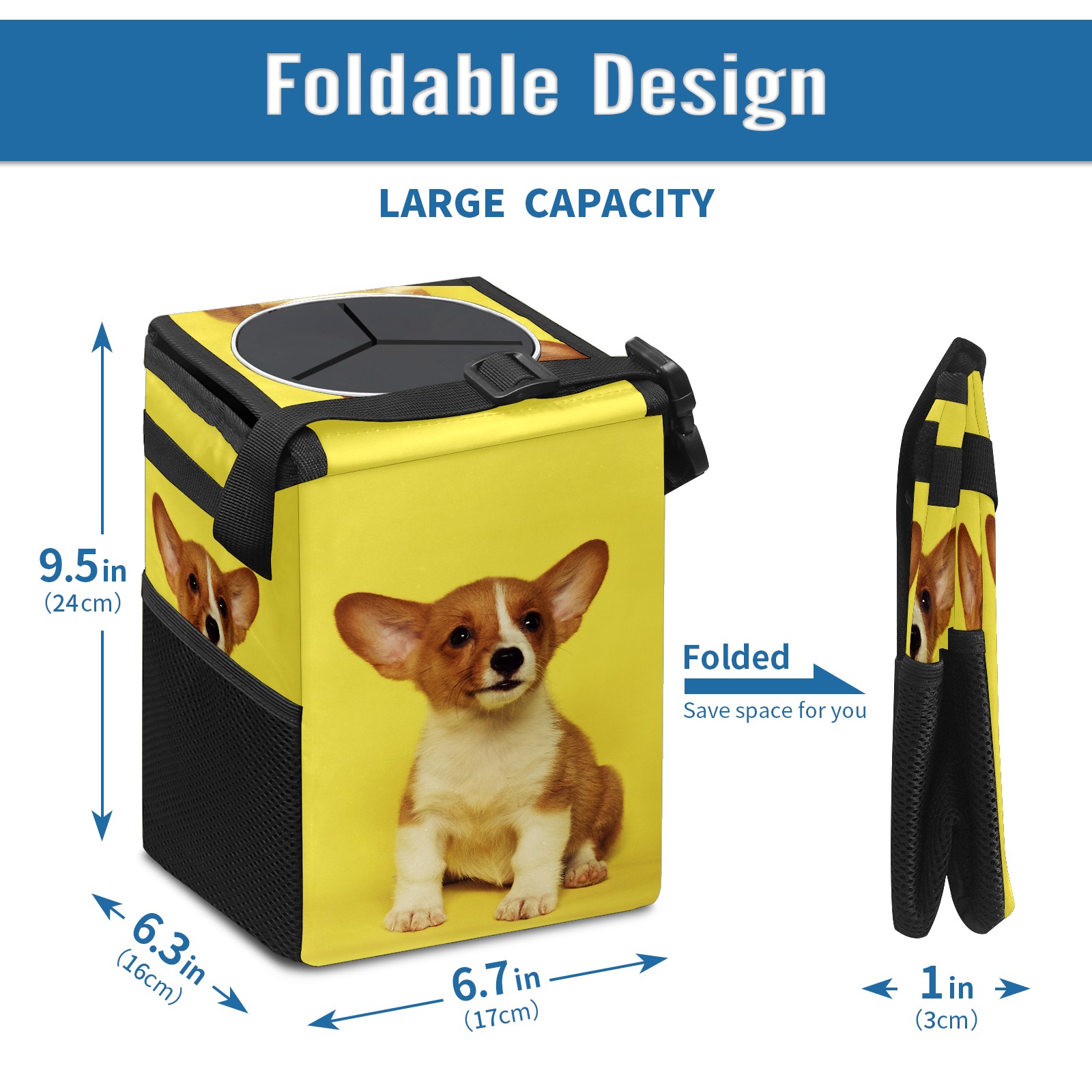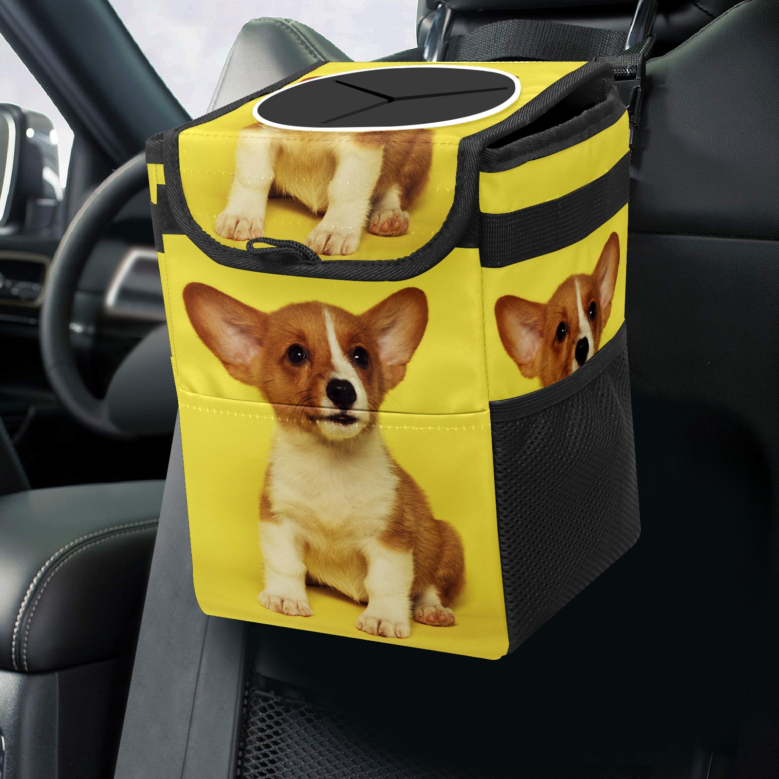 Car Garbage Can — Multi-functional, Lightweight Portable, Reusable Vehicle Trash Can, Waterproof with Sufficient Storage Capacity Cute Puppy Dog