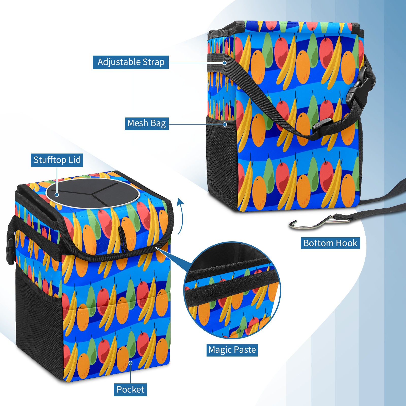 Car Garbage Can — Multi-functional, Lightweight Portable, Reusable Vehicle Trash Can, Waterproof with Sufficient Storage Capacity Fruit Banana Pear Orange