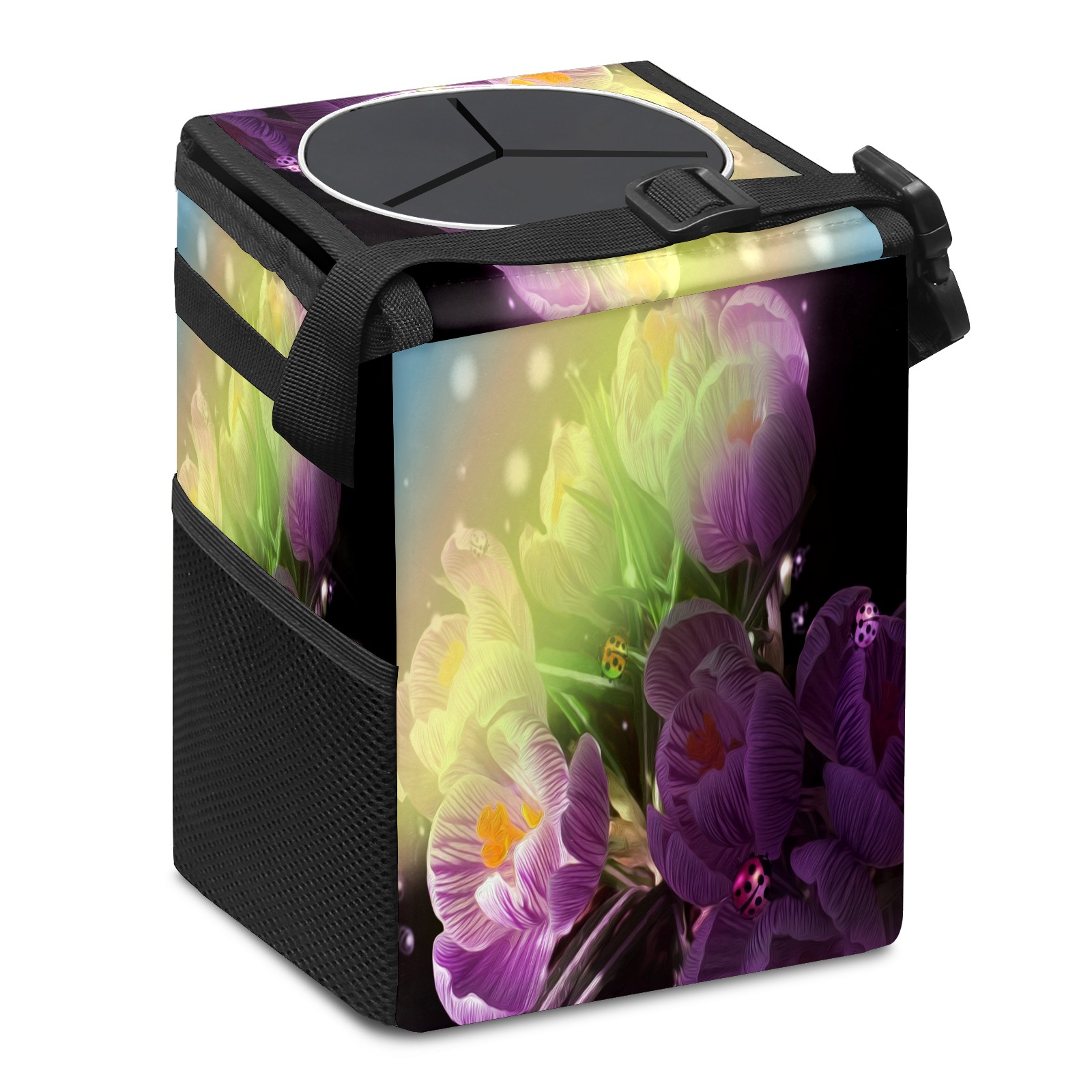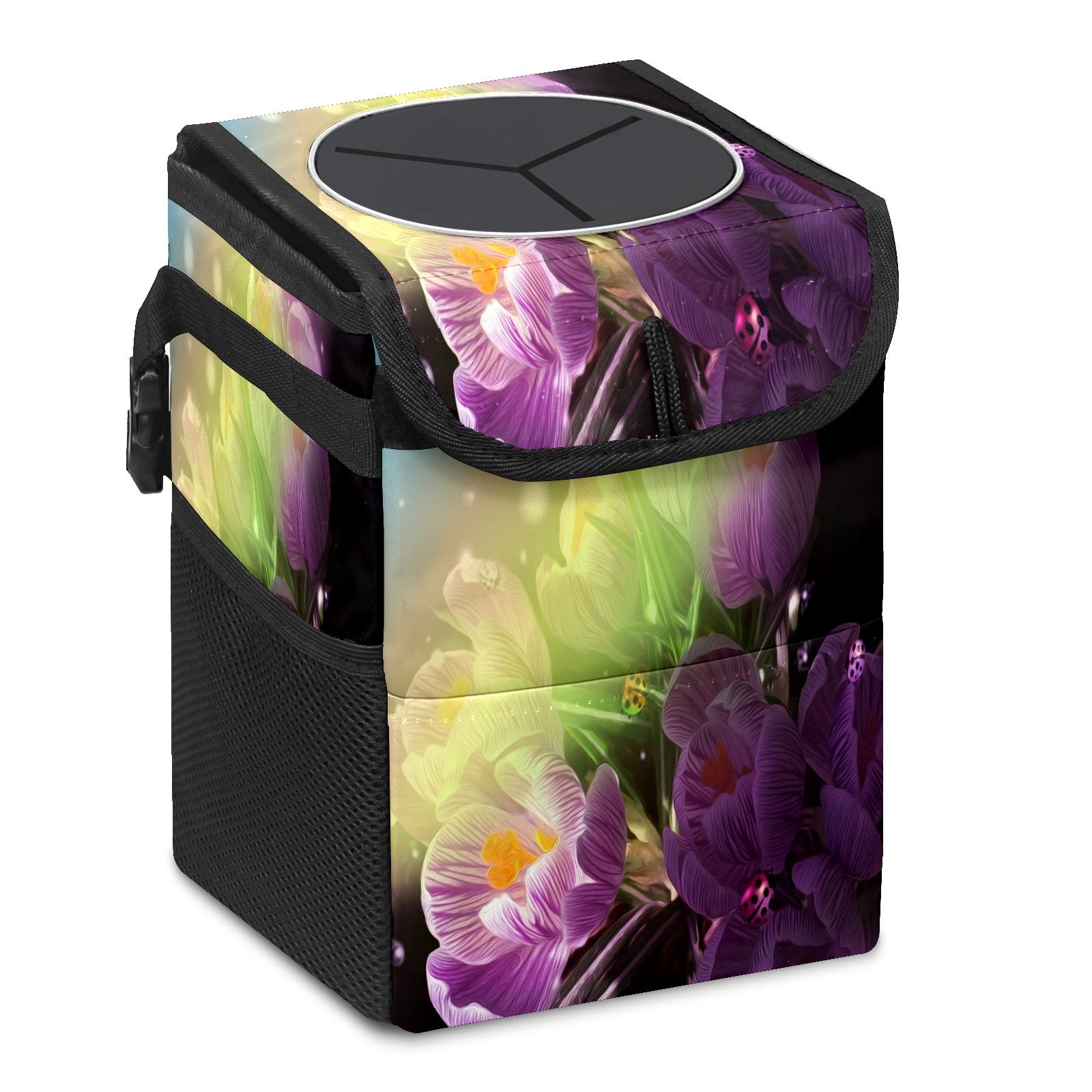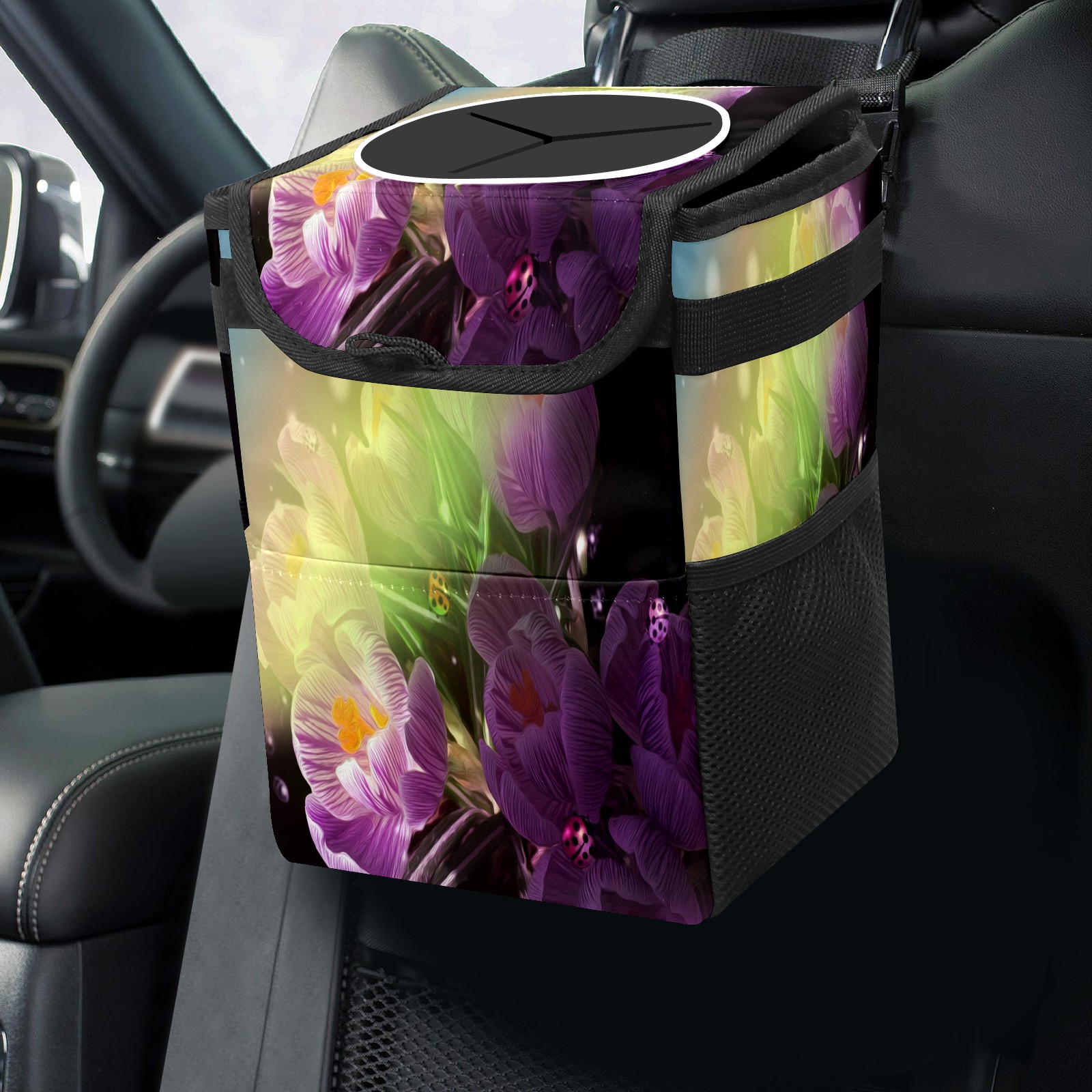 Car Garbage Can — Multi-functional, Lightweight Portable, Reusable Vehicle Trash Can, Waterproof with Sufficient Storage Capacity Flowers Ladybug