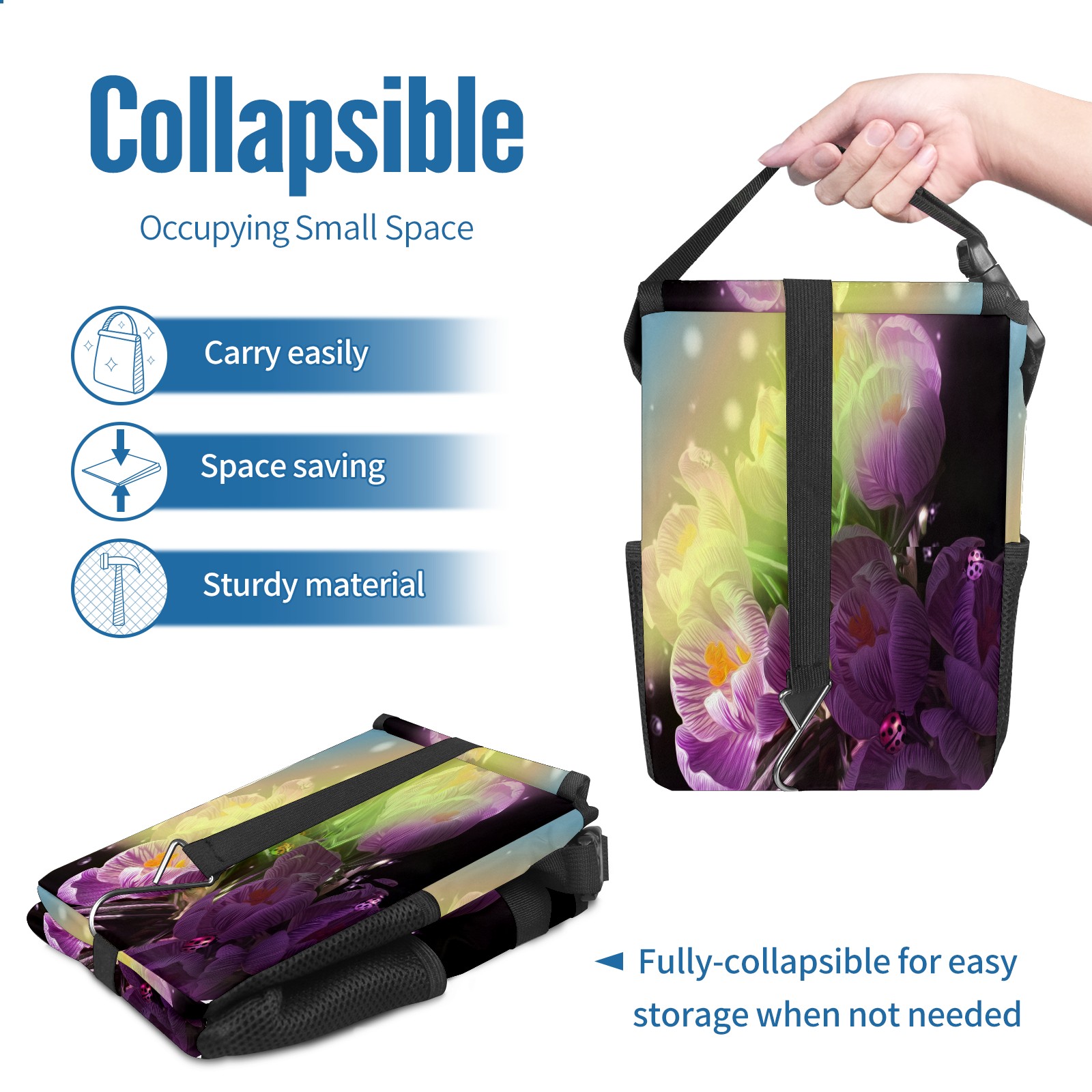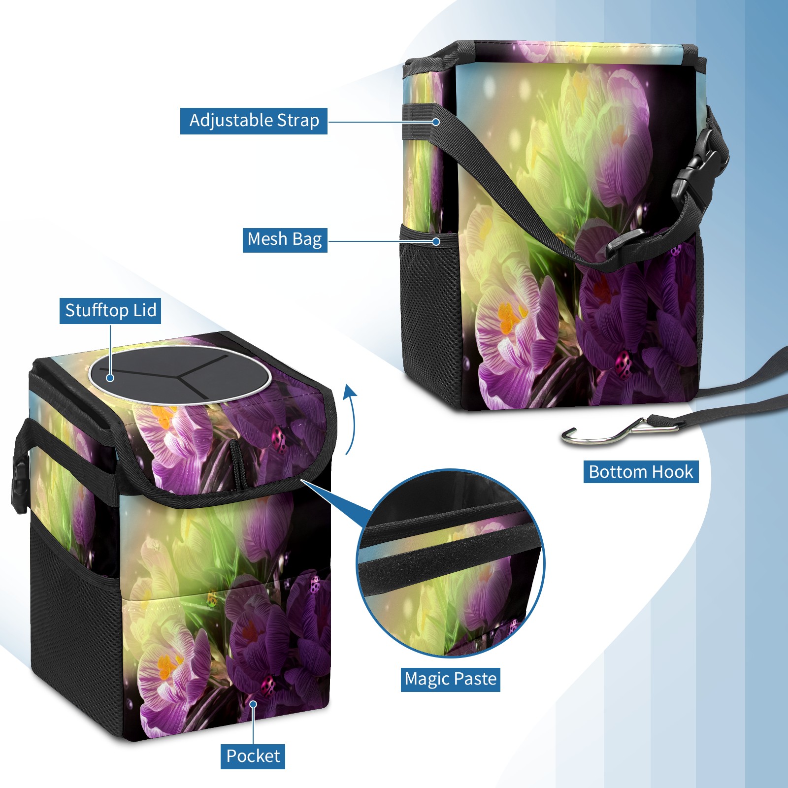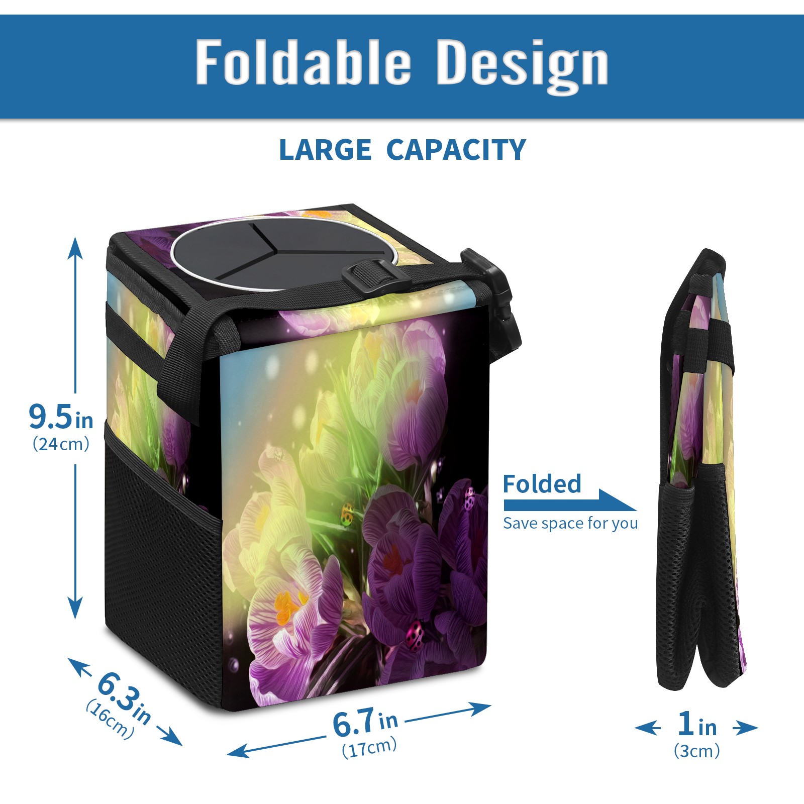 Car Garbage Can — Multi-functional, Lightweight Portable, Reusable Vehicle Trash Can, Waterproof with Sufficient Storage Capacity Flowers Ladybug