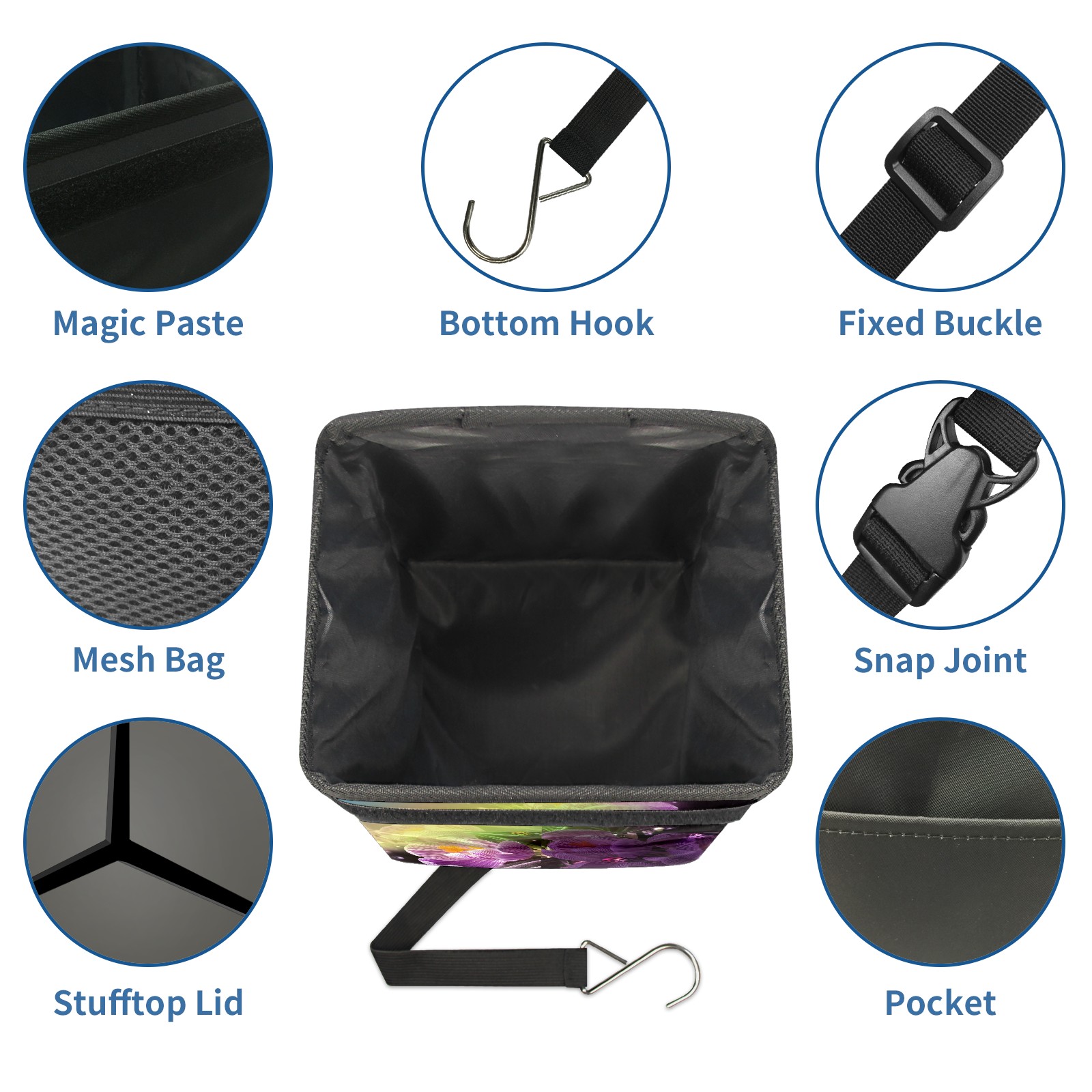 • <p>Keep your car neat with this practical car trash can—built for durability, versatility, and on-the-go convenience! Crafted from quality twill fabric with a waterproof lining, it prevents leaks, keeping seats/floors clean. Clean easily: empty directly or secure a disposable bag with side clips. Adjustable pull cord fits floor, seat, or headrest. 9.5x6.3x6.7 inches, ample space for daily trash, folds flat for storage. More than a trash can, it doubles as a storage bag for cups, toys, docs, and small gadgets—must-have car interior accessory. Installs in seconds on seats, console, or gear shift; adjustable straps keep it stable, no slipping on bumpy roads. Perfect gift for new car owners!</p>