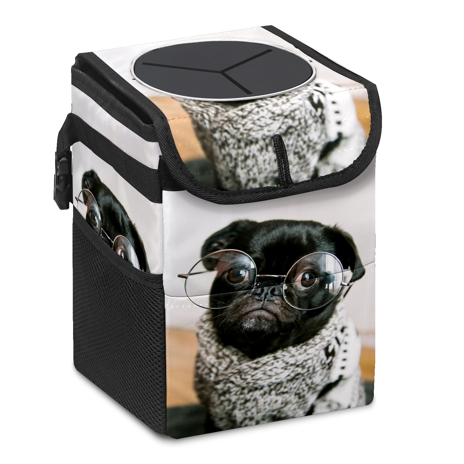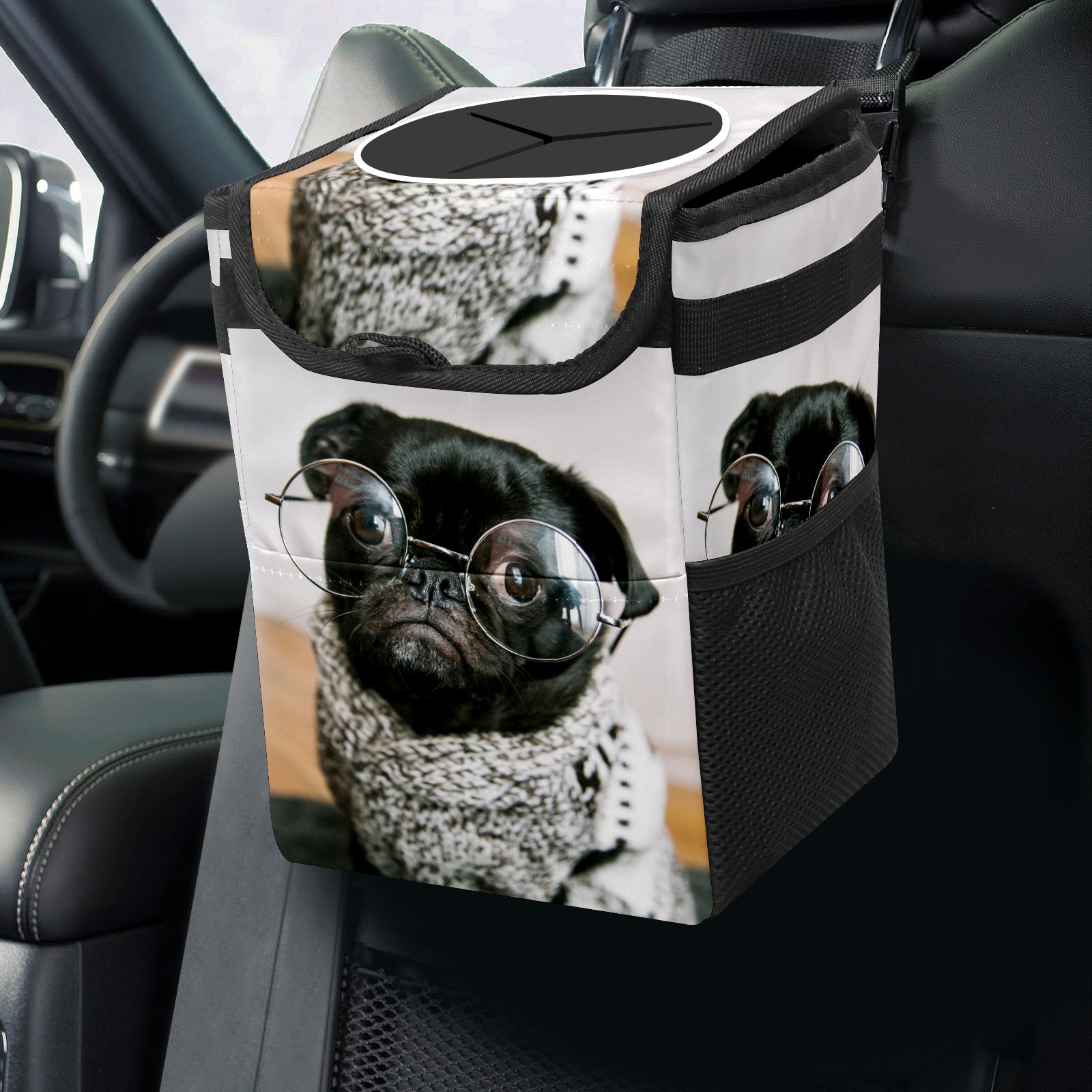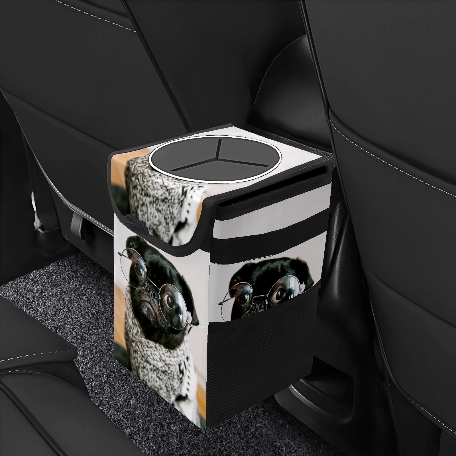 Car Garbage Can — Multi-functional, Lightweight Portable, Reusable Vehicle Trash Can, Waterproof with Sufficient Storage Capacity Cute Dog Wear Glasses