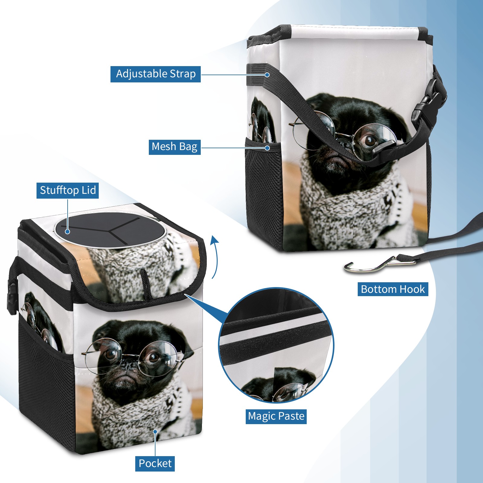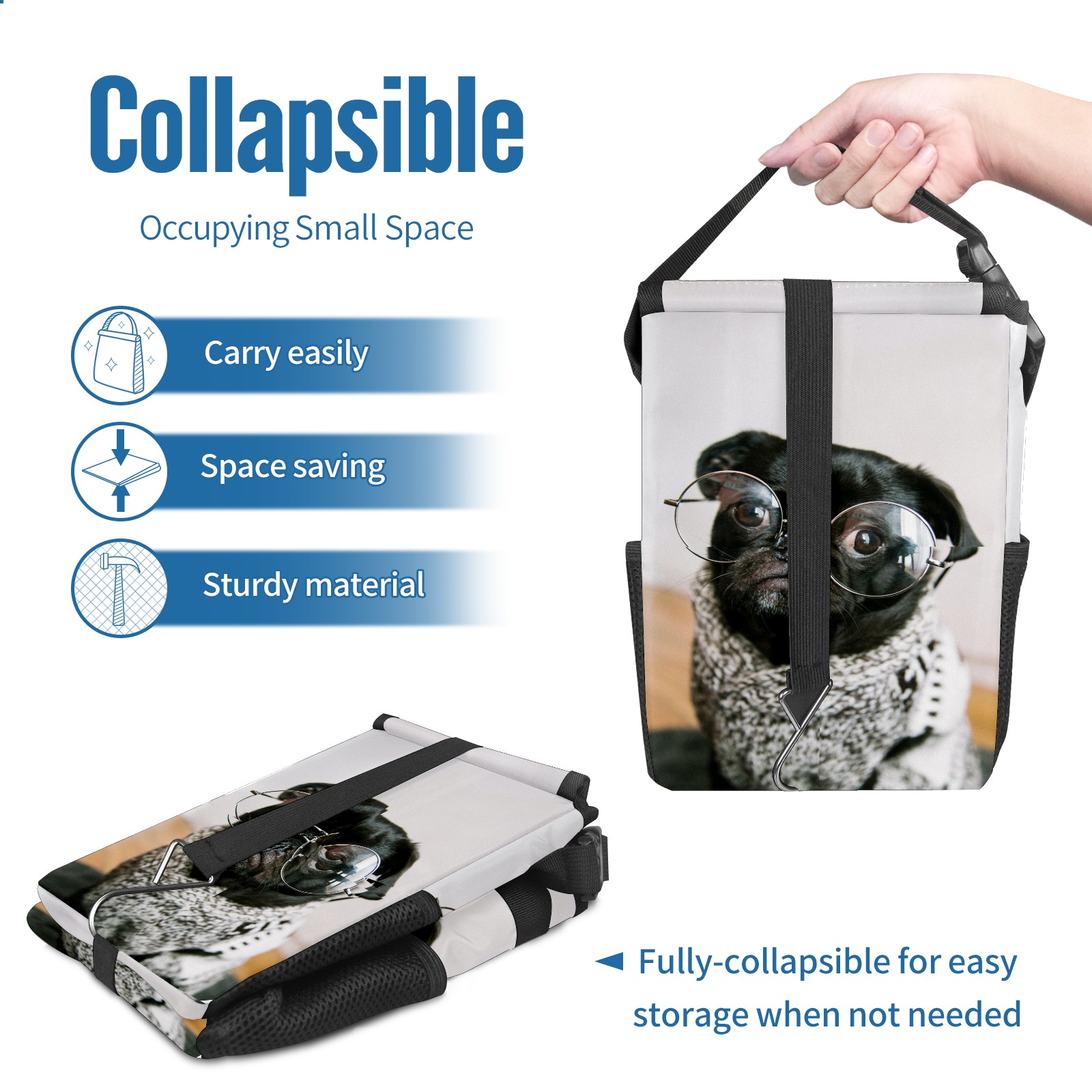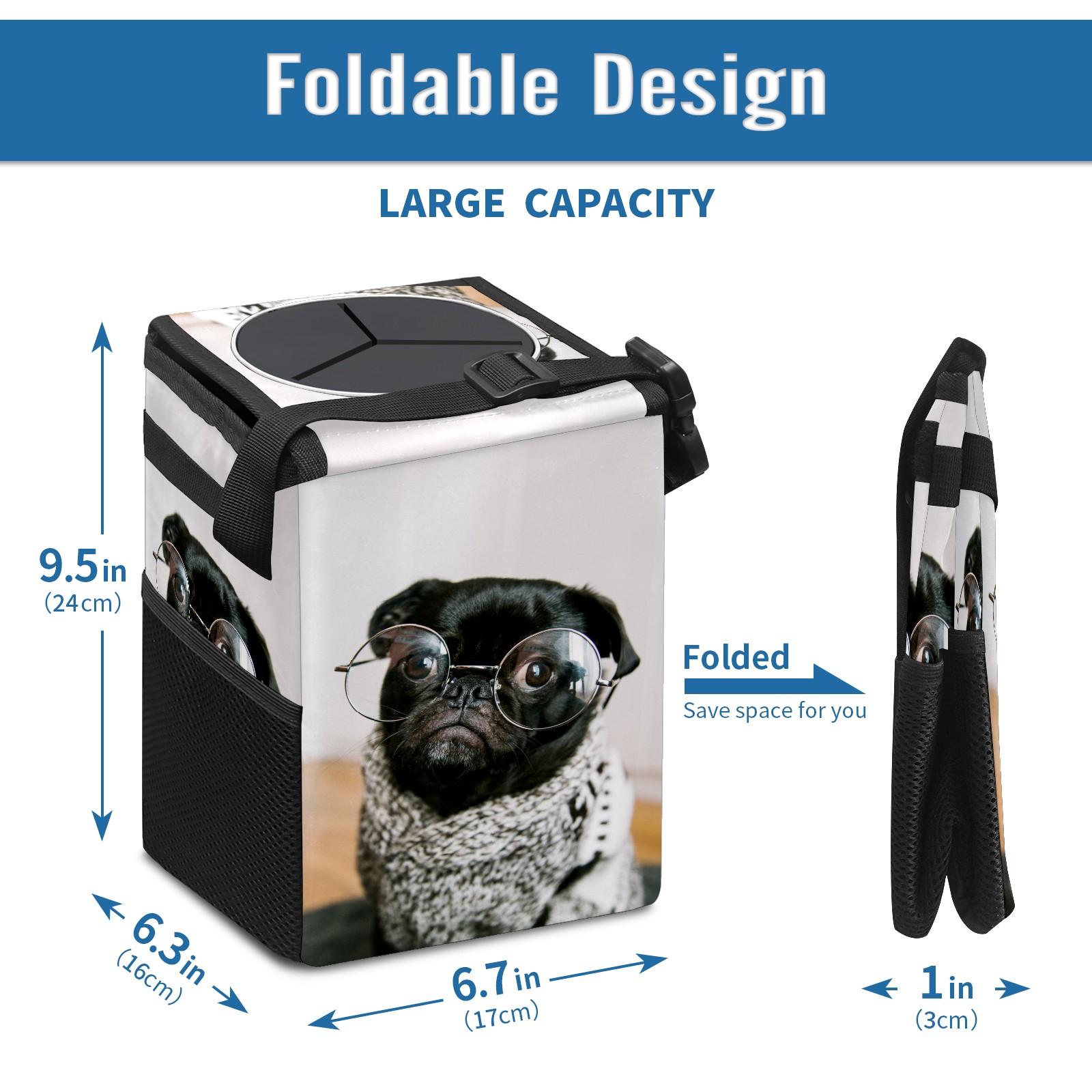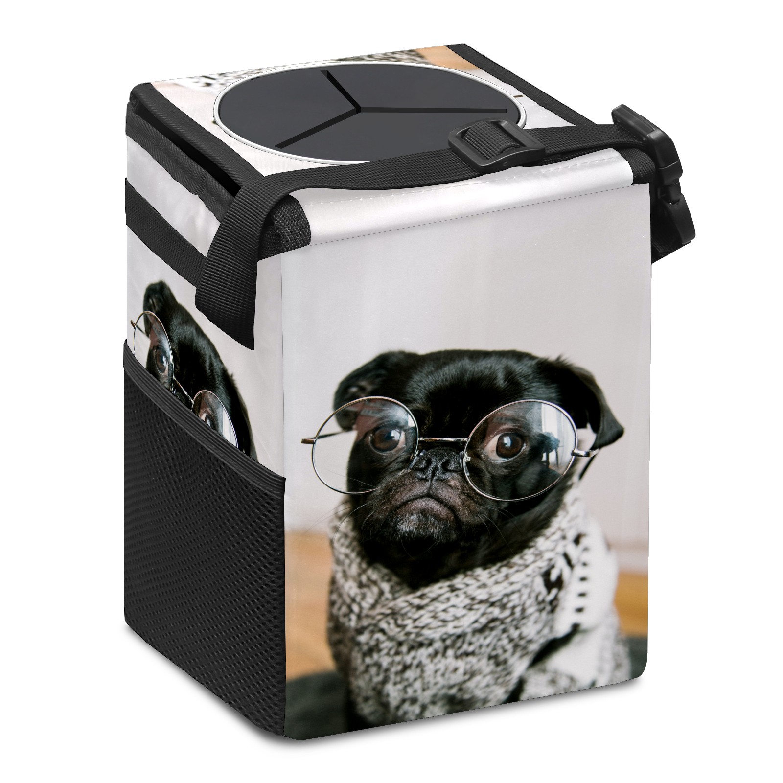 Car Garbage Can — Multi-functional, Lightweight Portable, Reusable Vehicle Trash Can, Waterproof with Sufficient Storage Capacity Cute Dog Wear Glasses
