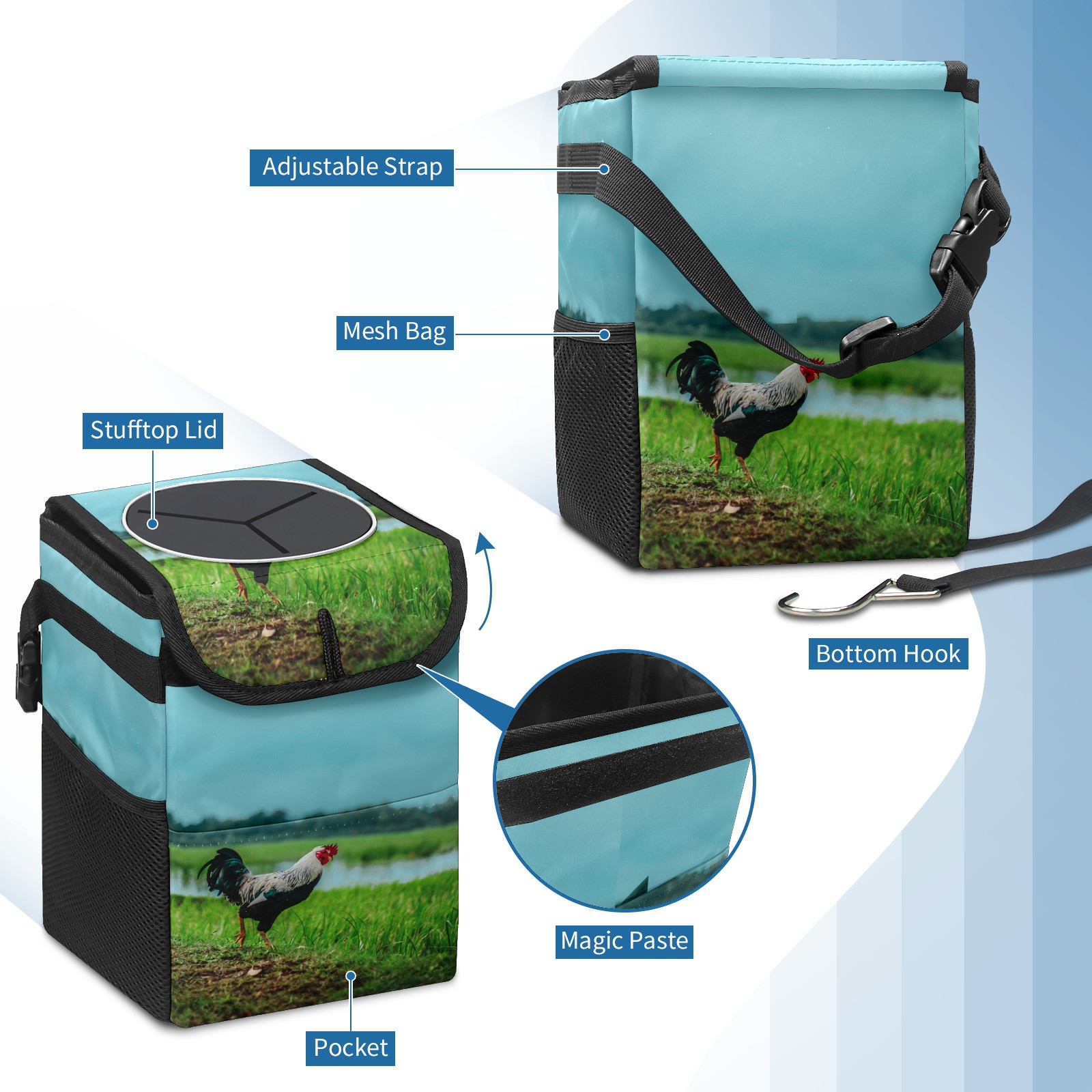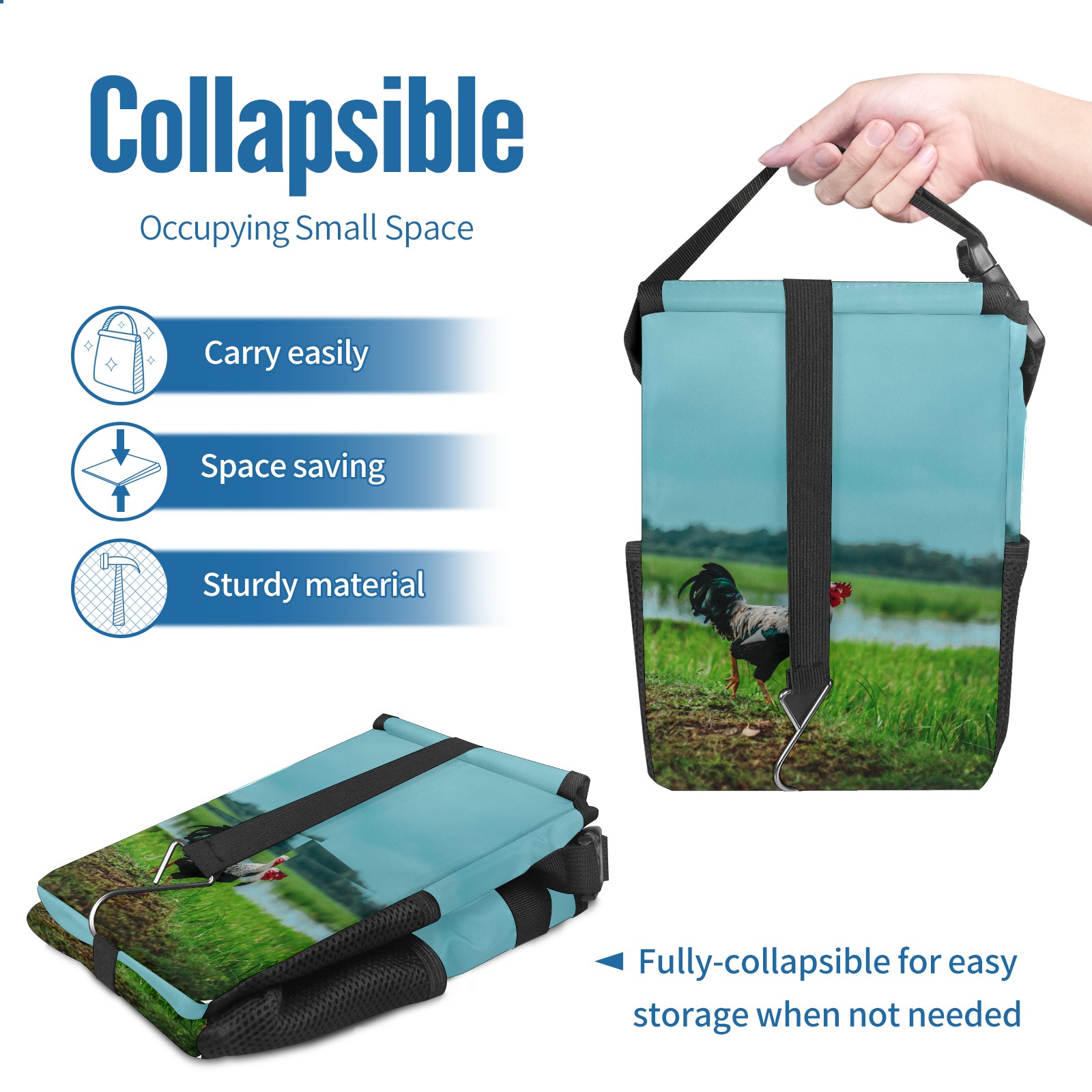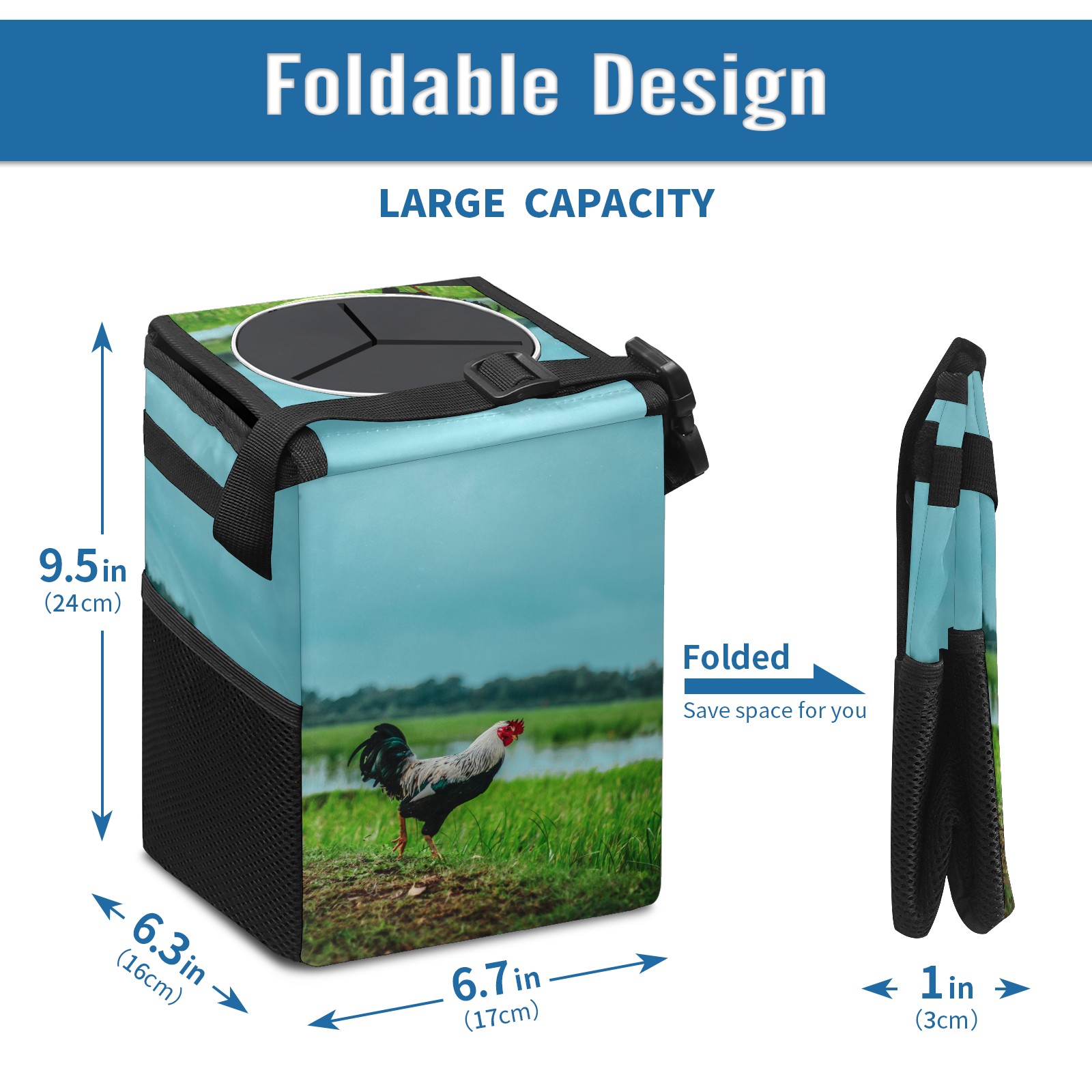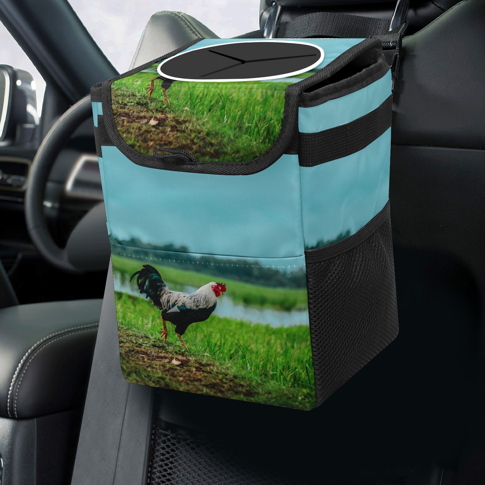 Car Garbage Can — Multi-functional, Lightweight Portable, Reusable Vehicle Trash Can, Waterproof with Sufficient Storage Capacity Chicken Rooster Rustic