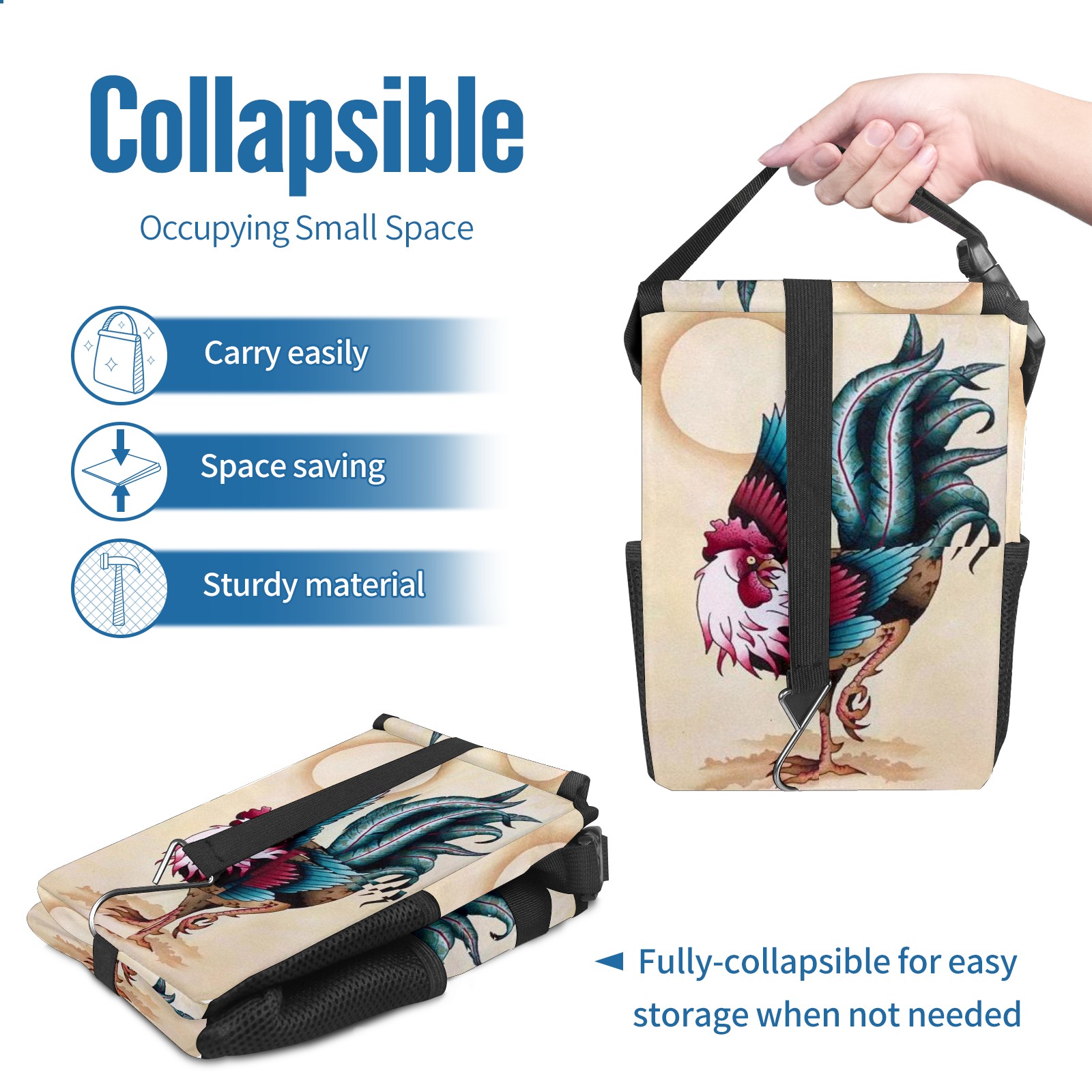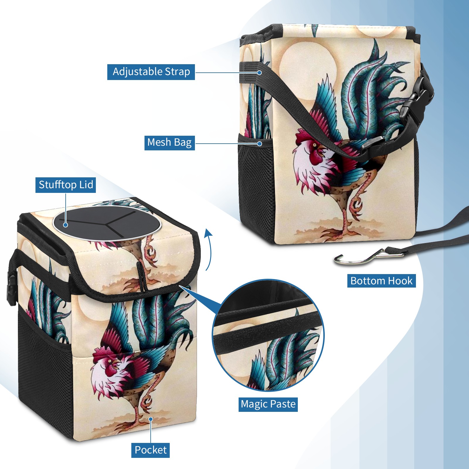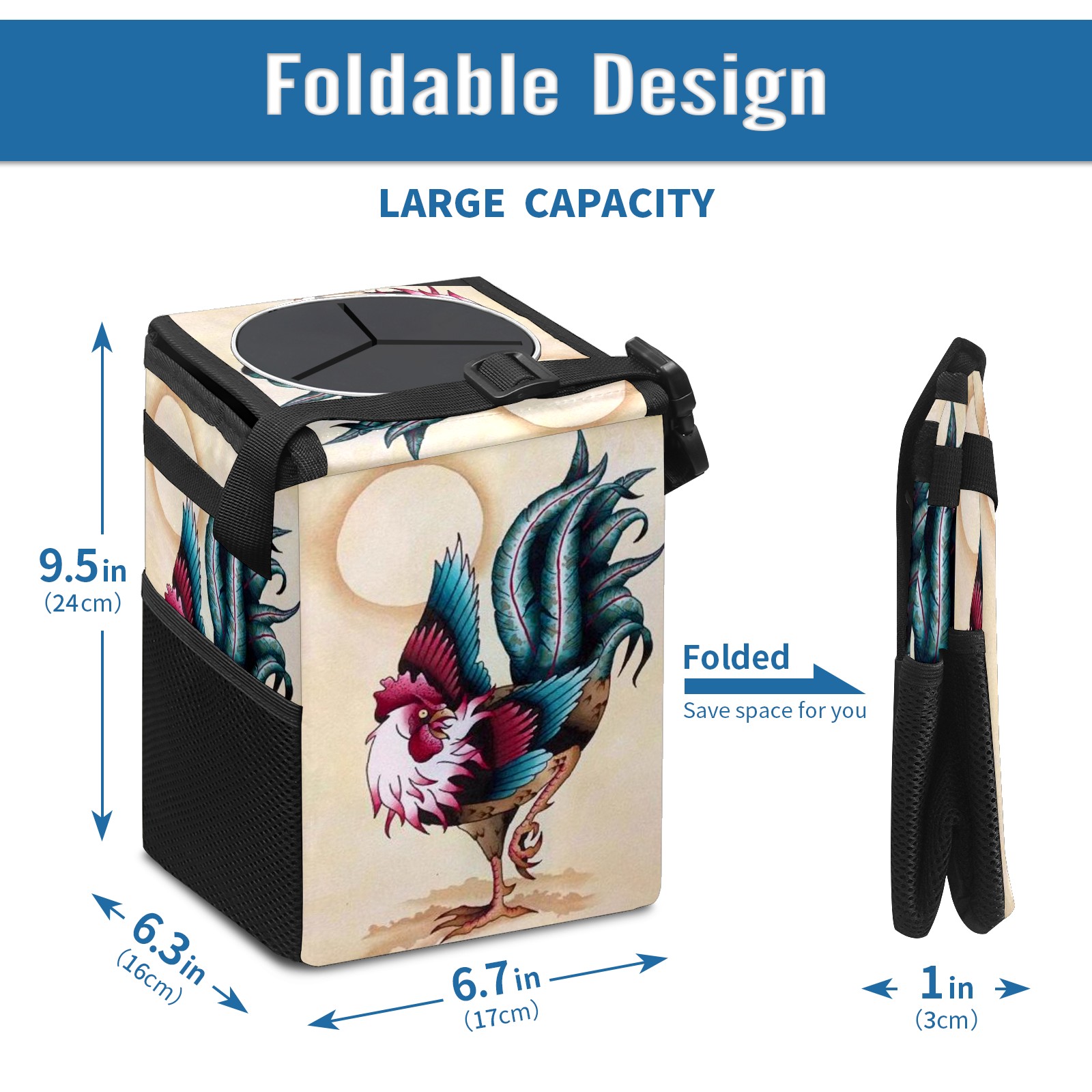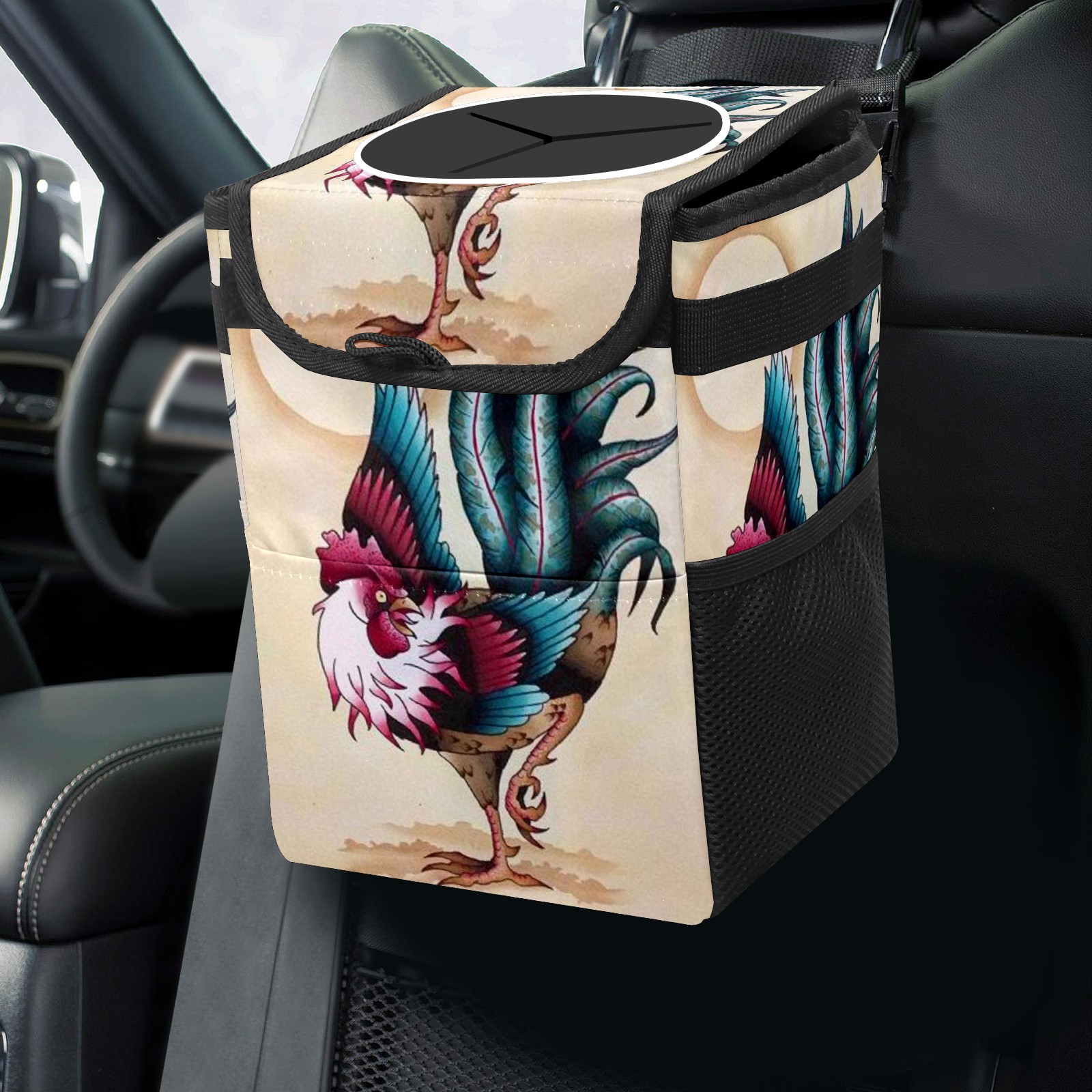 Car Garbage Can — Multi-functional, Lightweight Portable, Reusable Vehicle Trash Can, Waterproof with Sufficient Storage Capacity Chicken Rooster Phoenix