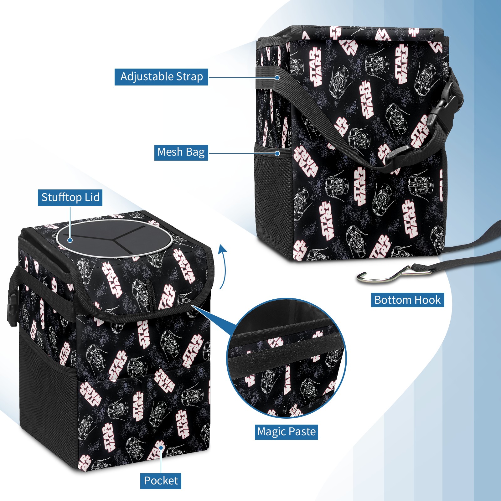 Car Garbage Can — Multi-functional, Lightweight Portable, Reusable Vehicle Trash Can, Waterproof with Sufficient Storage Capacity Black White Darth Warrior