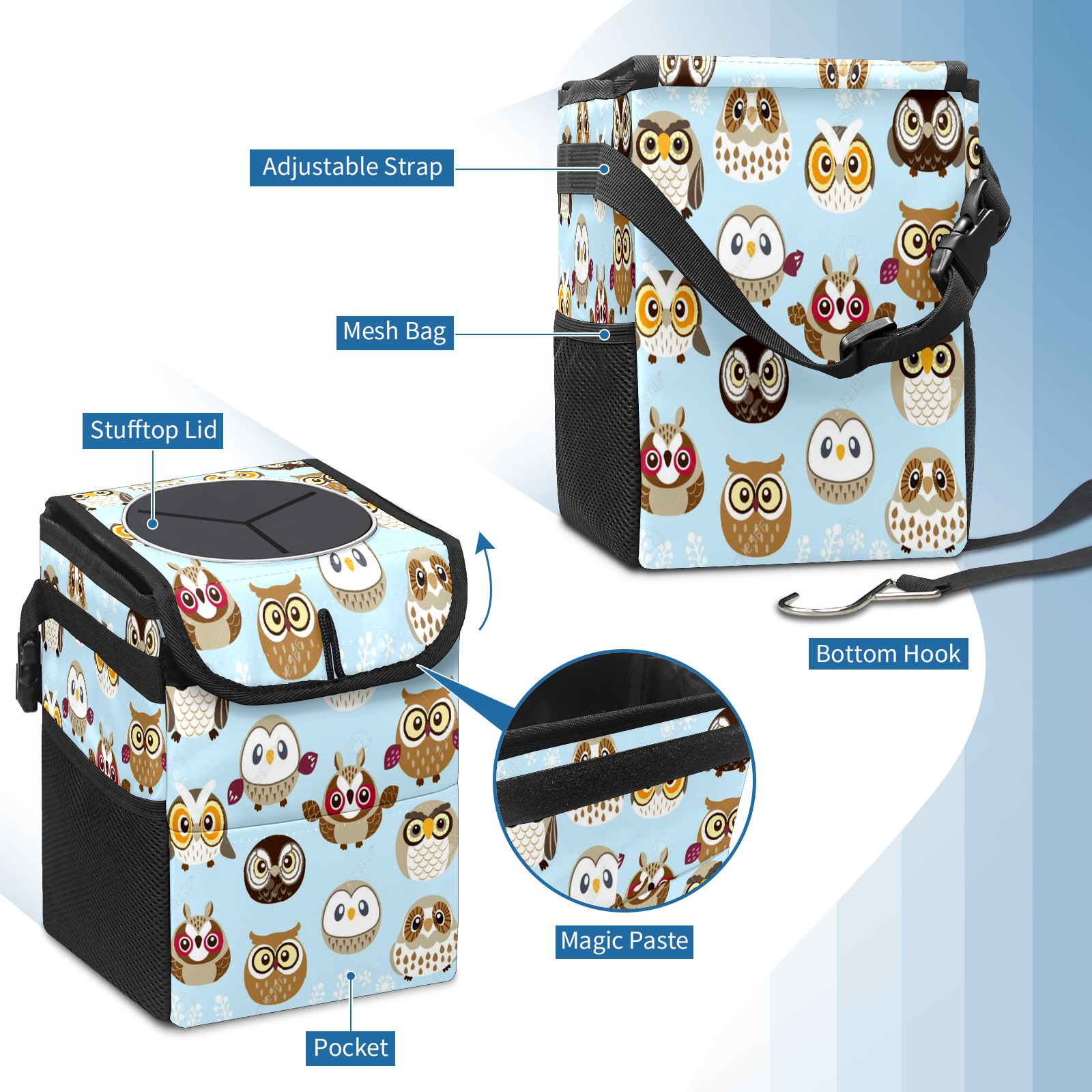 Car Garbage Can — Multi-functional, Lightweight Portable, Reusable Vehicle Trash Can, Waterproof with Sufficient Storage Capacity Cute Cartoon Owl Sets