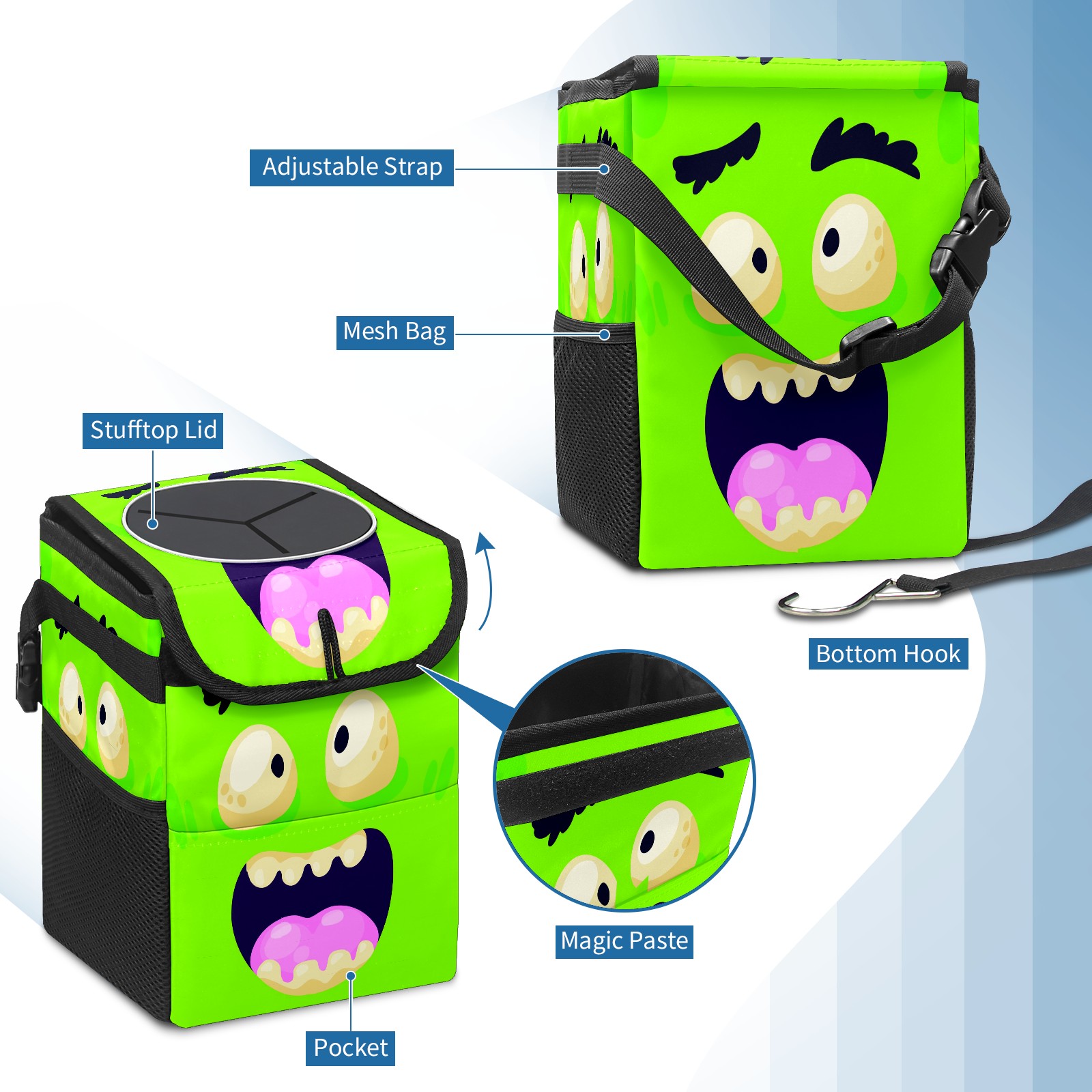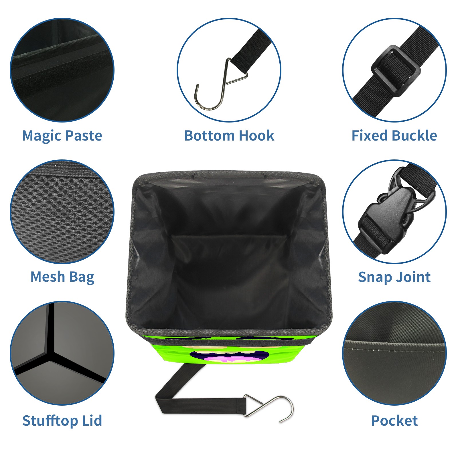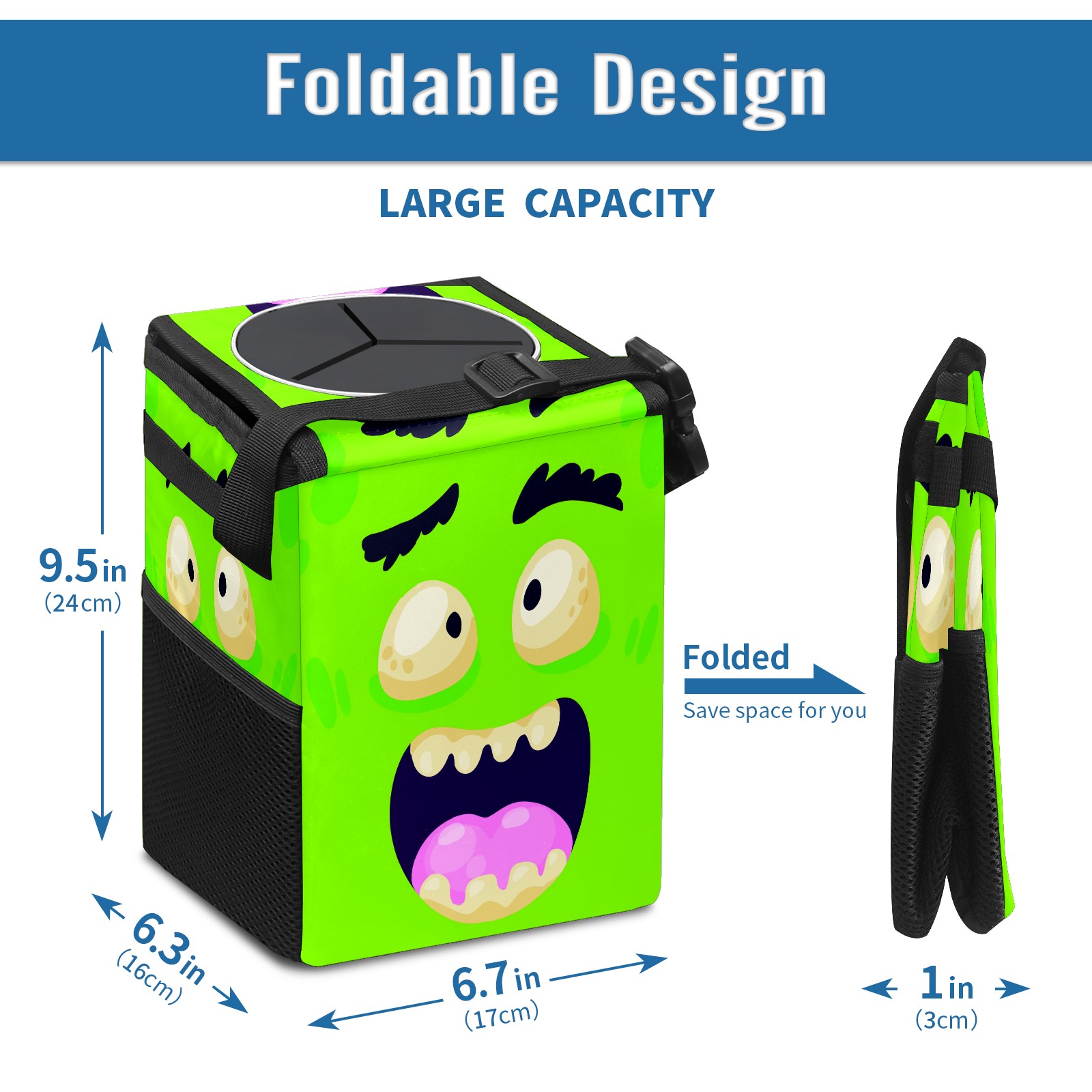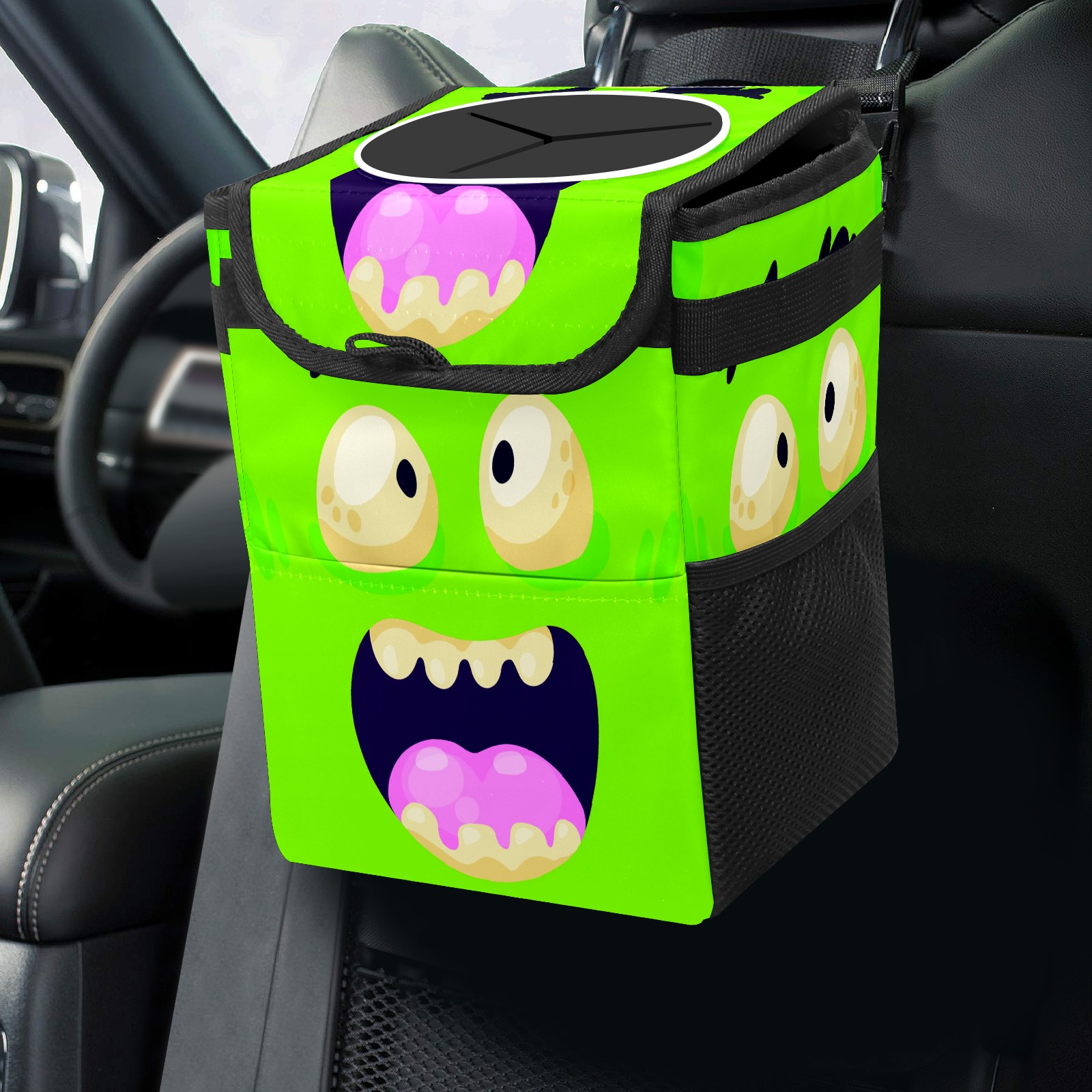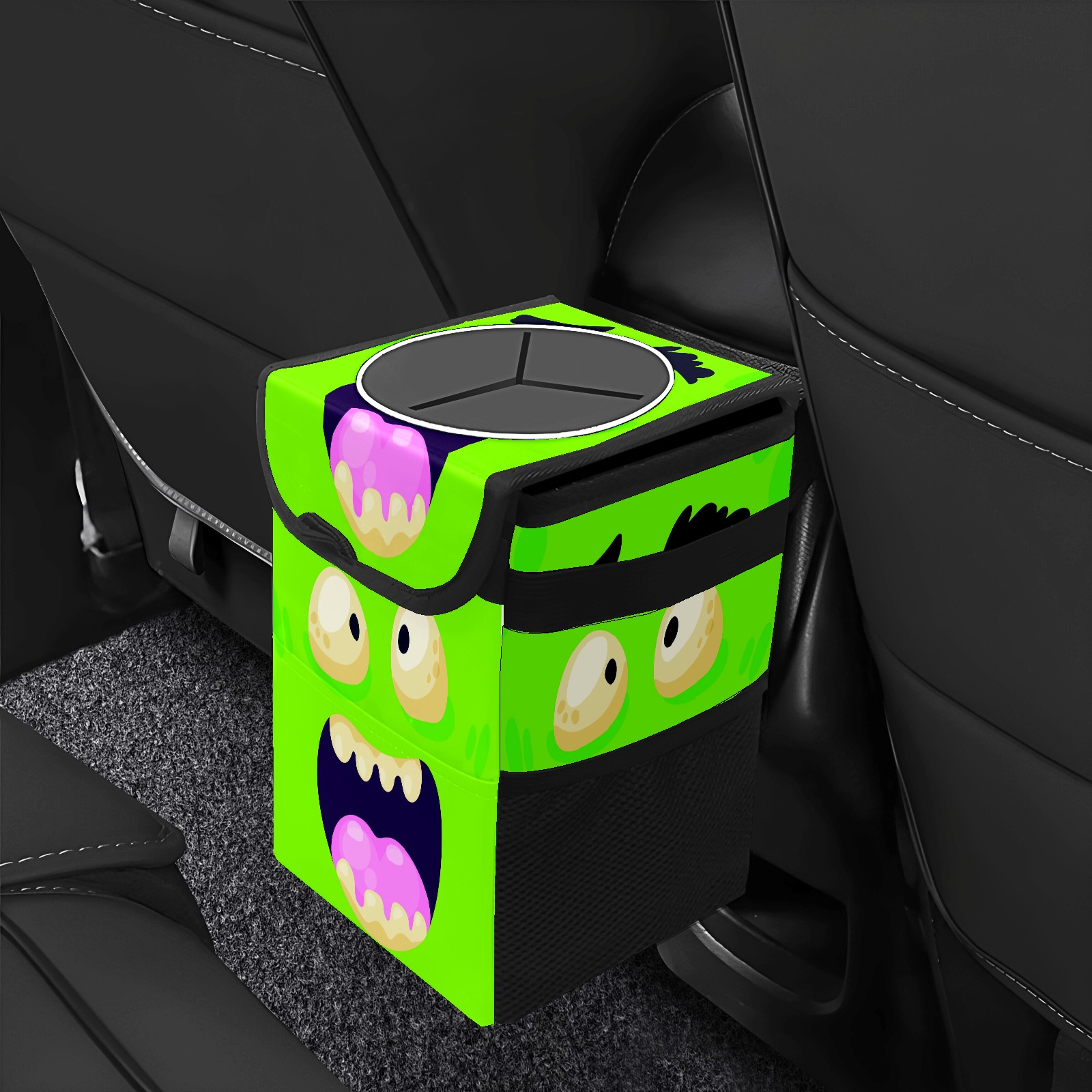 Car Garbage Can — Multi-functional, Lightweight Portable, Reusable Vehicle Trash Can, Waterproof with Sufficient Storage Capacity Green Face Expression