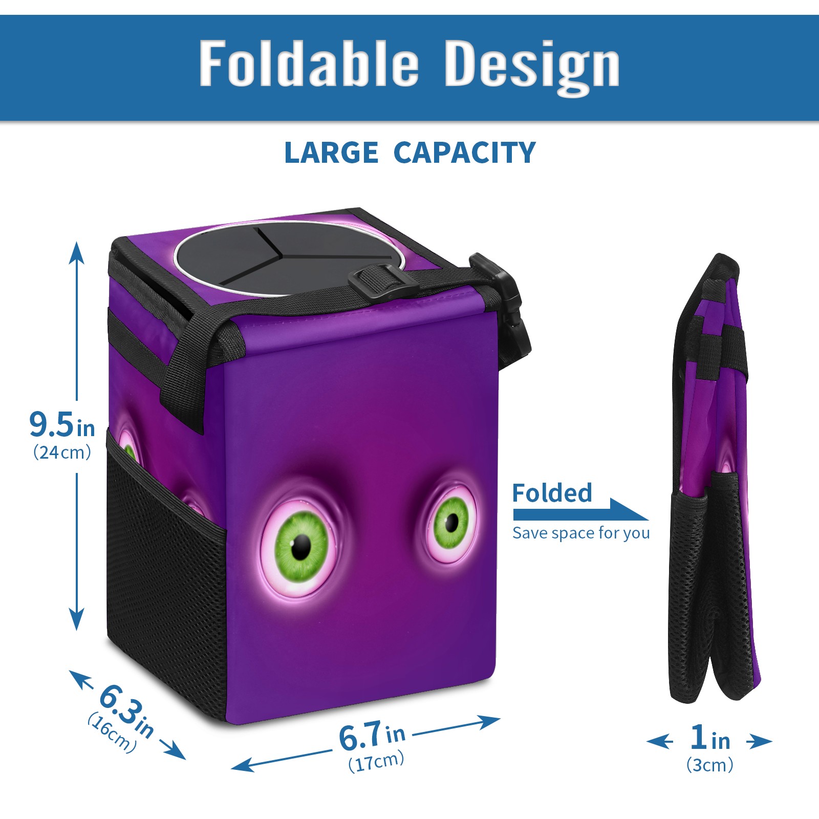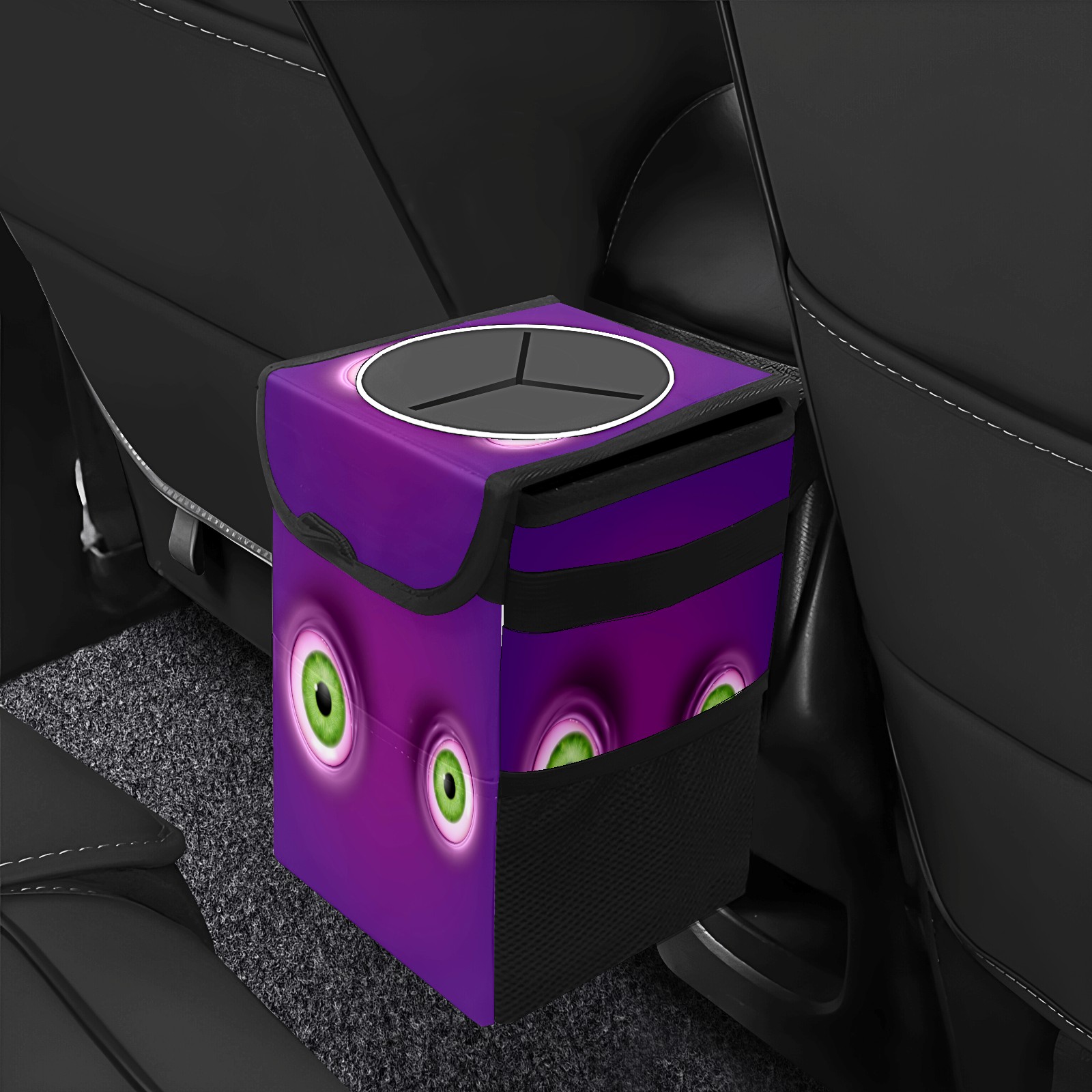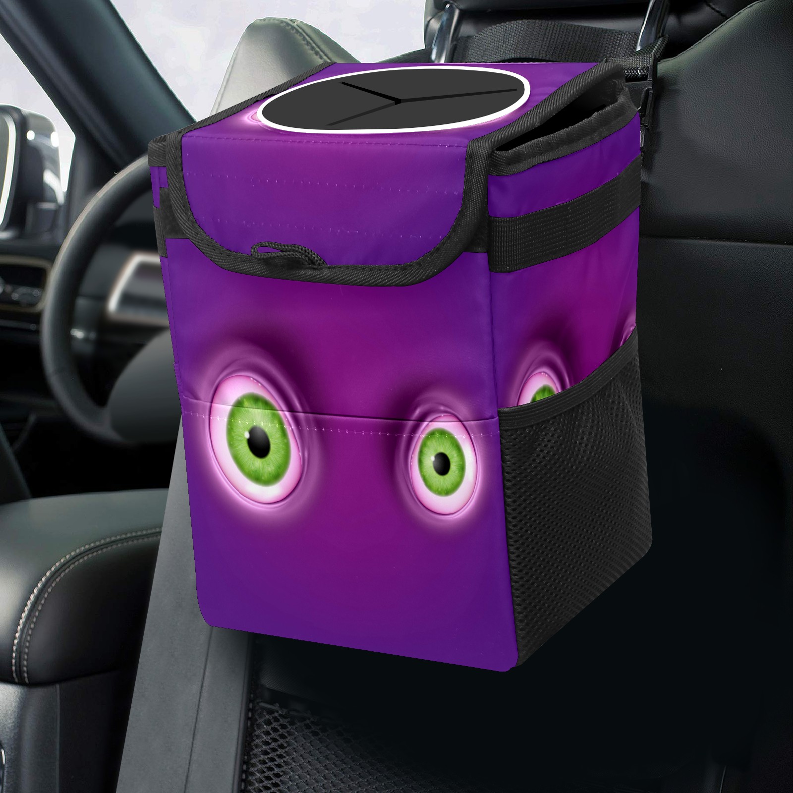 Car Garbage Can — Multi-functional, Lightweight Portable, Reusable Vehicle Trash Can, Waterproof with Sufficient Storage Capacity Green Round Eyes