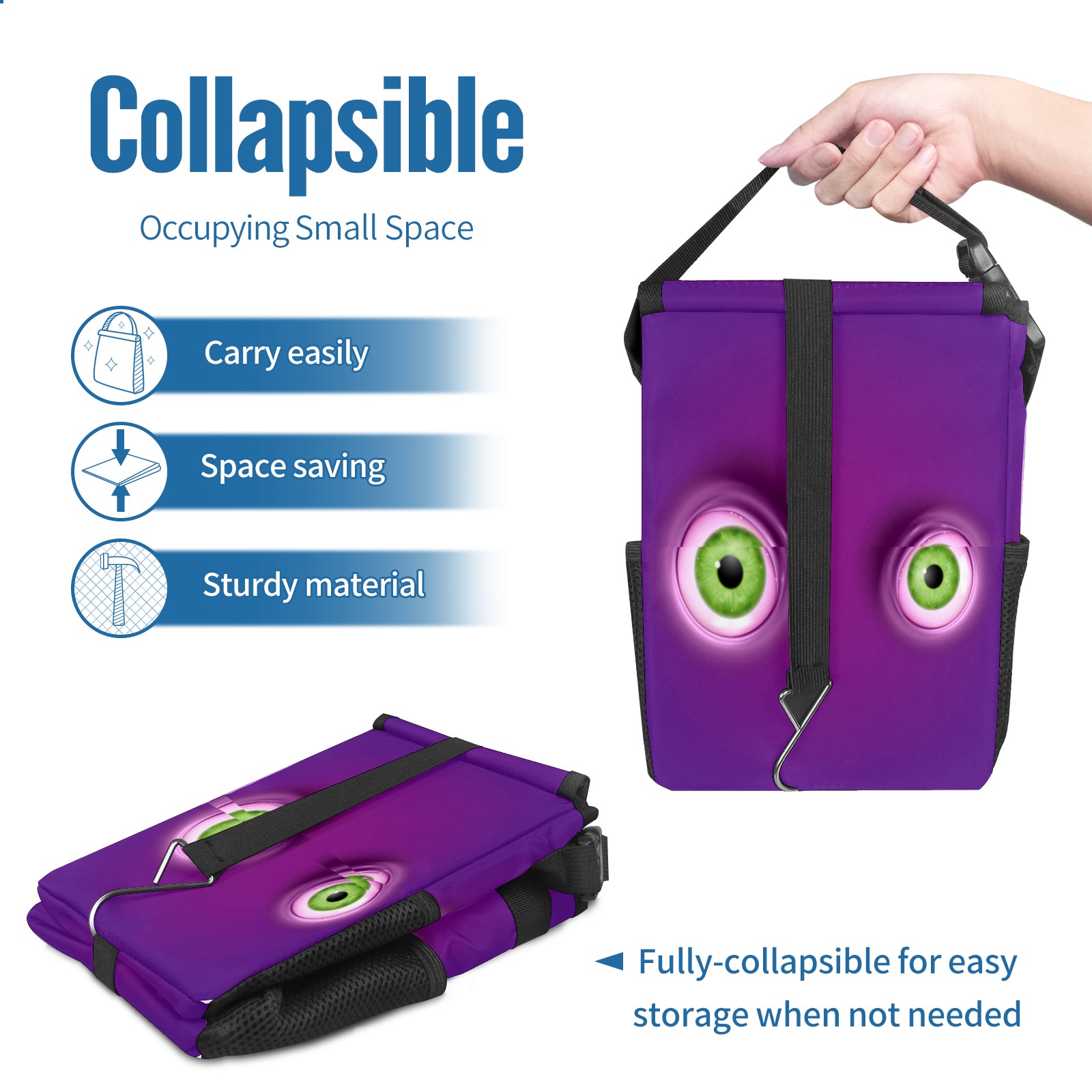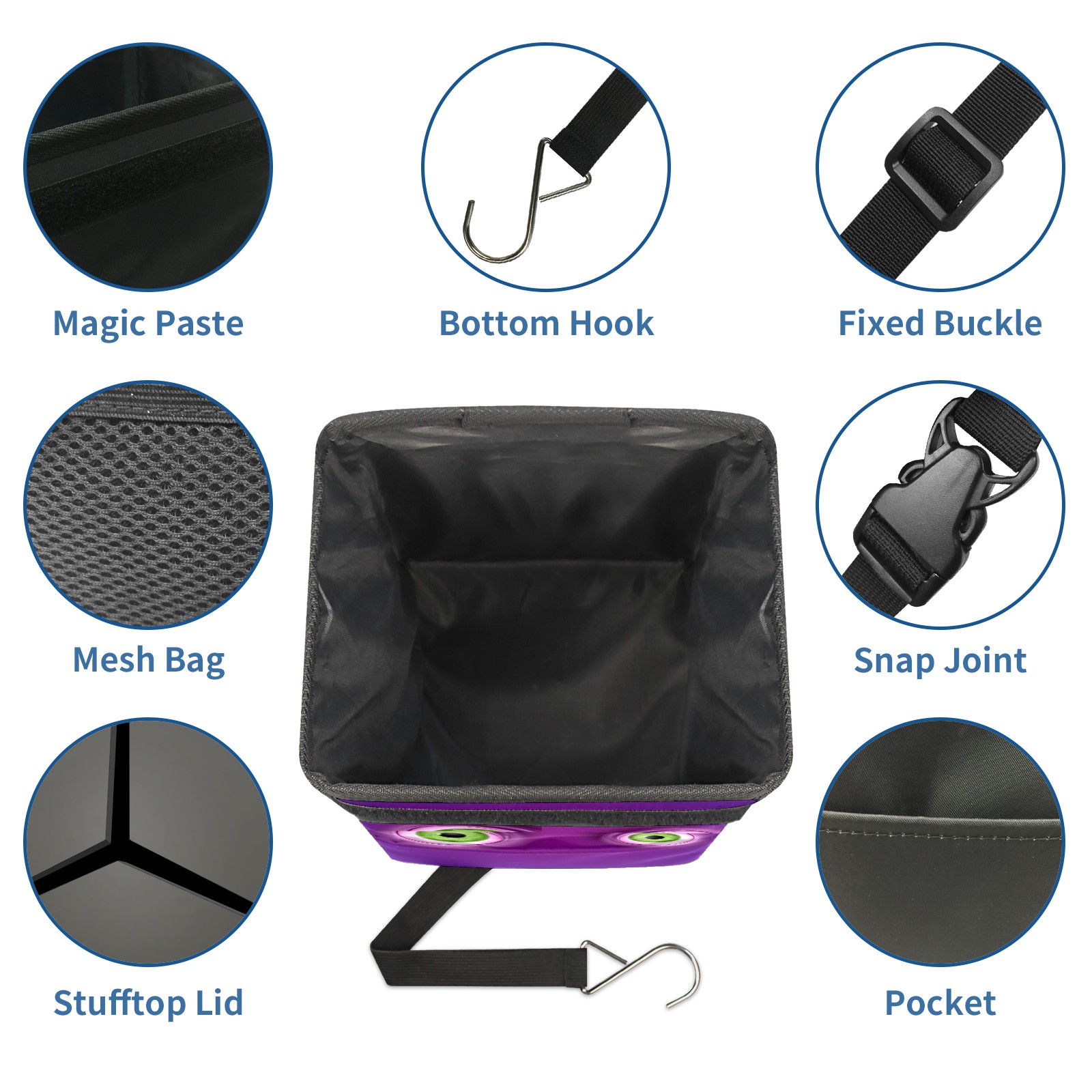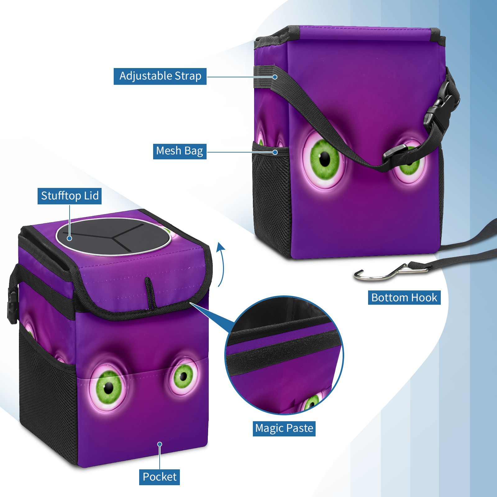 Car Garbage Can — Multi-functional, Lightweight Portable, Reusable Vehicle Trash Can, Waterproof with Sufficient Storage Capacity Green Round Eyes