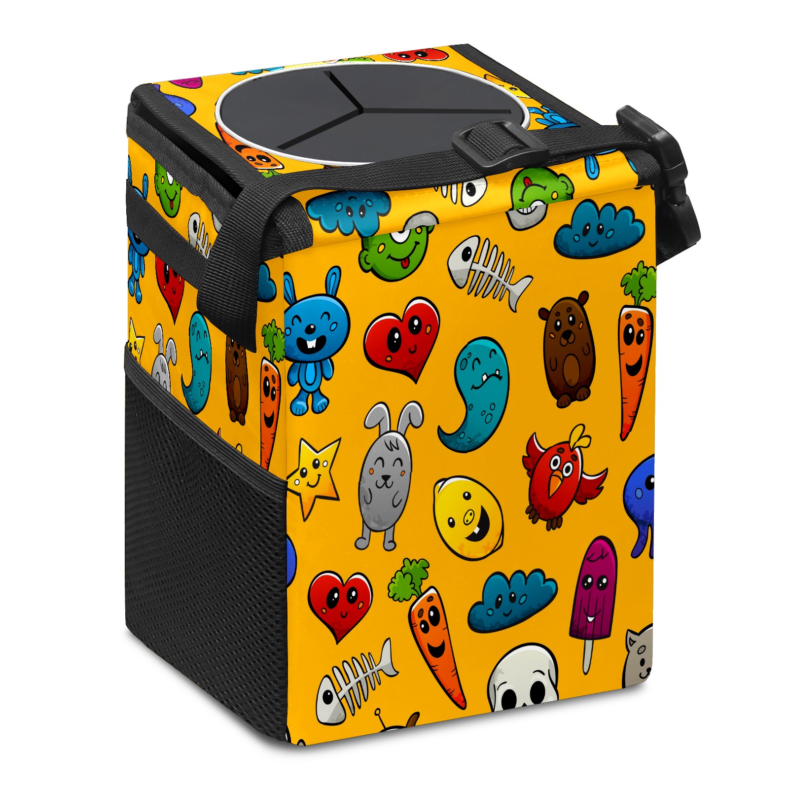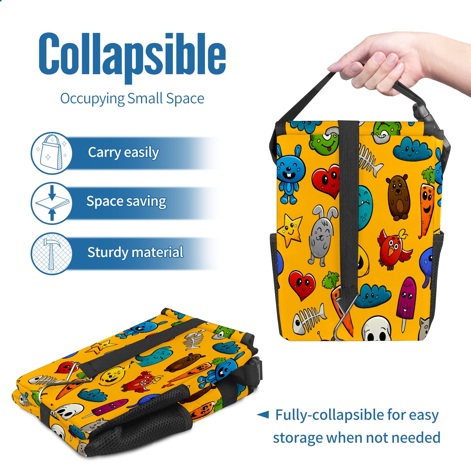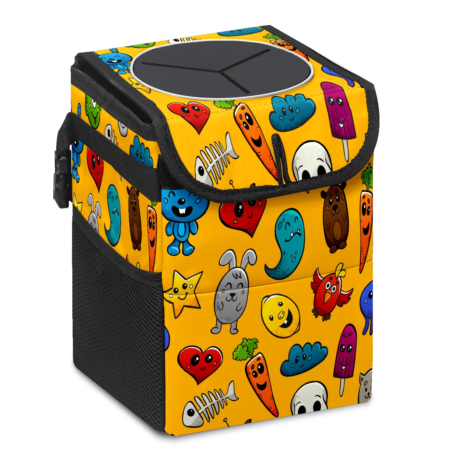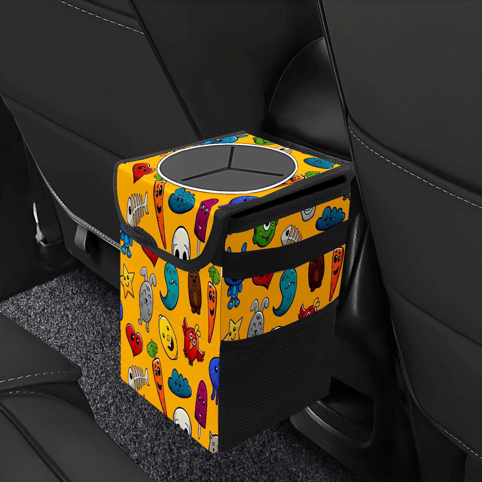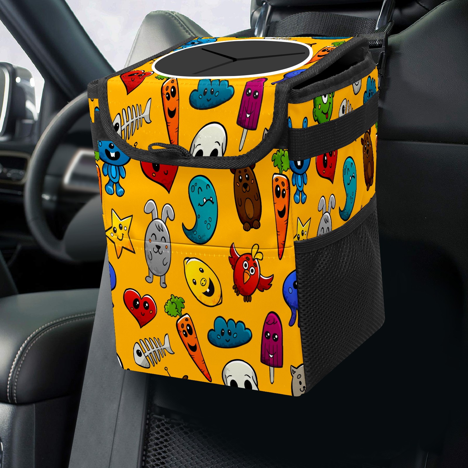 Car Garbage Can — Multi-functional, Lightweight Portable, Reusable Vehicle Trash Can, Waterproof with Sufficient Storage Capacity Graffiti Cartoon Characters