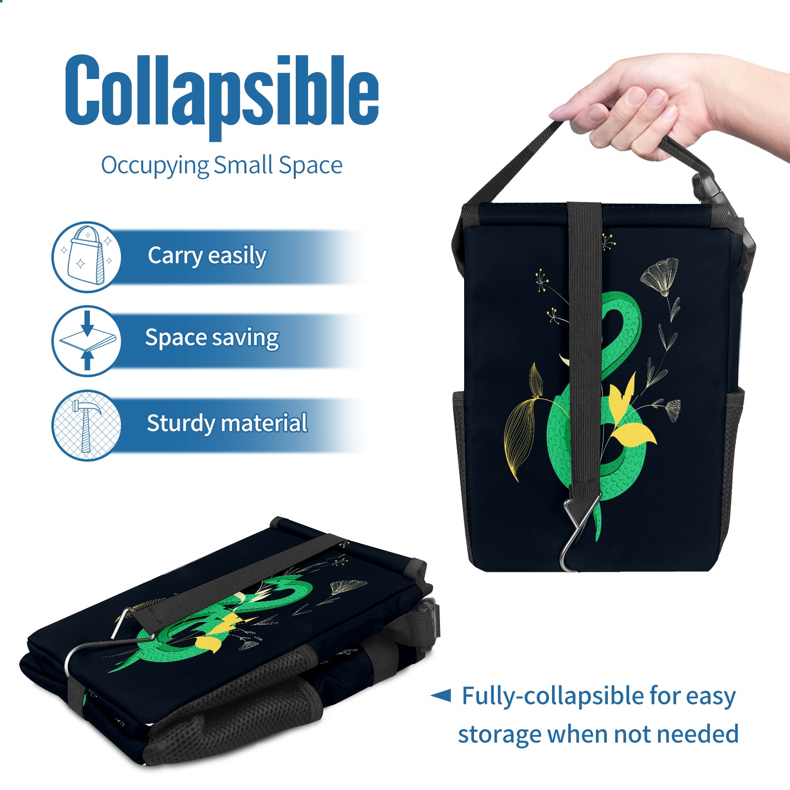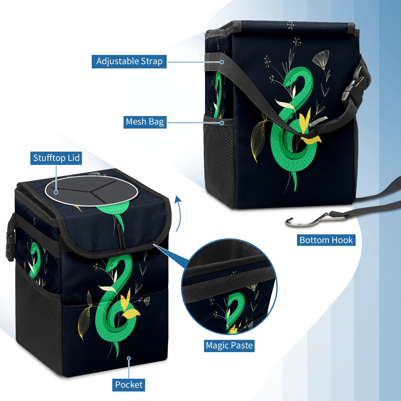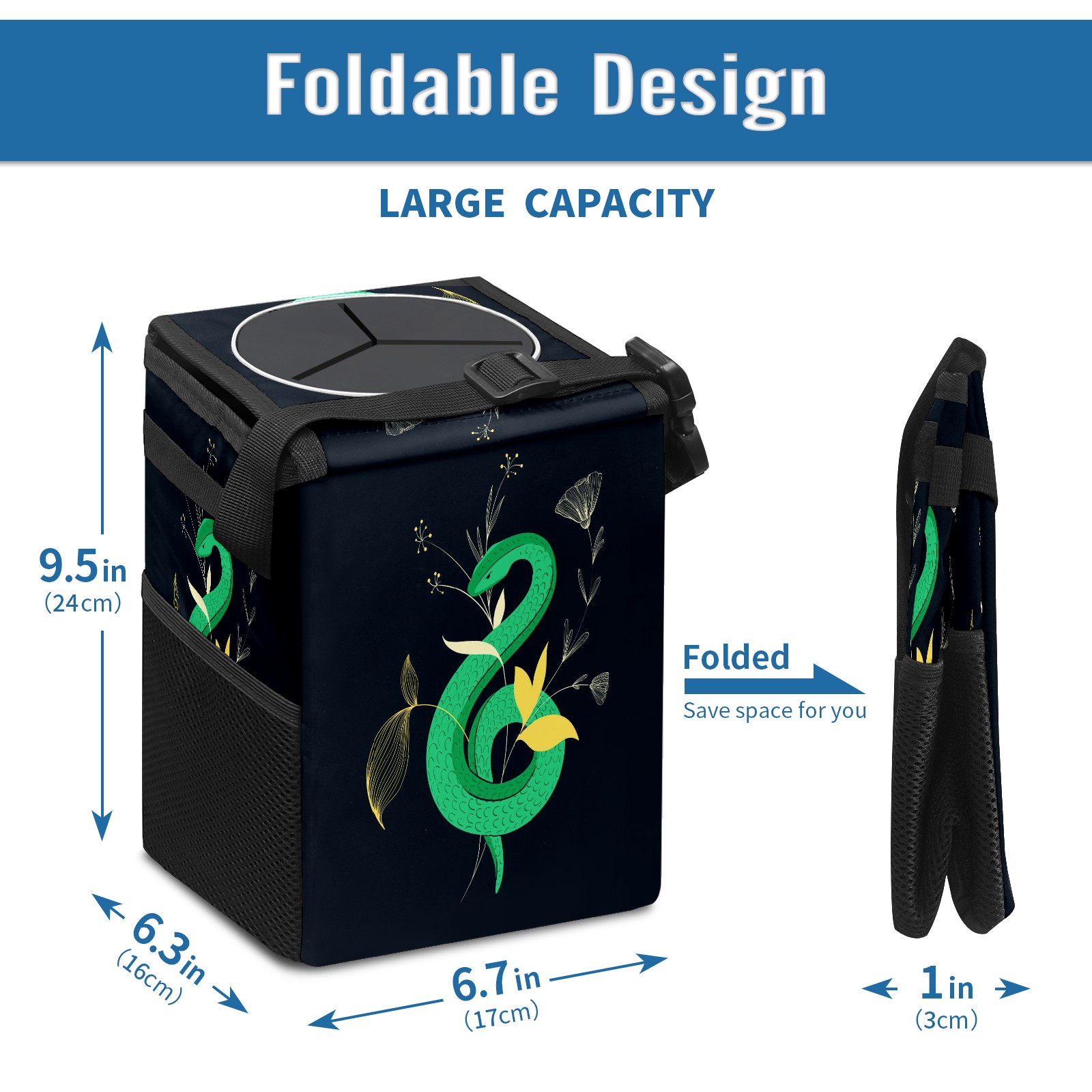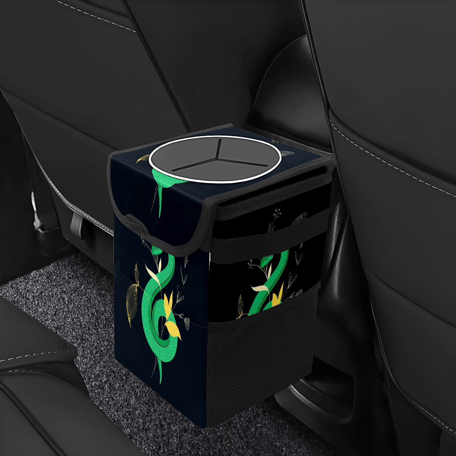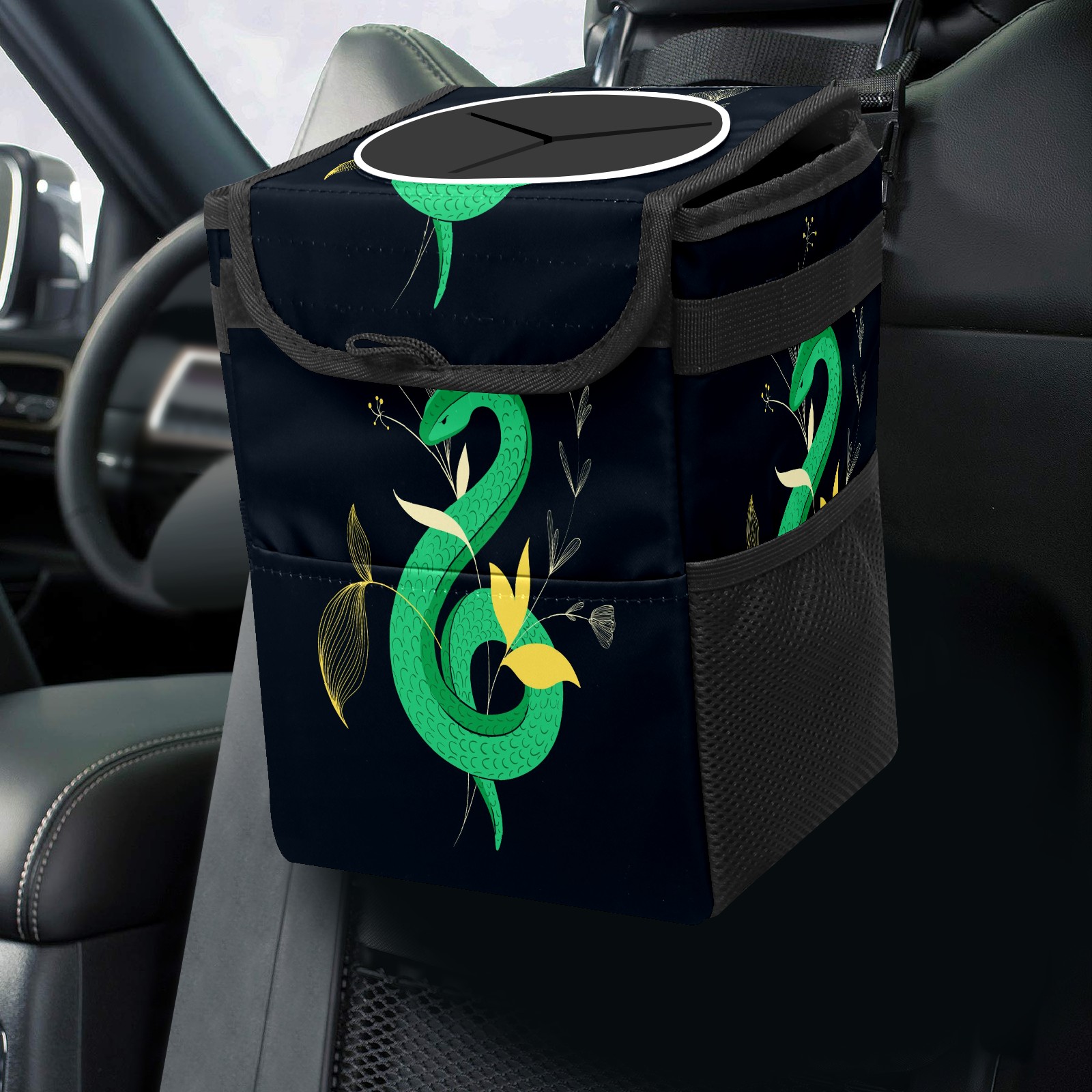 Car Garbage Can — Multi-functional, Lightweight Portable, Reusable Vehicle Trash Can, Waterproof with Sufficient Storage Capacity Dark Snake Flowers