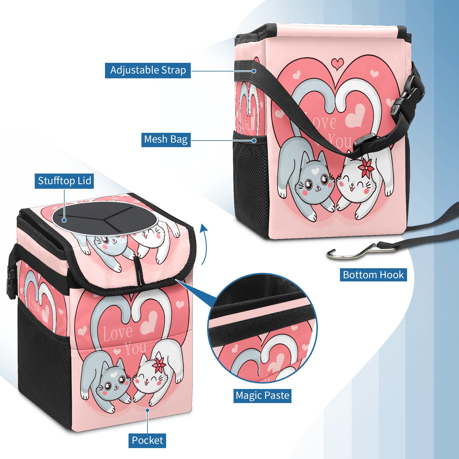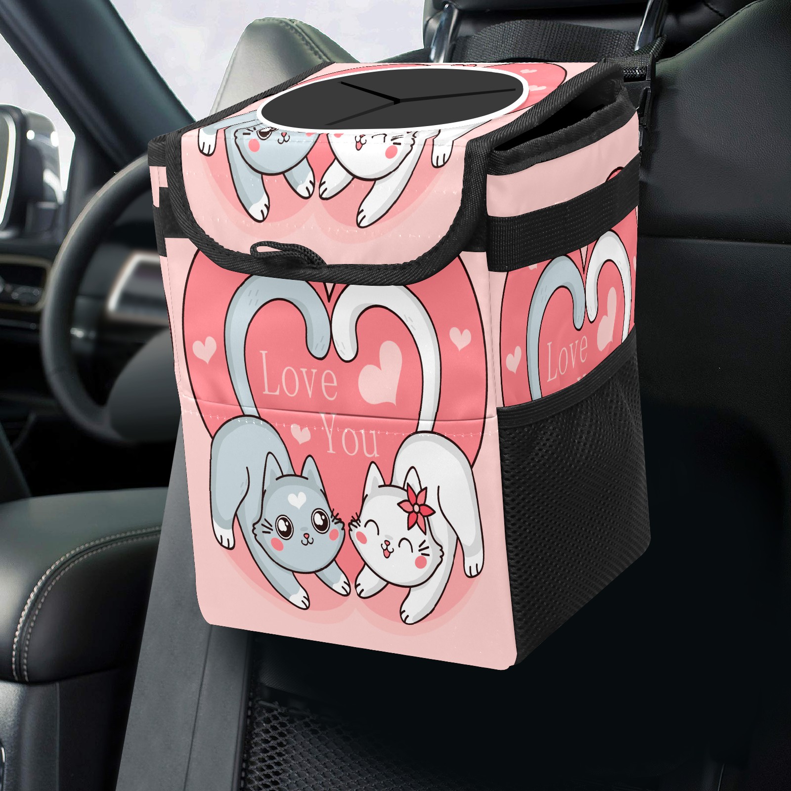 Car Garbage Can — Multi-functional, Lightweight Portable, Reusable Vehicle Trash Can, Waterproof with Sufficient Storage Capacity Cute Cat E Animal Couple