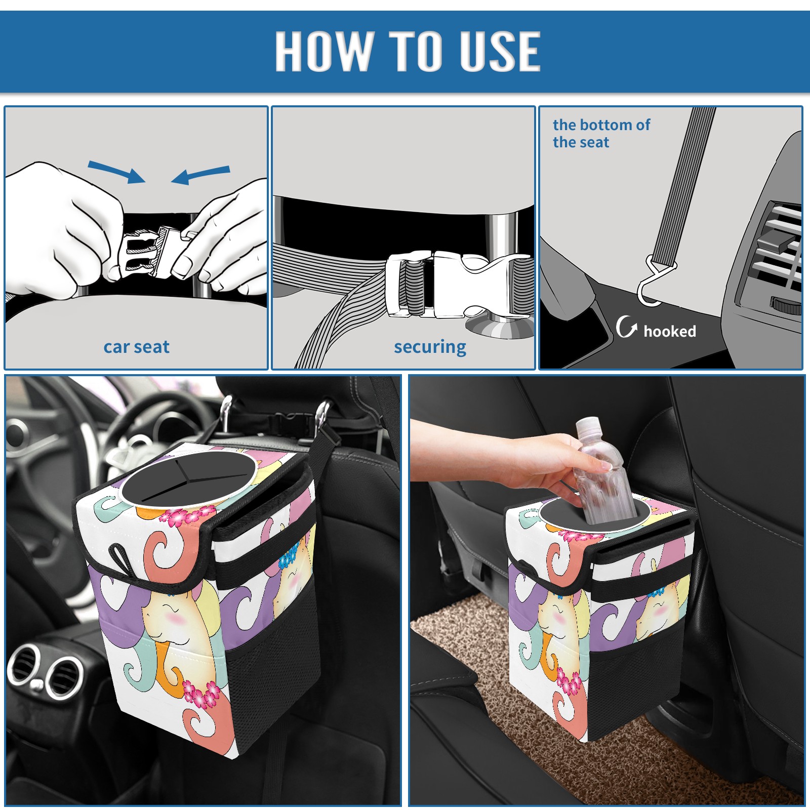 Car Garbage Can — Multi-functional, Lightweight Portable, Reusable Vehicle Trash Can, Waterproof with Sufficient Storage Capacity ユニコーン マルチ かわいい
