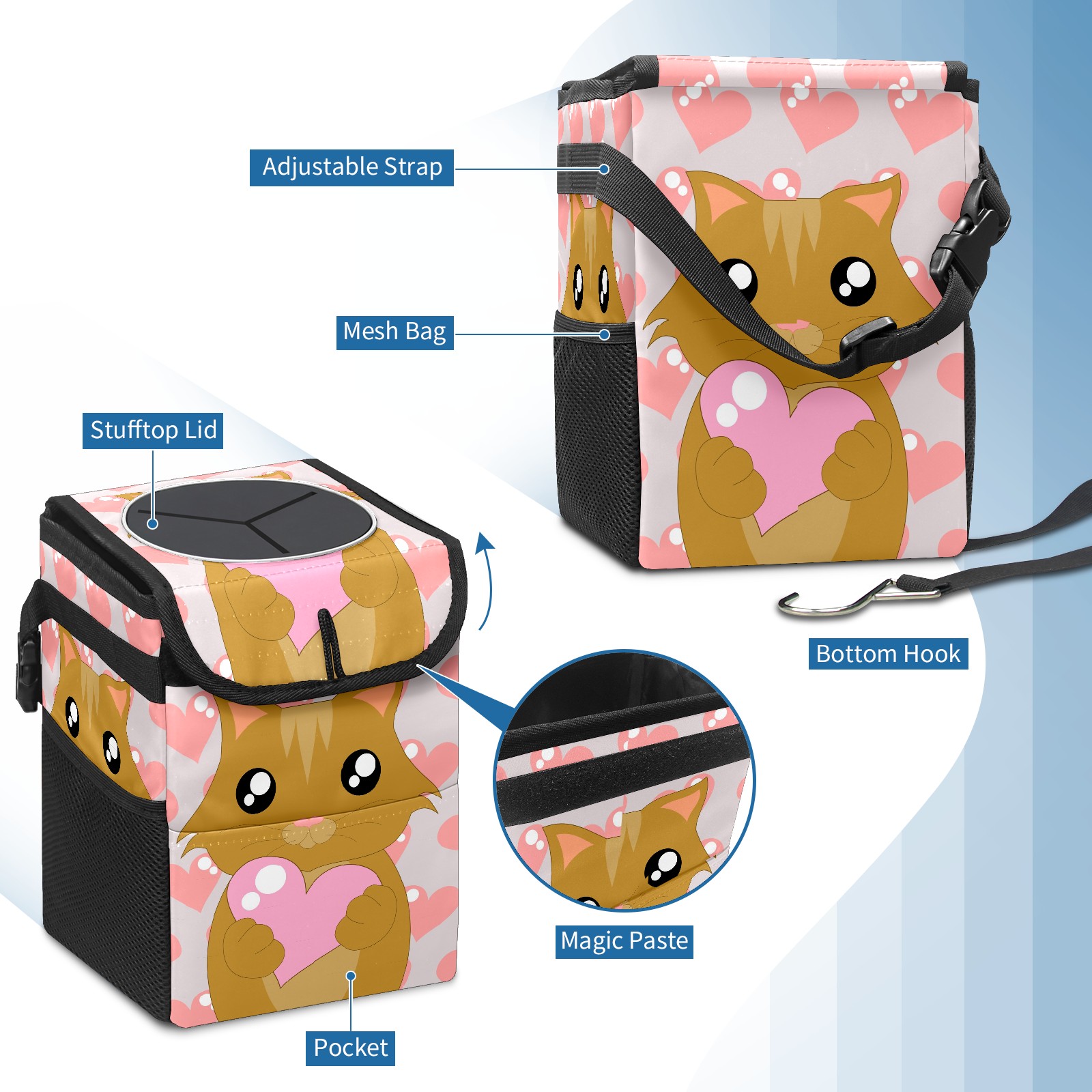 Car Garbage Can — Multi-functional, Lightweight Portable, Reusable Vehicle Trash Can, Waterproof with Sufficient Storage Capacity kitten-3142435-01