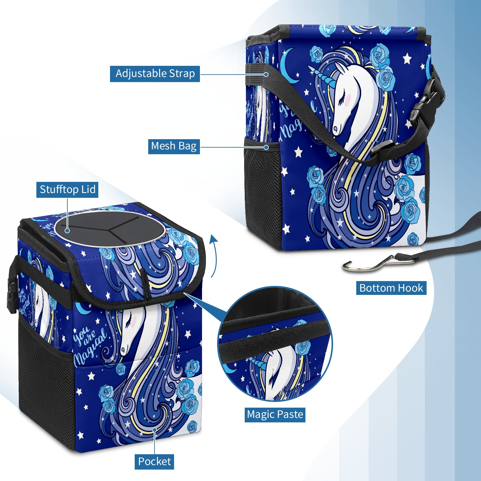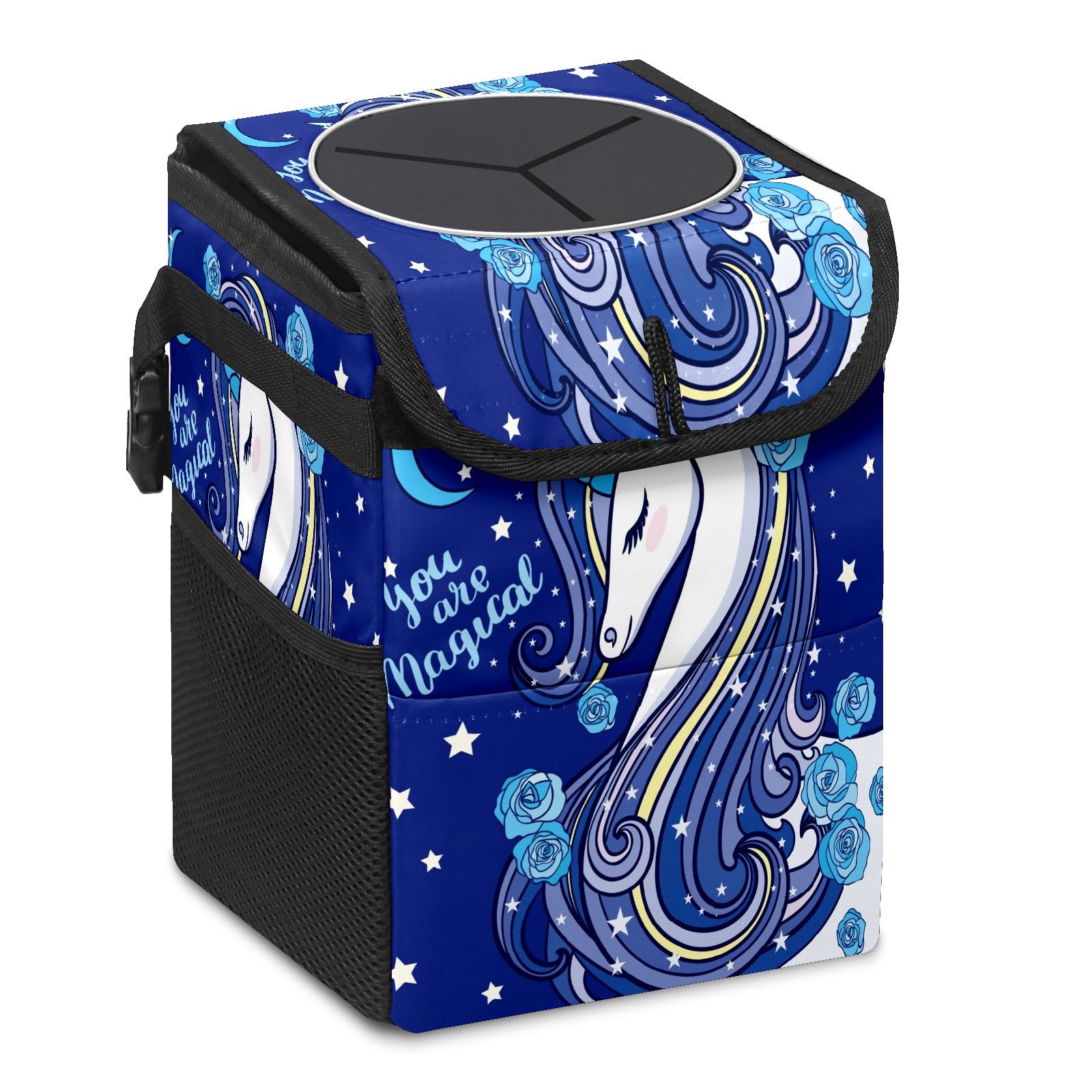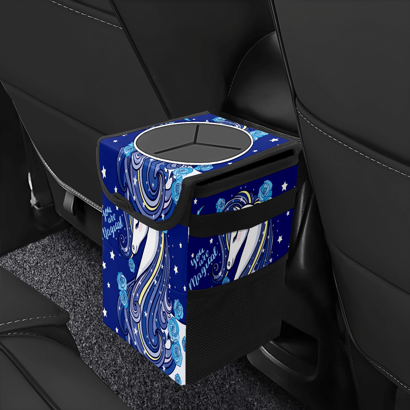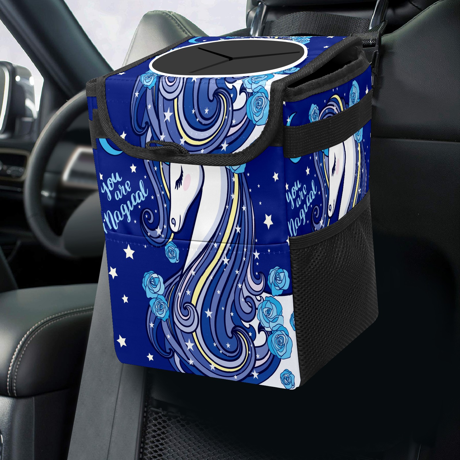 Car Garbage Can — Multi-functional, Lightweight Portable, Reusable Vehicle Trash Can, Waterproof with Sufficient Storage Capacity Blue Rose Unicorn