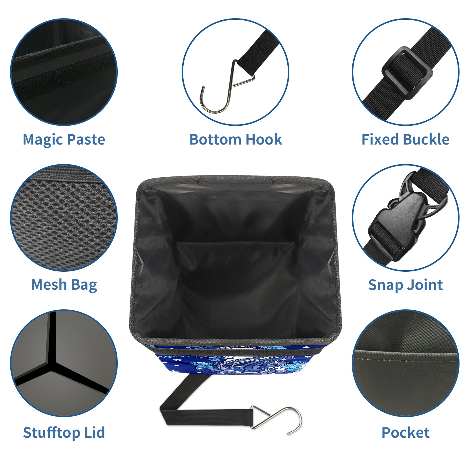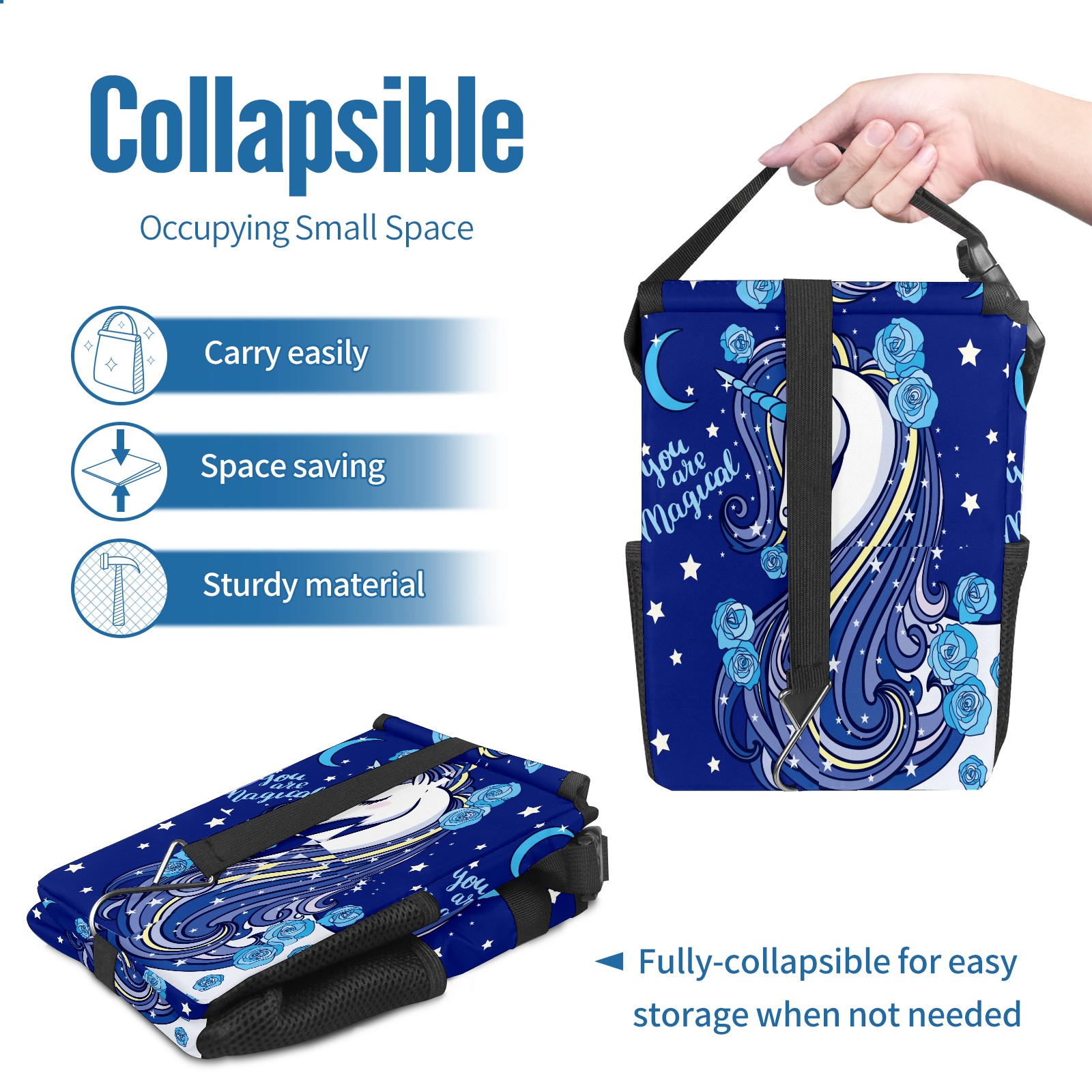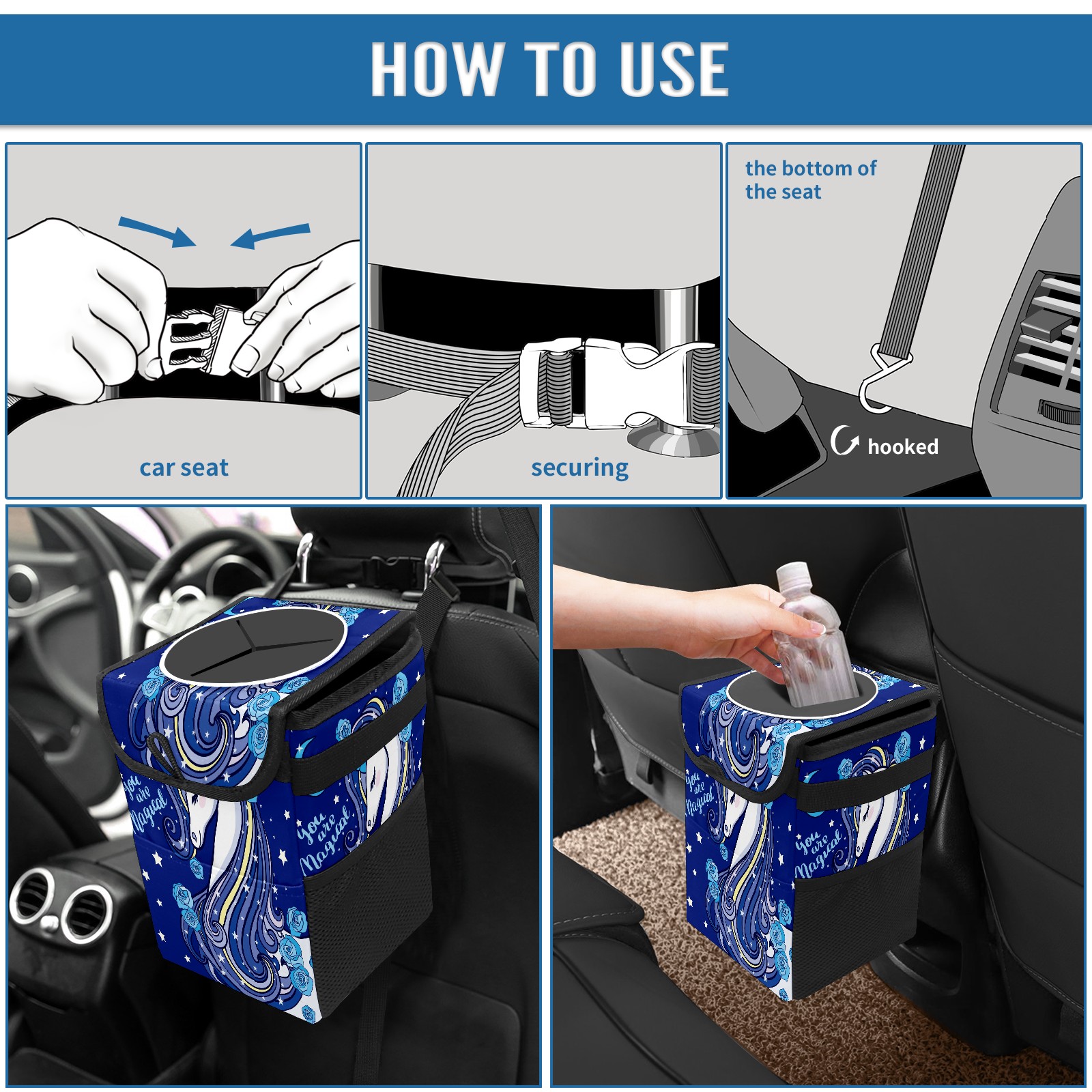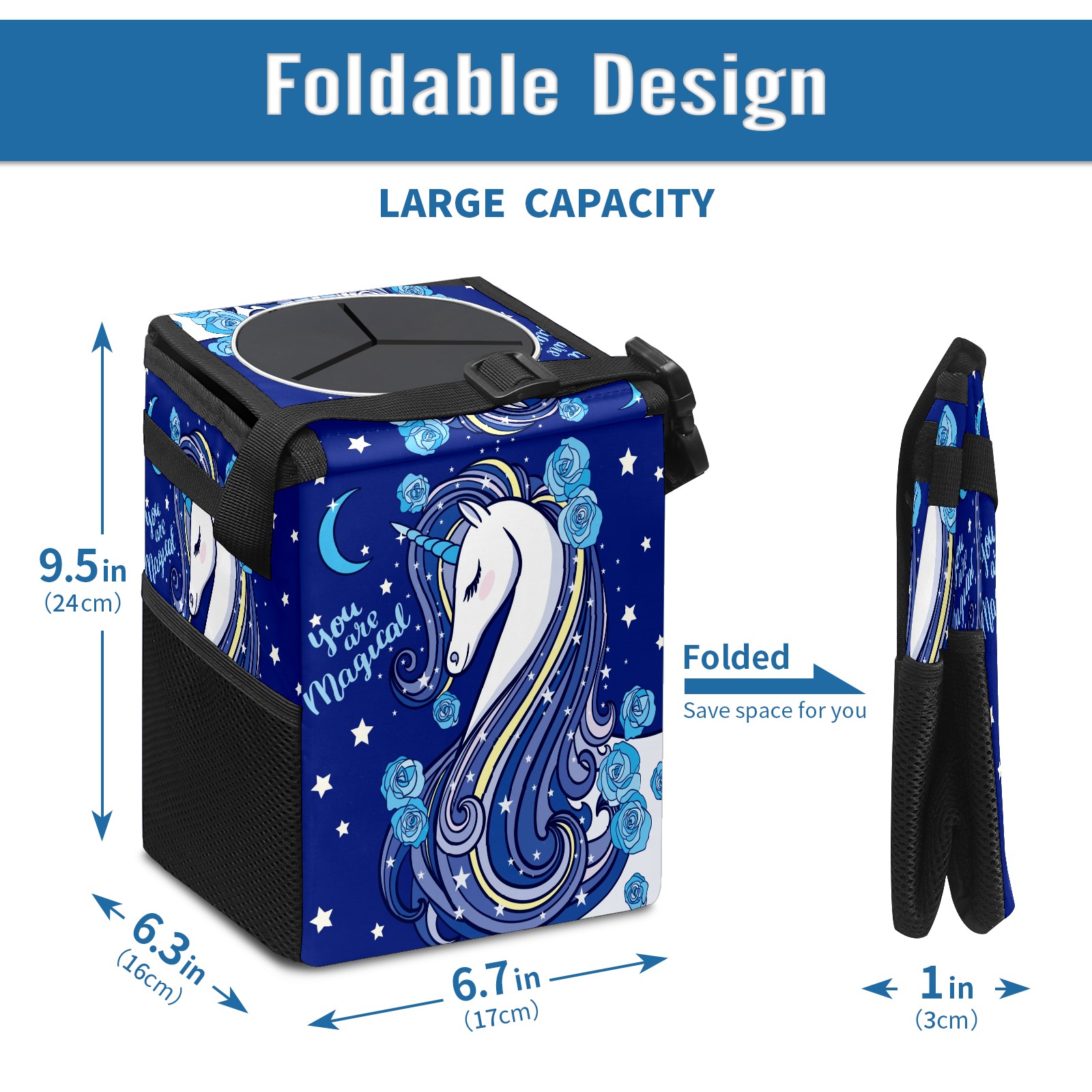 Car Garbage Can — Multi-functional, Lightweight Portable, Reusable Vehicle Trash Can, Waterproof with Sufficient Storage Capacity Blue Rose Unicorn