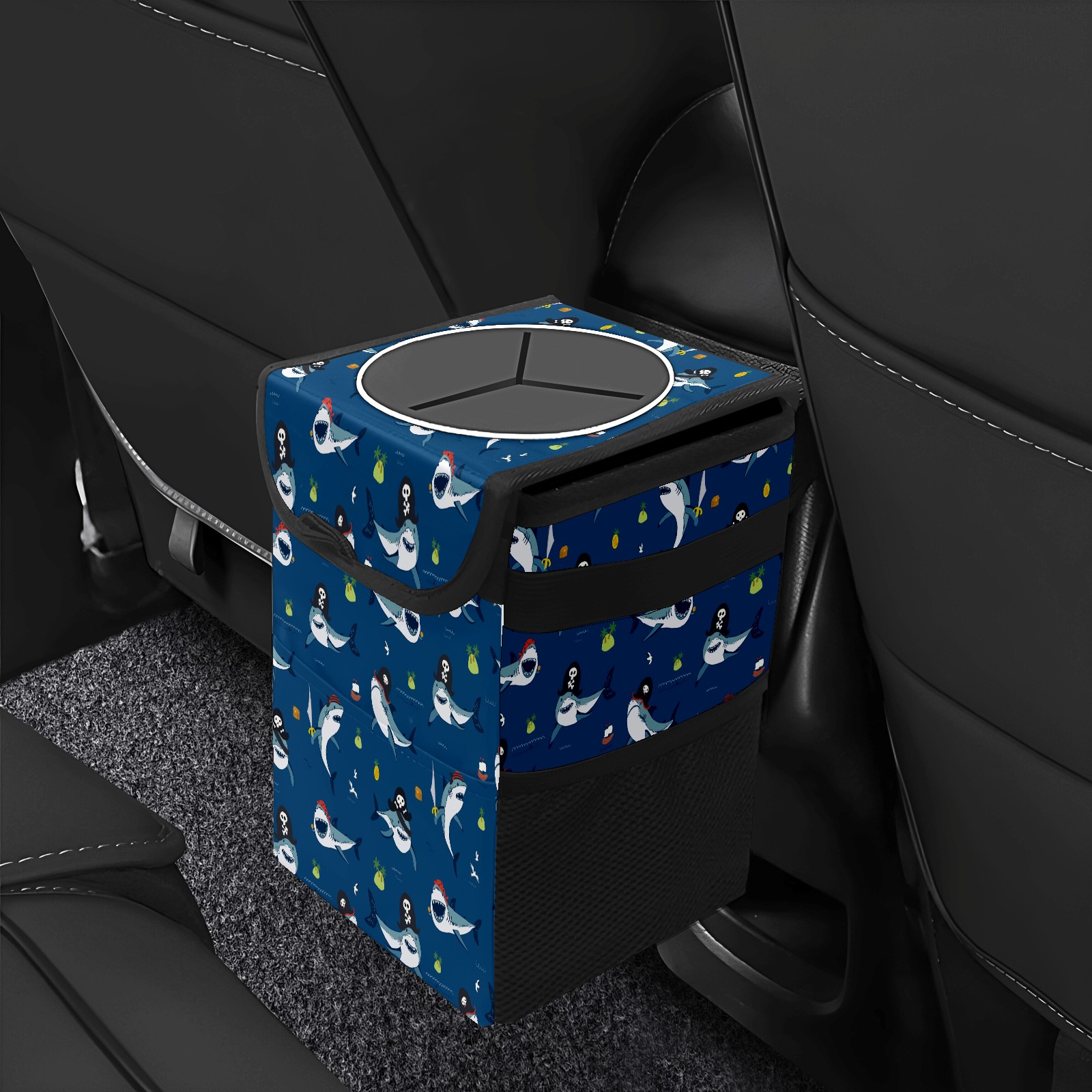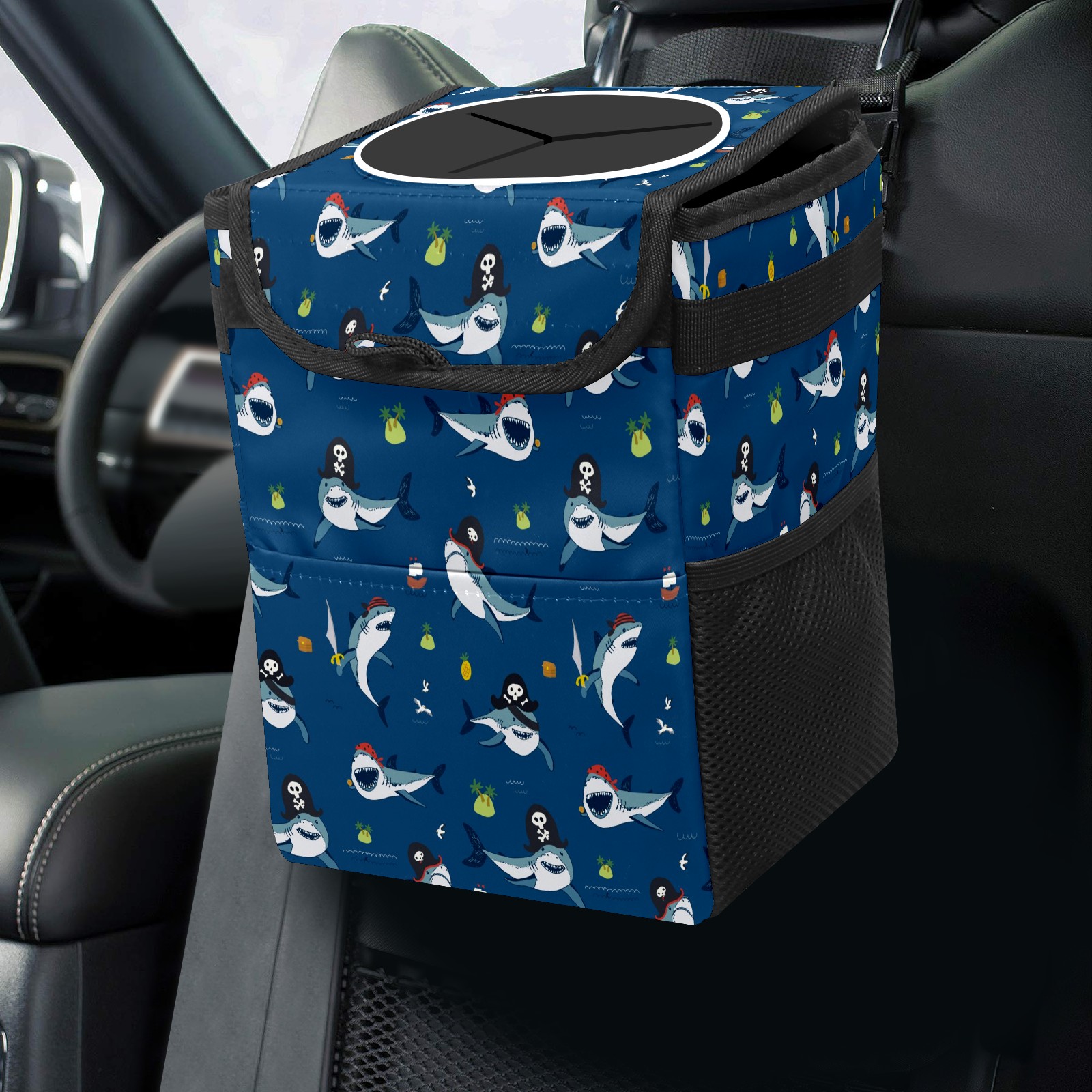 Car Garbage Can — Multi-functional, Lightweight Portable, Reusable Vehicle Trash Can, Waterproof with Sufficient Storage Capacity Pirate Shark Coco