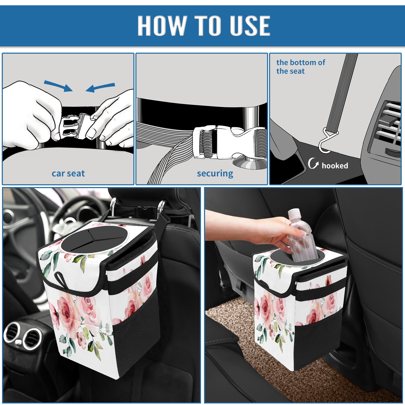 • <p>Keep your car neat with this practical car trash can—built for durability, versatility, and on-the-go convenience! Crafted from quality twill fabric with a waterproof lining, it prevents leaks, keeping seats/floors clean. Clean easily: empty directly or secure a disposable bag with side clips. Adjustable pull cord fits floor, seat, or headrest. 9.5x6.3x6.7 inches, ample space for daily trash, folds flat for storage. More than a trash can, it doubles as a storage bag for cups, toys, docs, and small gadgets—must-have car interior accessory. Installs in seconds on seats, console, or gear shift; adjustable straps keep it stable, no slipping on bumpy roads. Perfect gift for new car owners!</p>
