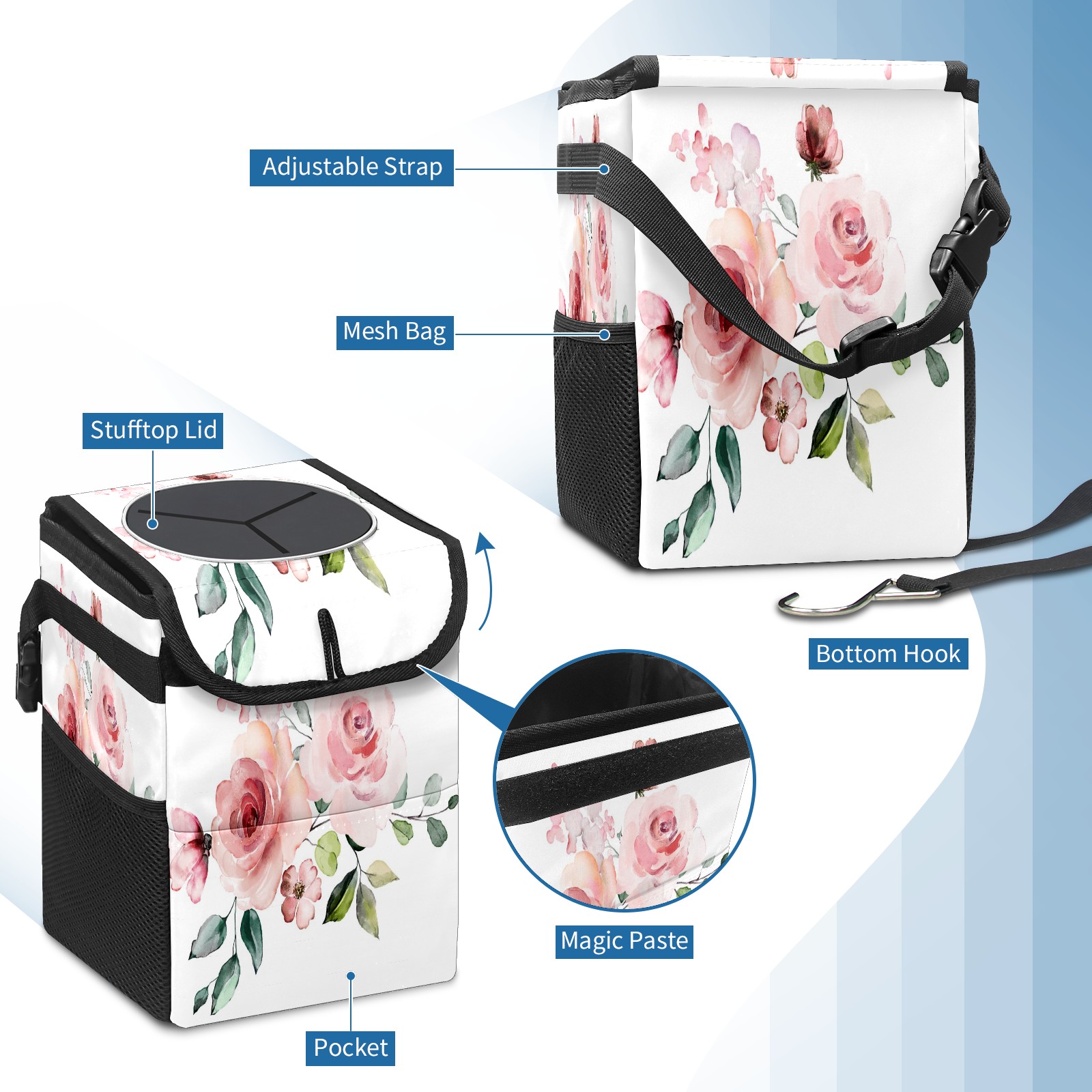 Car Garbage Can — Multi-functional, Lightweight Portable, Reusable Vehicle Trash Can, Waterproof with Sufficient Storage Capacity Red White Snake And Flower