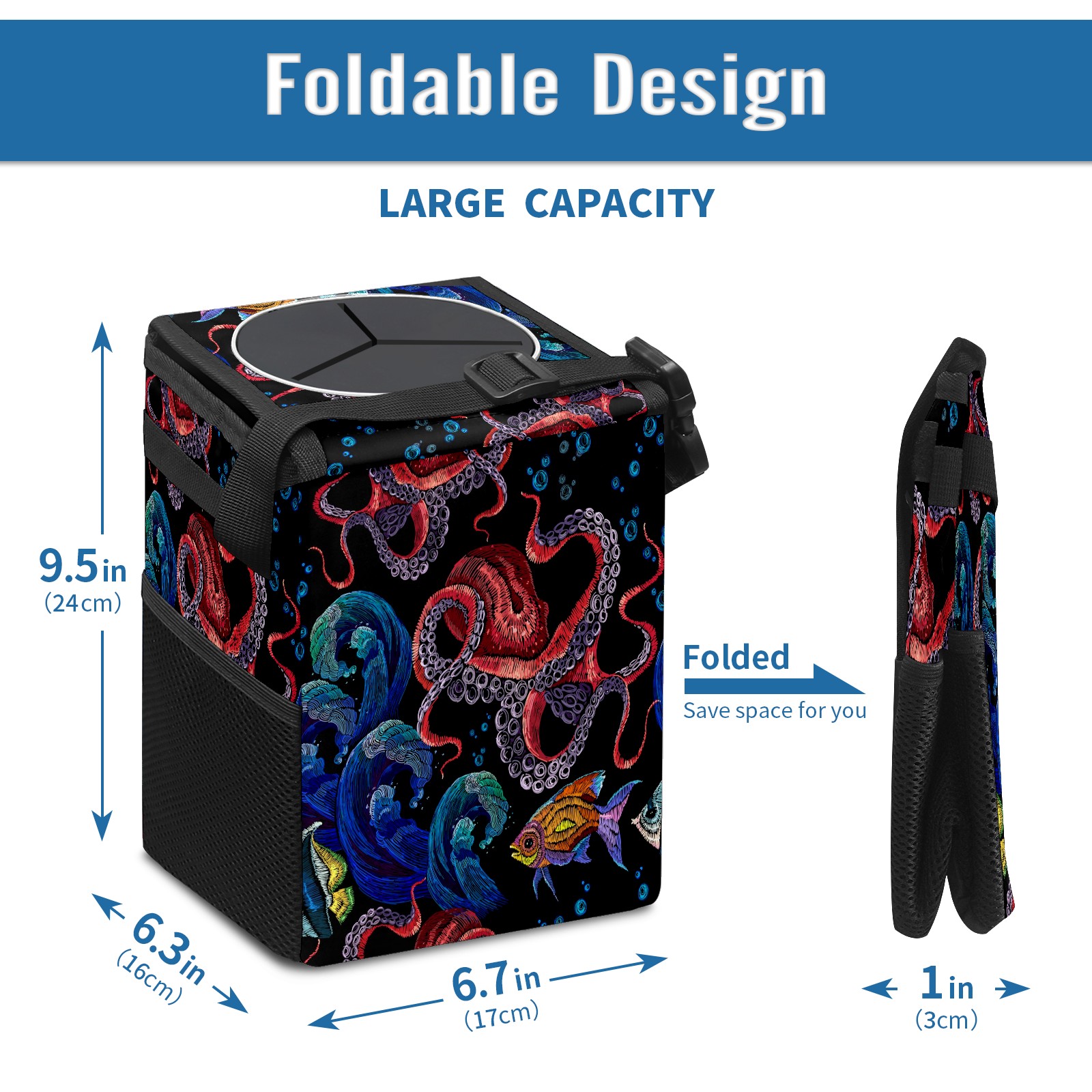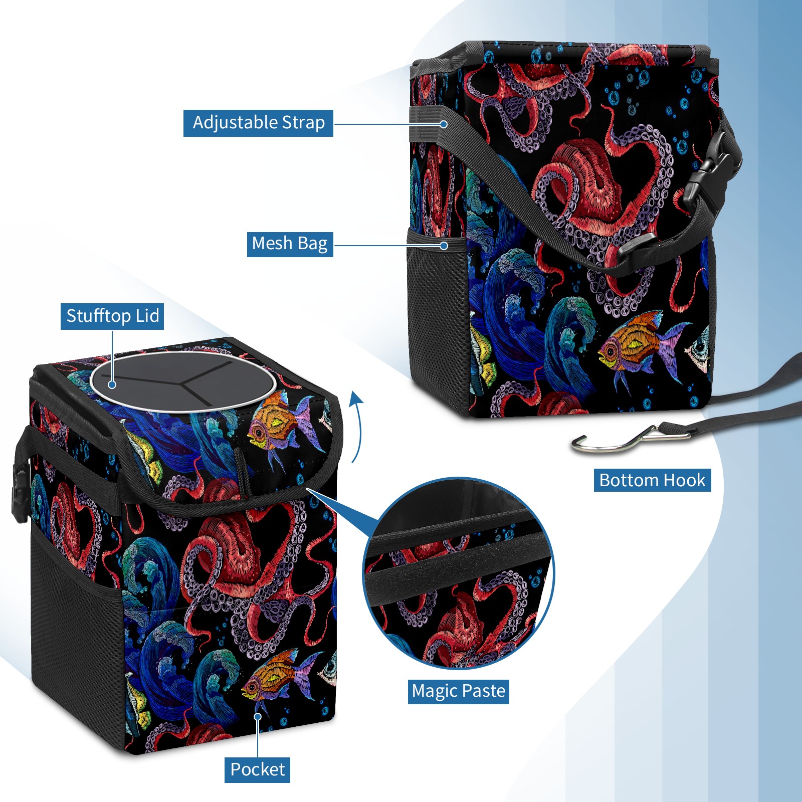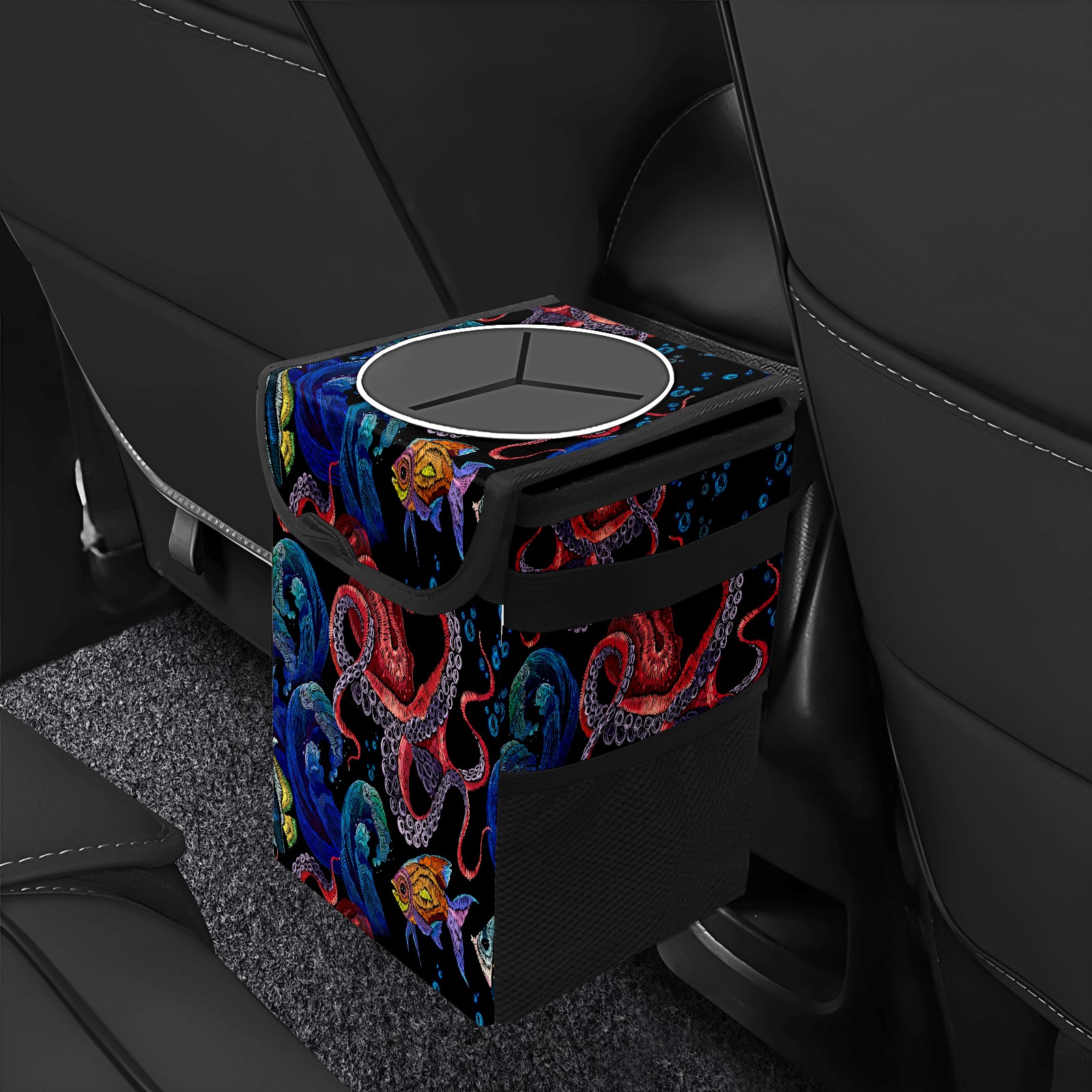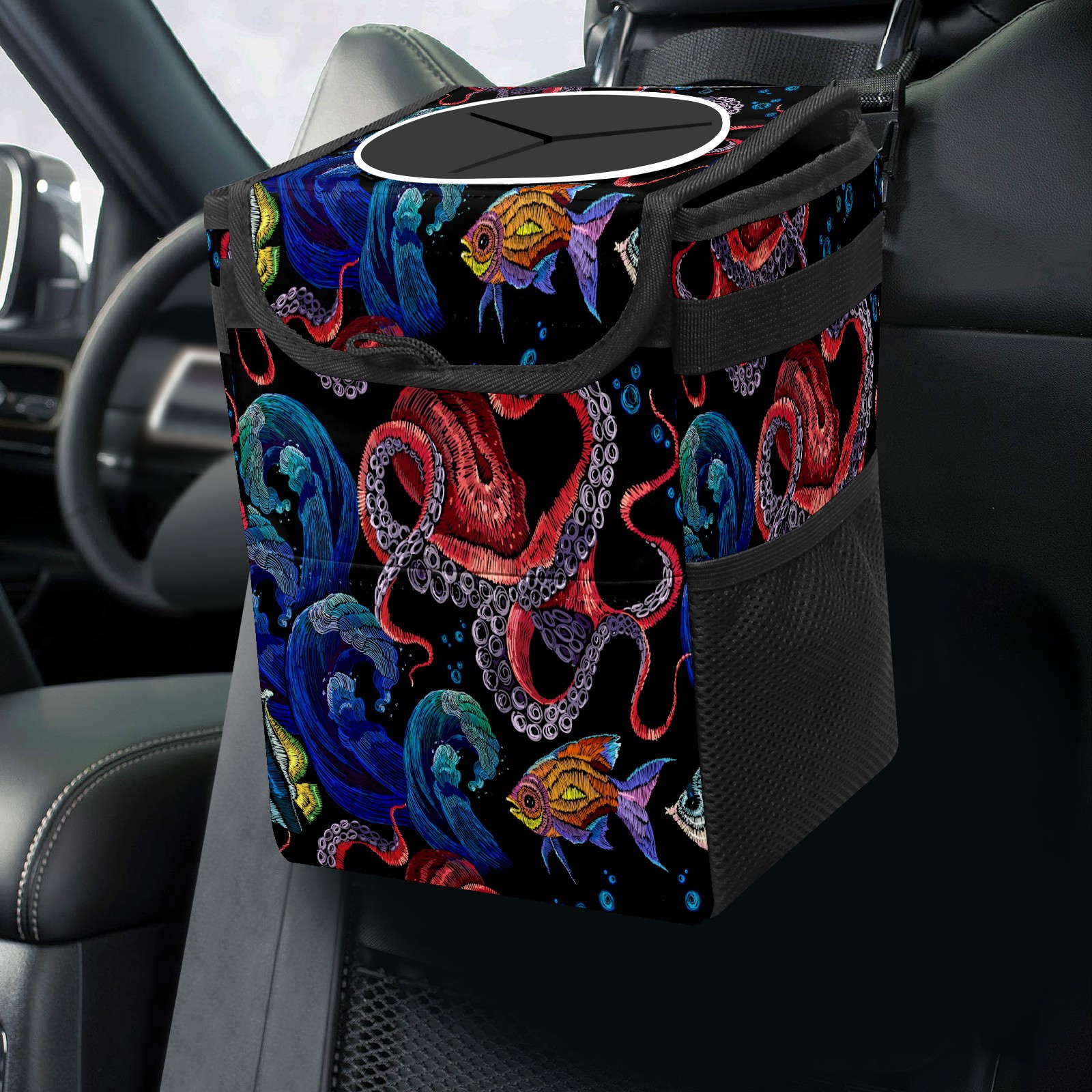 Car Garbage Can — Multi-functional, Lightweight Portable, Reusable Vehicle Trash Can, Waterproof with Sufficient Storage Capacity Abstract Fish And Octopus