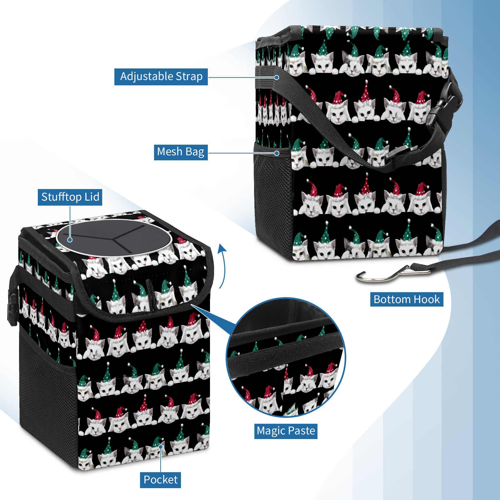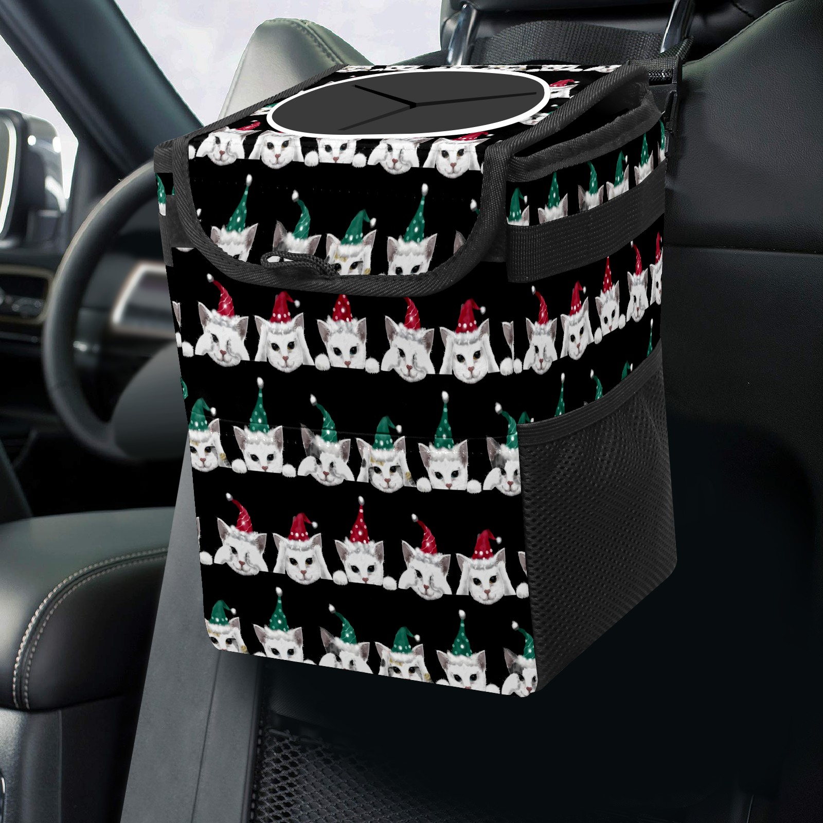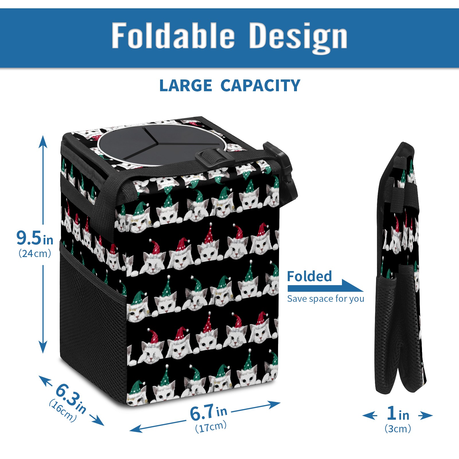Car Garbage Can — Multi-functional, Lightweight Portable, Reusable Vehicle Trash Can, Waterproof with Sufficient Storage Capacity Santa Cats