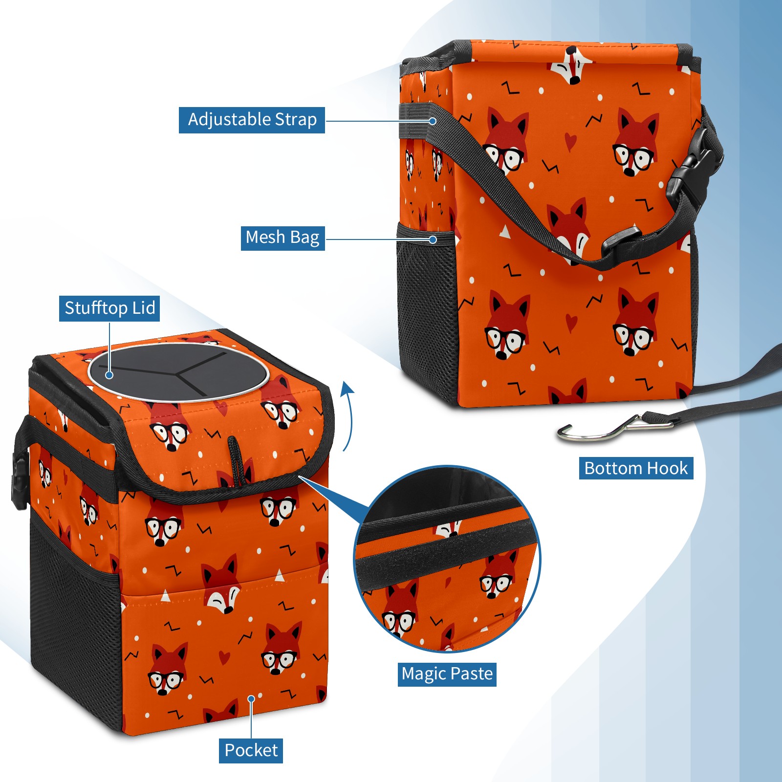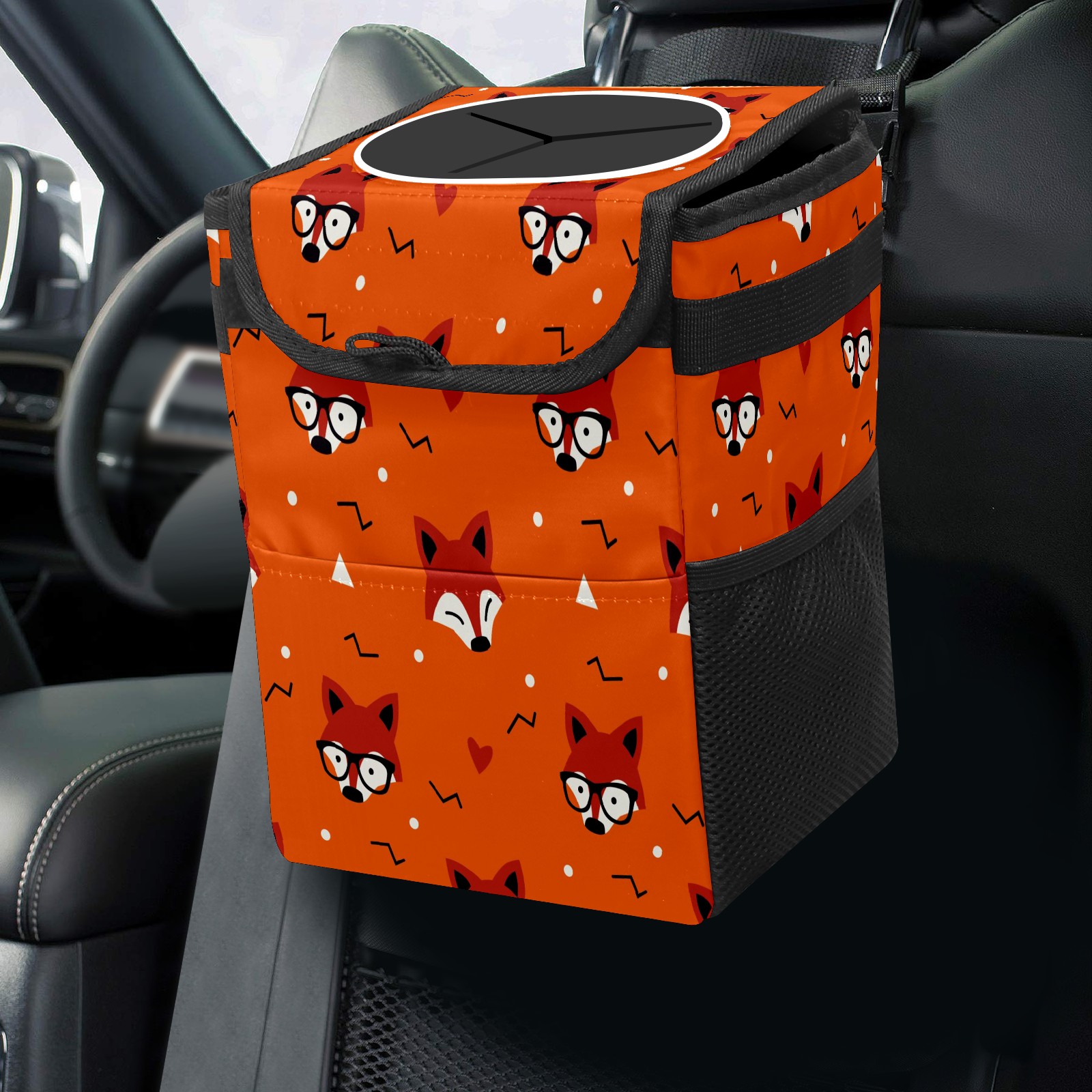 Car Garbage Can — Multi-functional, Lightweight Portable, Reusable Vehicle Trash Can, Waterproof with Sufficient Storage Capacity Orange Fox And Heart
