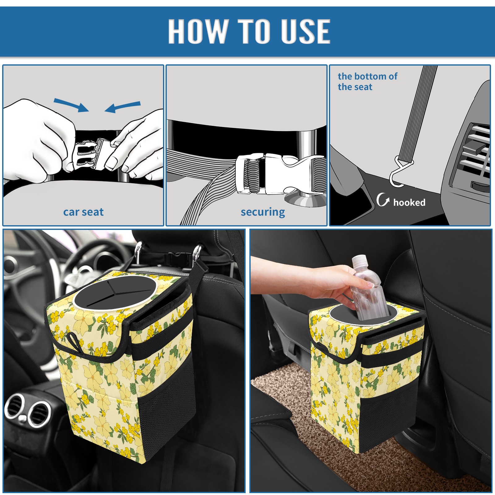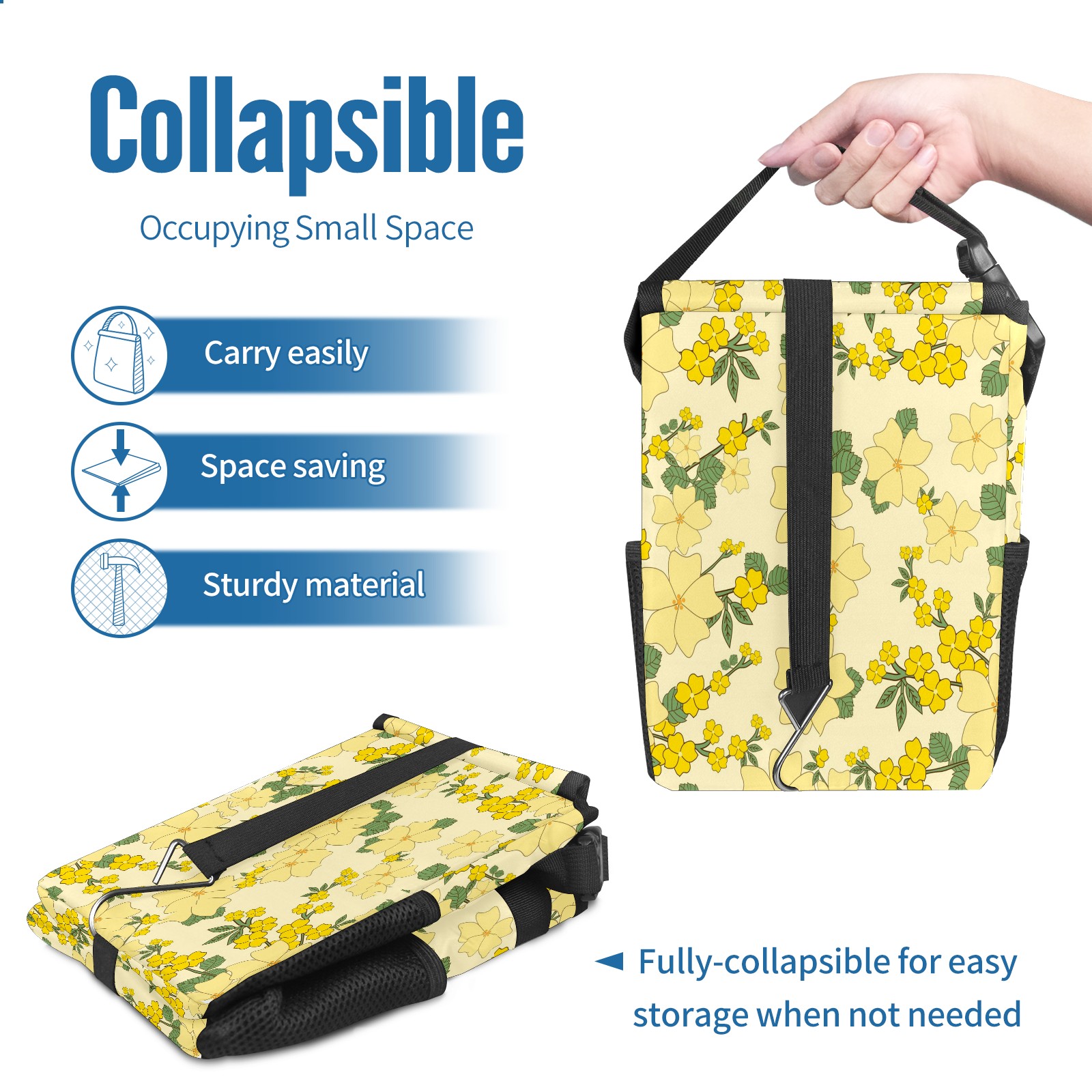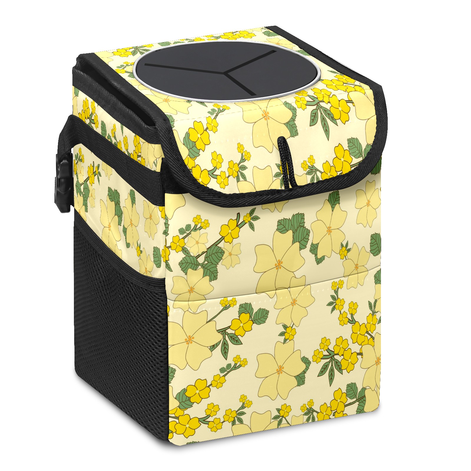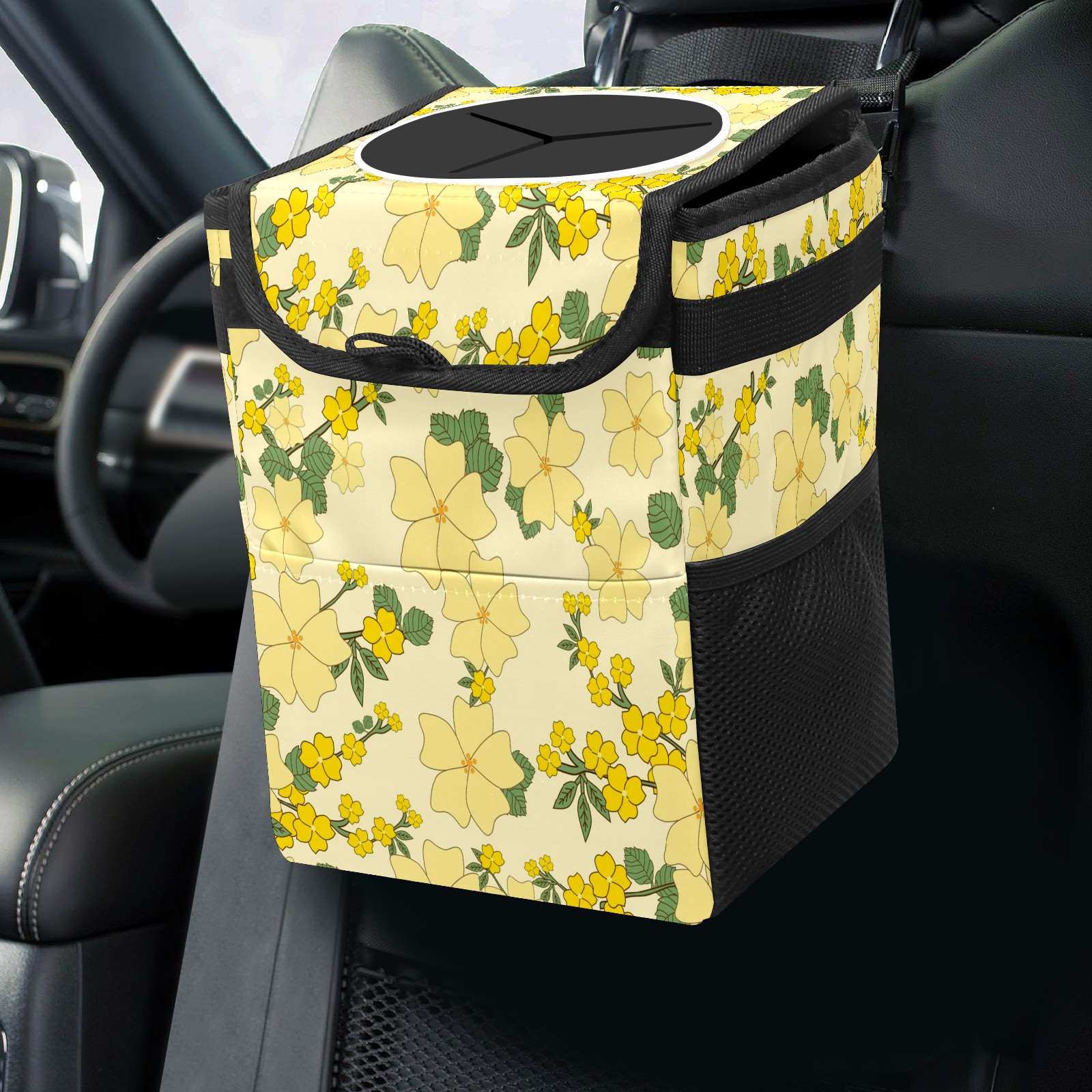 Car Garbage Can — Multi-functional, Lightweight Portable, Reusable Vehicle Trash Can, Waterproof with Sufficient Storage Capacity Yellow Wild Flower