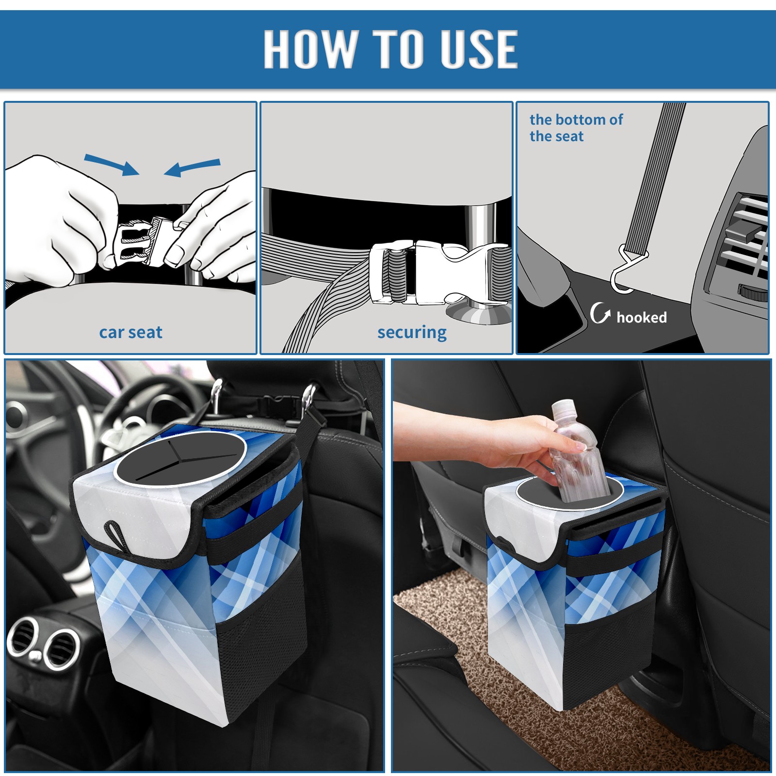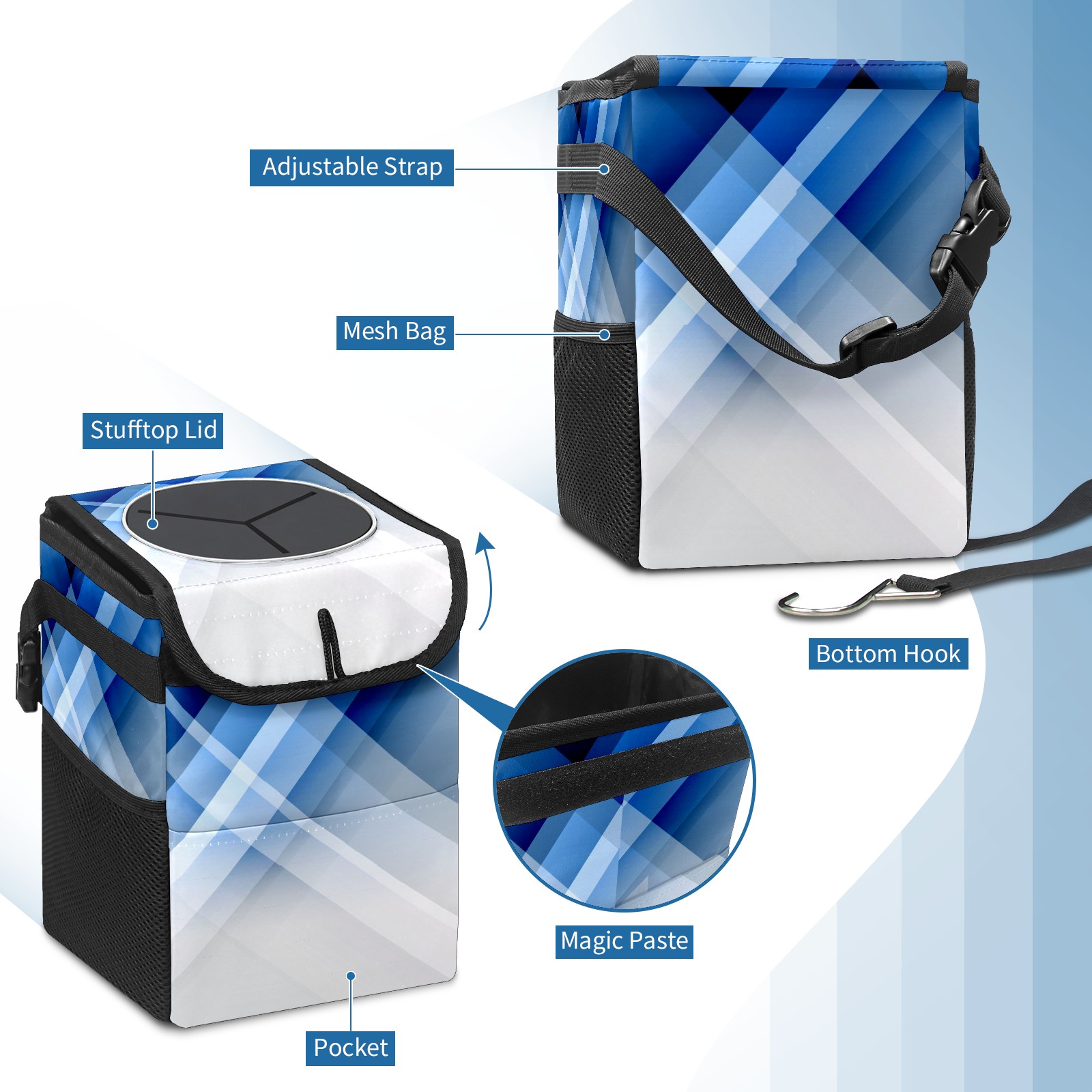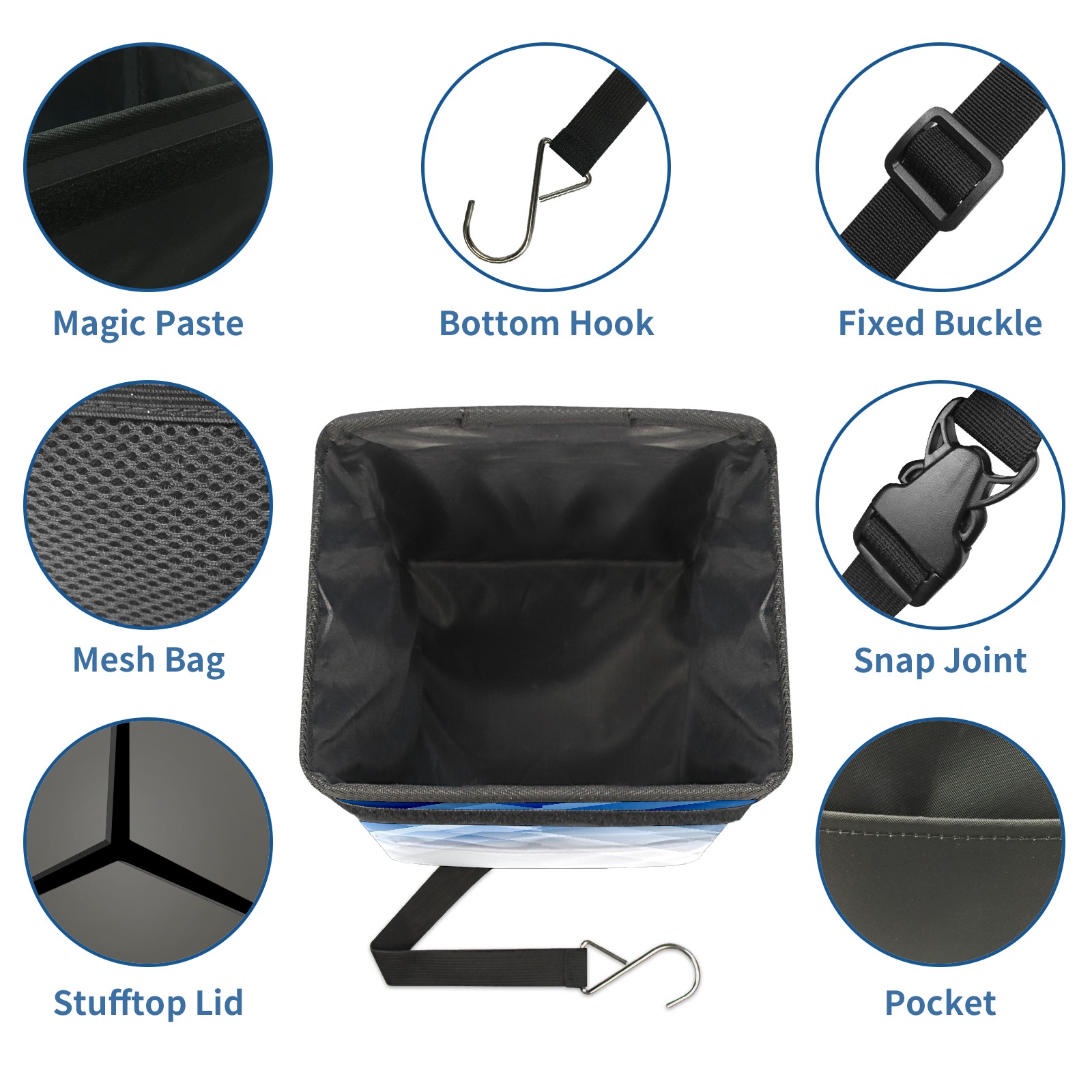 Car Garbage Can — Multi-functional, Lightweight Portable, Reusable Vehicle Trash Can, Waterproof with Sufficient Storage Capacity Blue Digital Graphics