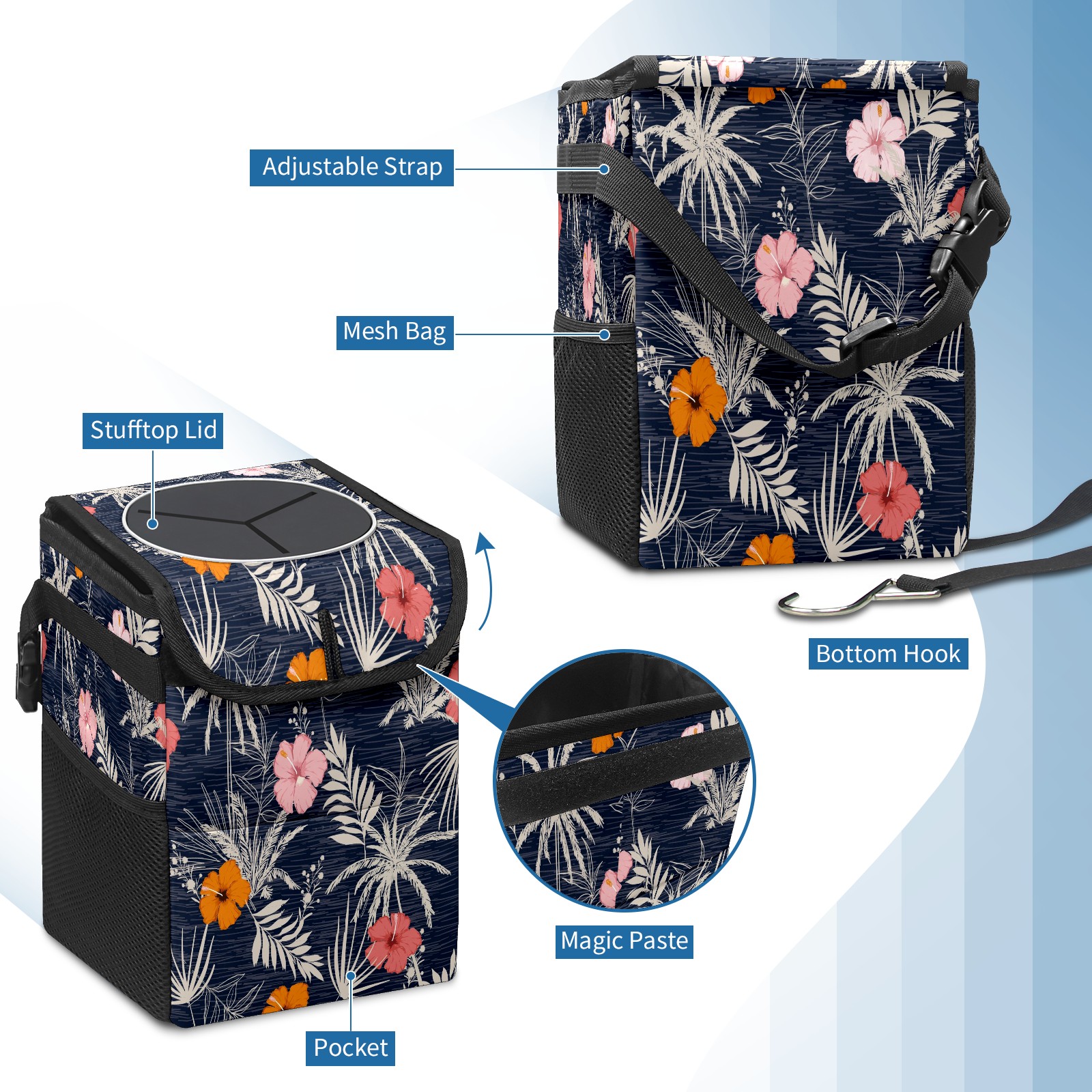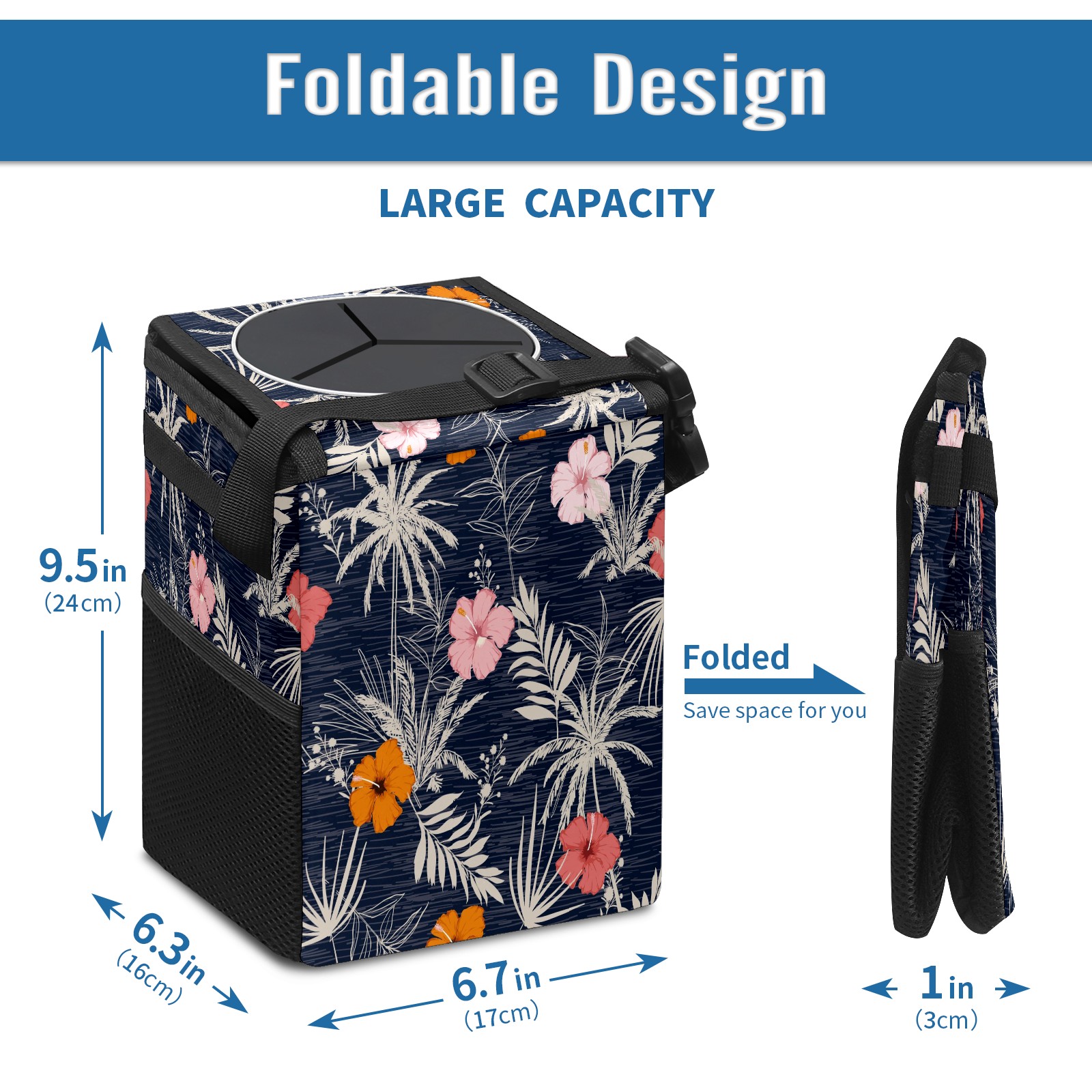 • <p>Keep your car neat with this practical car trash can—built for durability, versatility, and on-the-go convenience! Crafted from quality twill fabric with a waterproof lining, it prevents leaks, keeping seats/floors clean. Clean easily: empty directly or secure a disposable bag with side clips. Adjustable pull cord fits floor, seat, or headrest. 9.5x6.3x6.7 inches, ample space for daily trash, folds flat for storage. More than a trash can, it doubles as a storage bag for cups, toys, docs, and small gadgets—must-have car interior accessory. Installs in seconds on seats, console, or gear shift; adjustable straps keep it stable, no slipping on bumpy roads. Perfect gift for new car owners!</p>