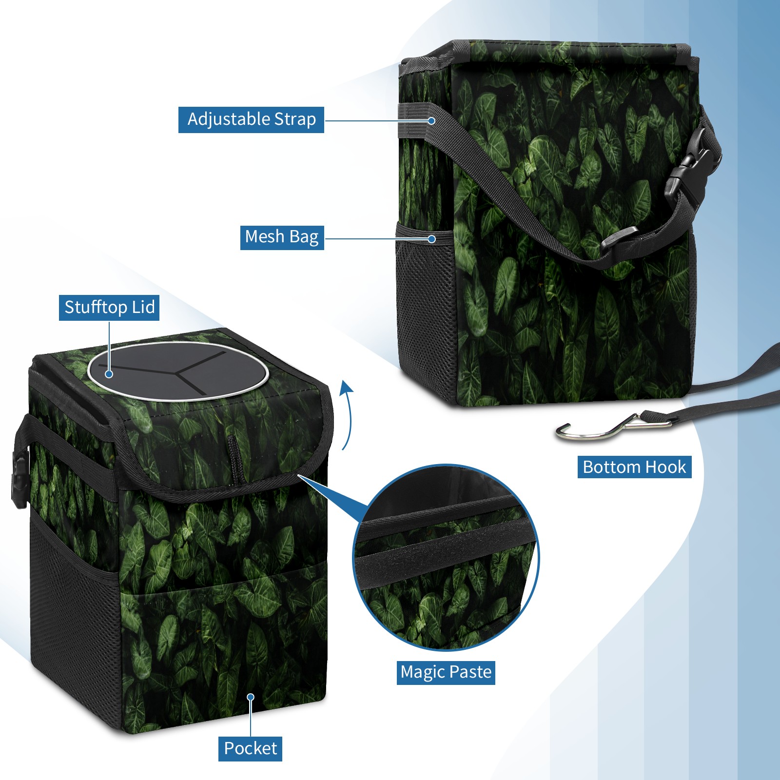 Car Garbage Can — Multi-functional, Lightweight Portable, Reusable Vehicle Trash Can, Waterproof with Sufficient Storage Capacity Green Leaves