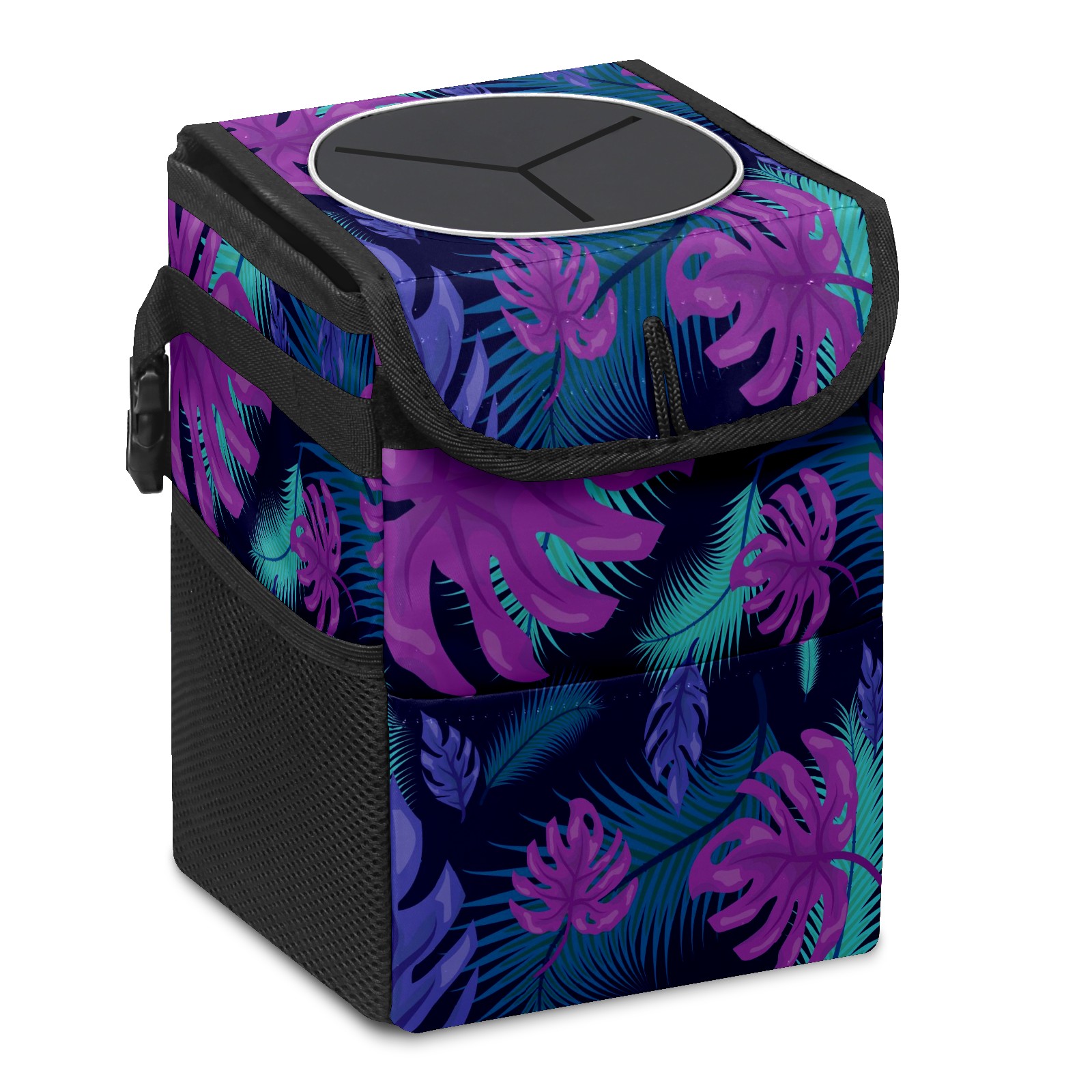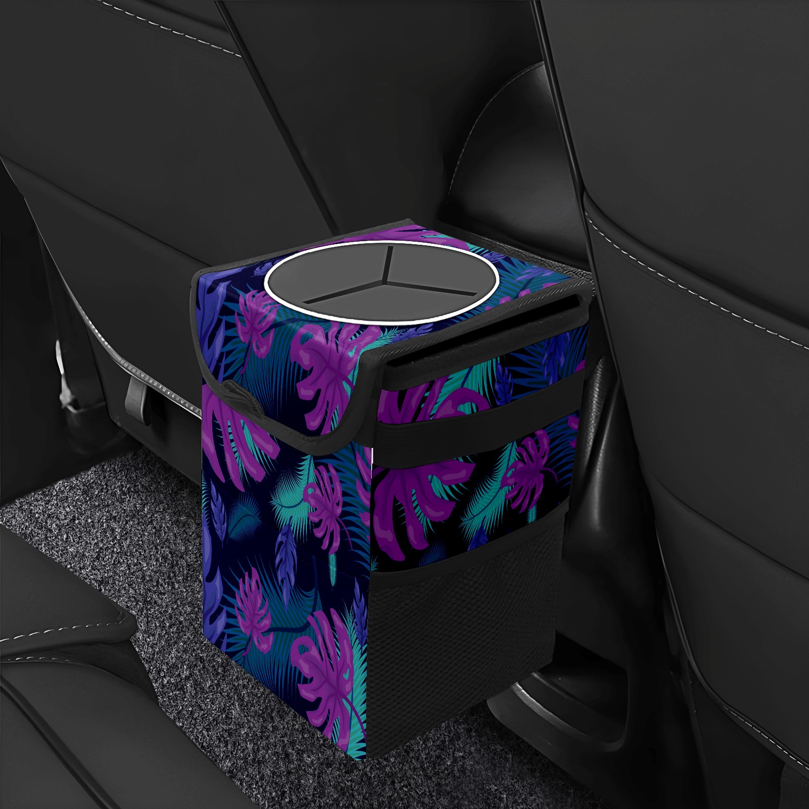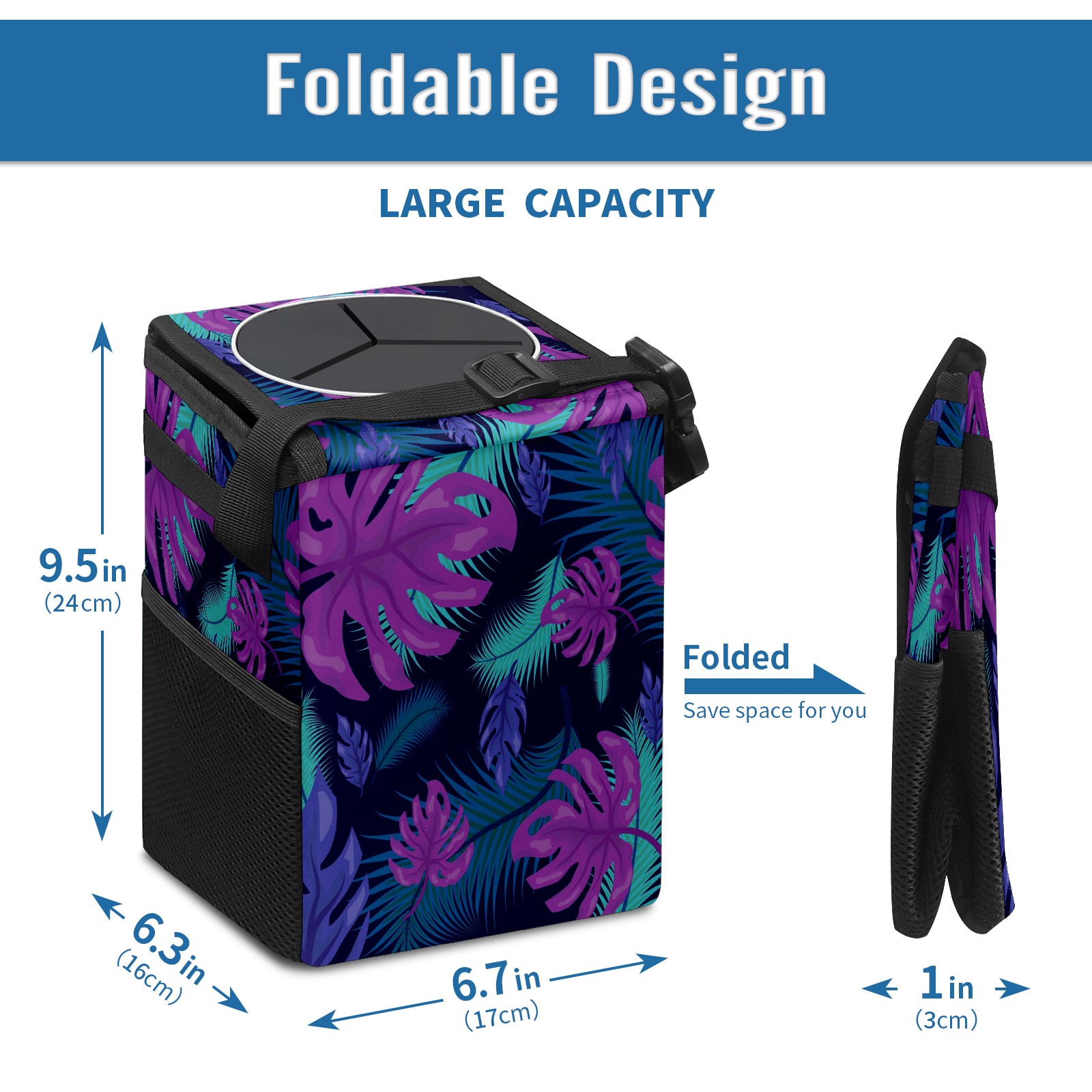 Car Garbage Can — Multi-functional, Lightweight Portable, Reusable Vehicle Trash Can, Waterproof with Sufficient Storage Capacity Tropical Leaves Dark Color Print
