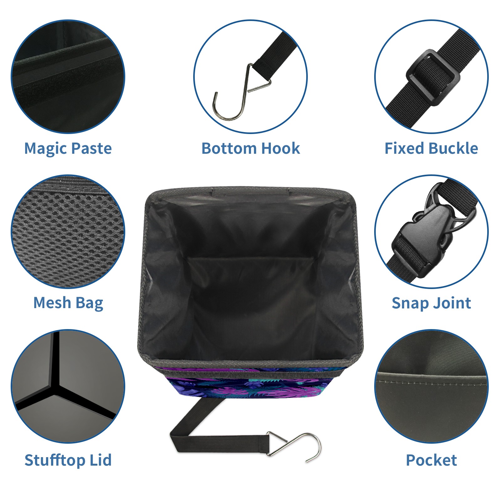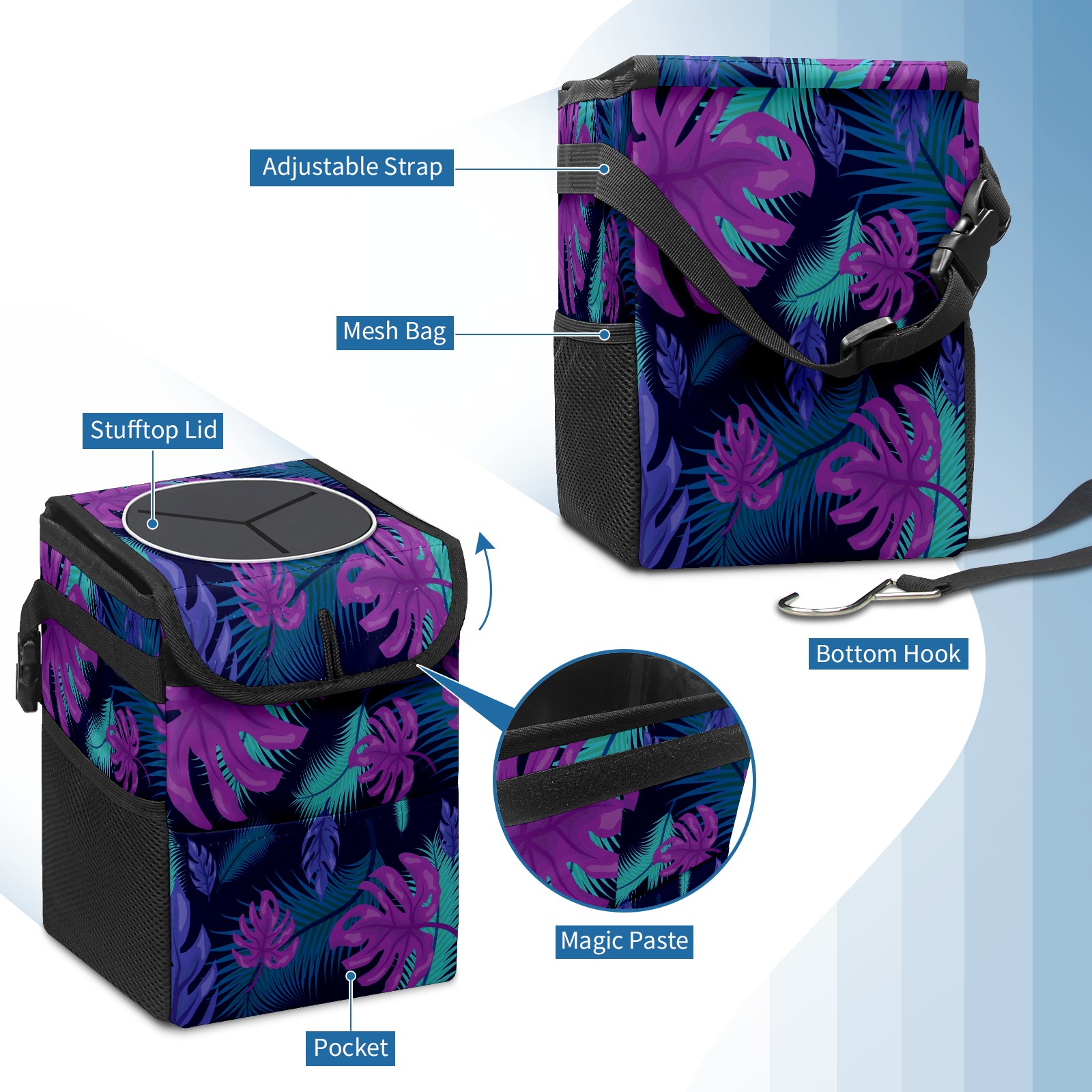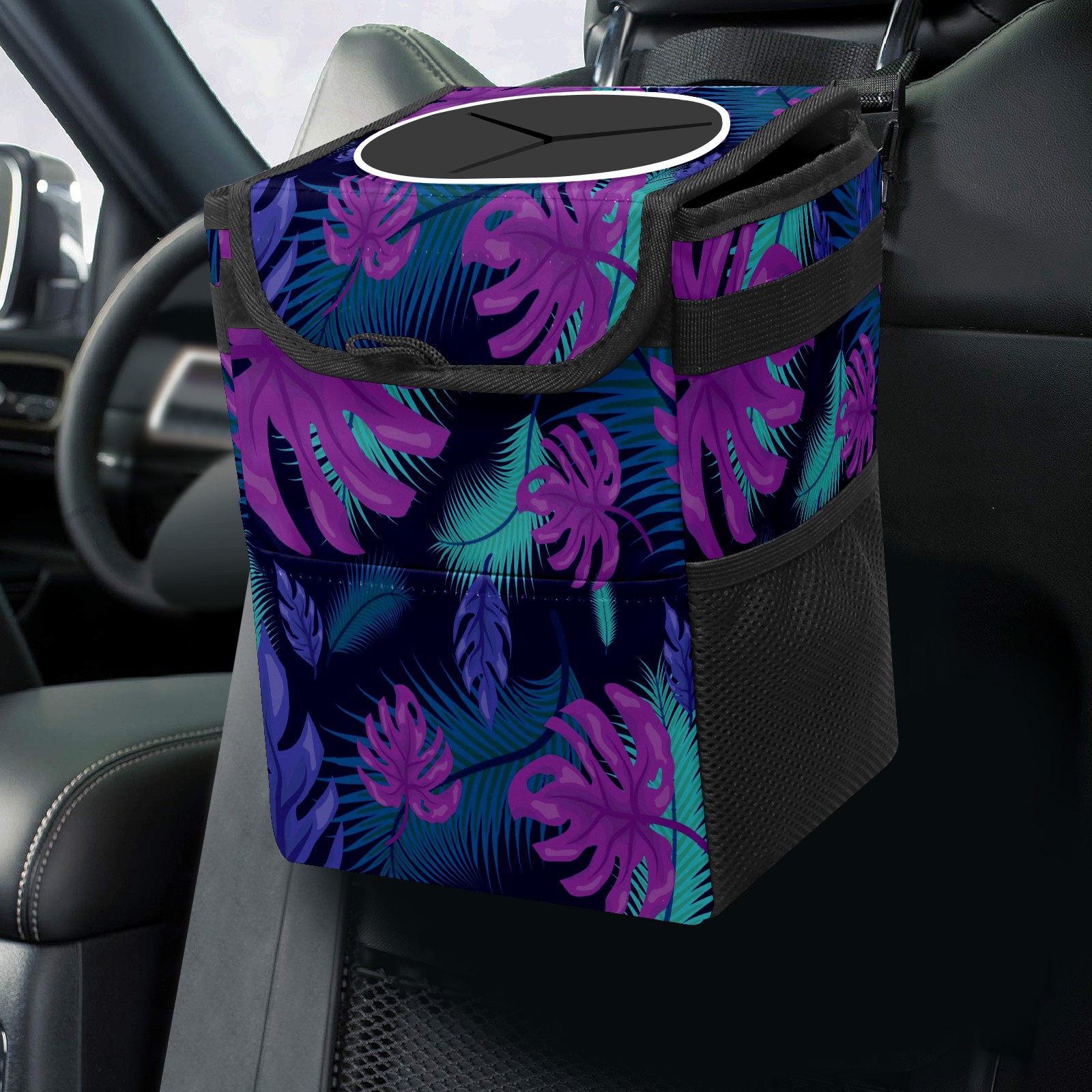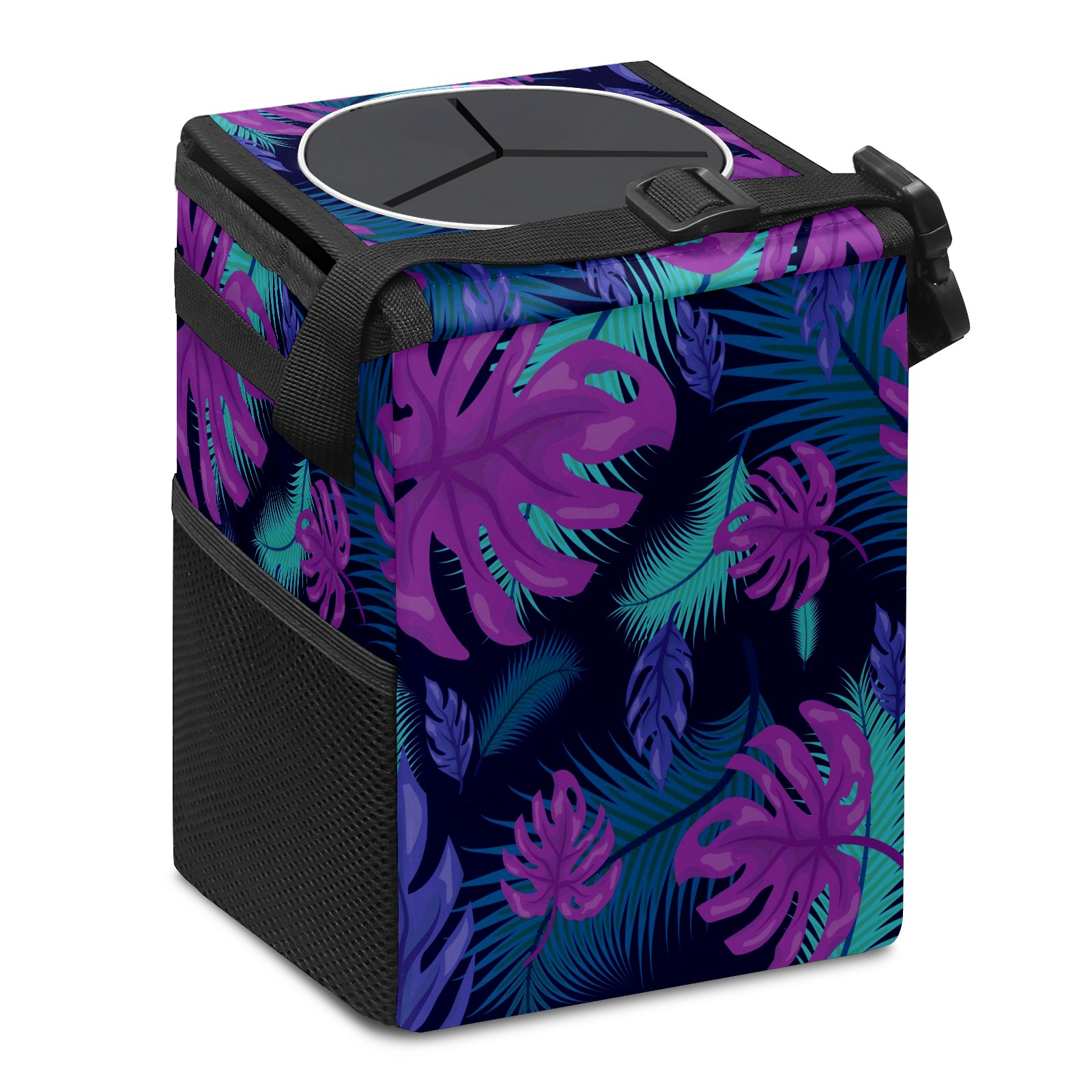 Car Garbage Can — Multi-functional, Lightweight Portable, Reusable Vehicle Trash Can, Waterproof with Sufficient Storage Capacity Tropical Leaves Dark Color Print