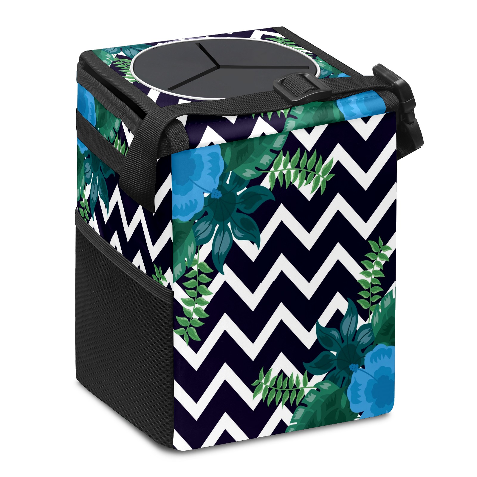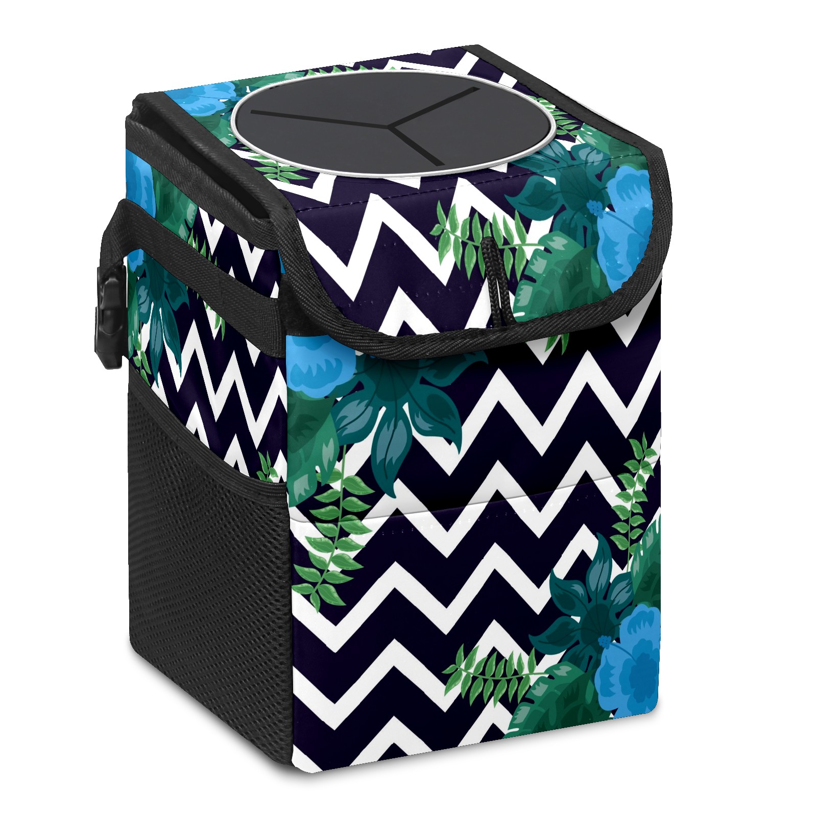 Car Garbage Can — Multi-functional, Lightweight Portable, Reusable Vehicle Trash Can, Waterproof with Sufficient Storage Capacity Tropical Leaves Stripe Dark Pattern