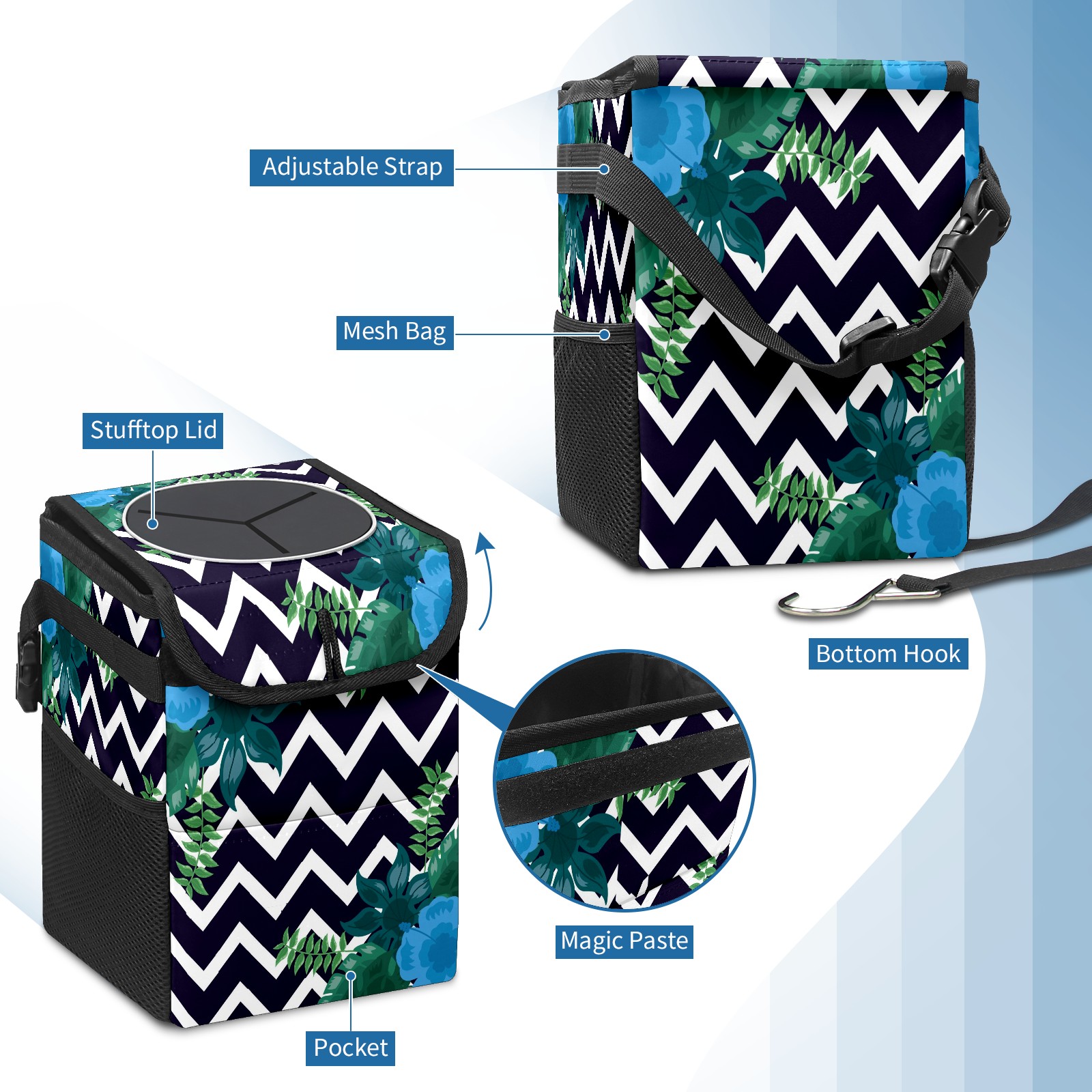 • <p>Keep your car neat with this practical car trash can—built for durability, versatility, and on-the-go convenience! Crafted from quality twill fabric with a waterproof lining, it prevents leaks, keeping seats/floors clean. Clean easily: empty directly or secure a disposable bag with side clips. Adjustable pull cord fits floor, seat, or headrest. 9.5x6.3x6.7 inches, ample space for daily trash, folds flat for storage. More than a trash can, it doubles as a storage bag for cups, toys, docs, and small gadgets—must-have car interior accessory. Installs in seconds on seats, console, or gear shift; adjustable straps keep it stable, no slipping on bumpy roads. Perfect gift for new car owners!</p>