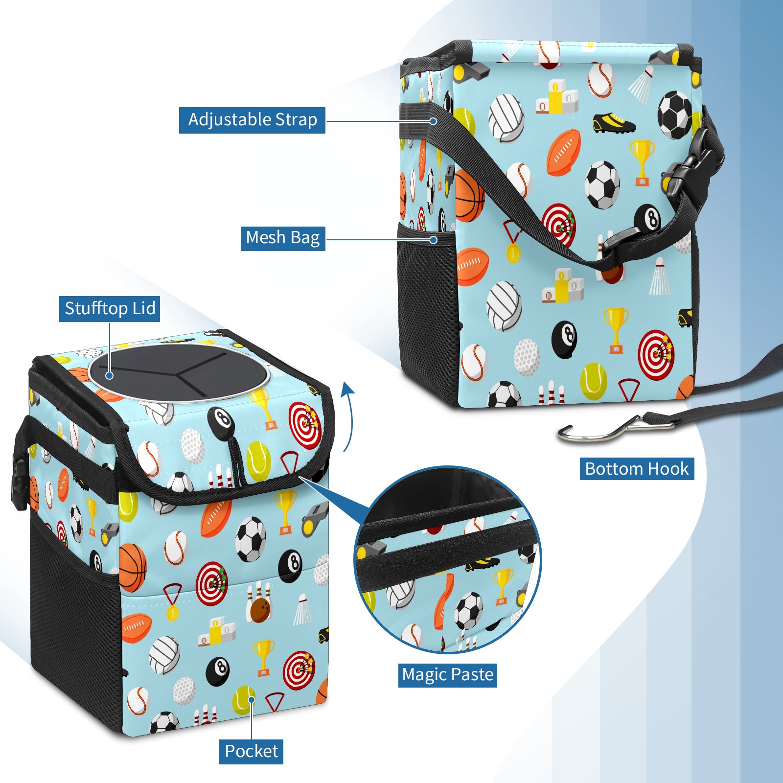 Car Garbage Can — Multi-functional, Lightweight Portable, Reusable Vehicle Trash Can, Waterproof with Sufficient Storage Capacity Sports Pattern Background