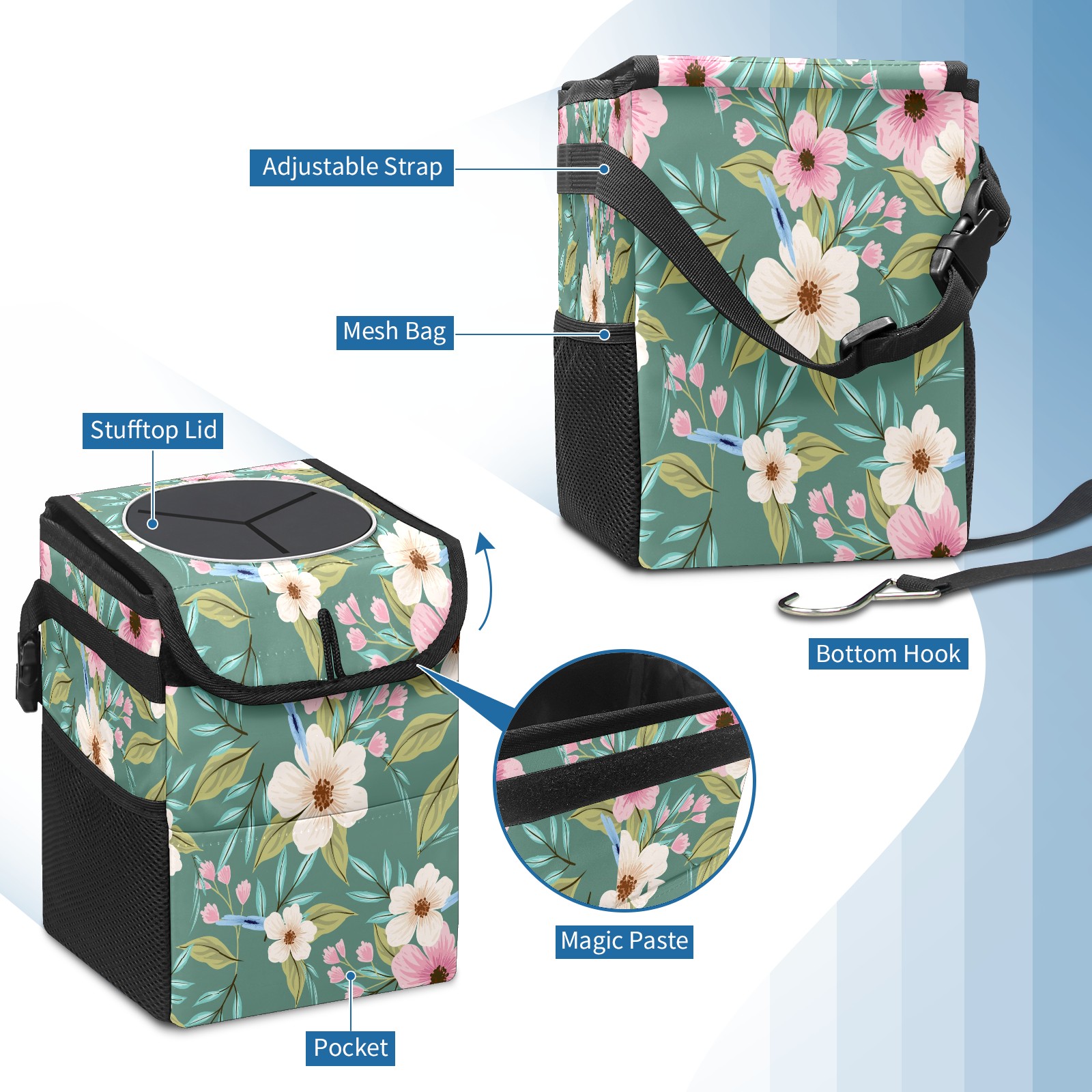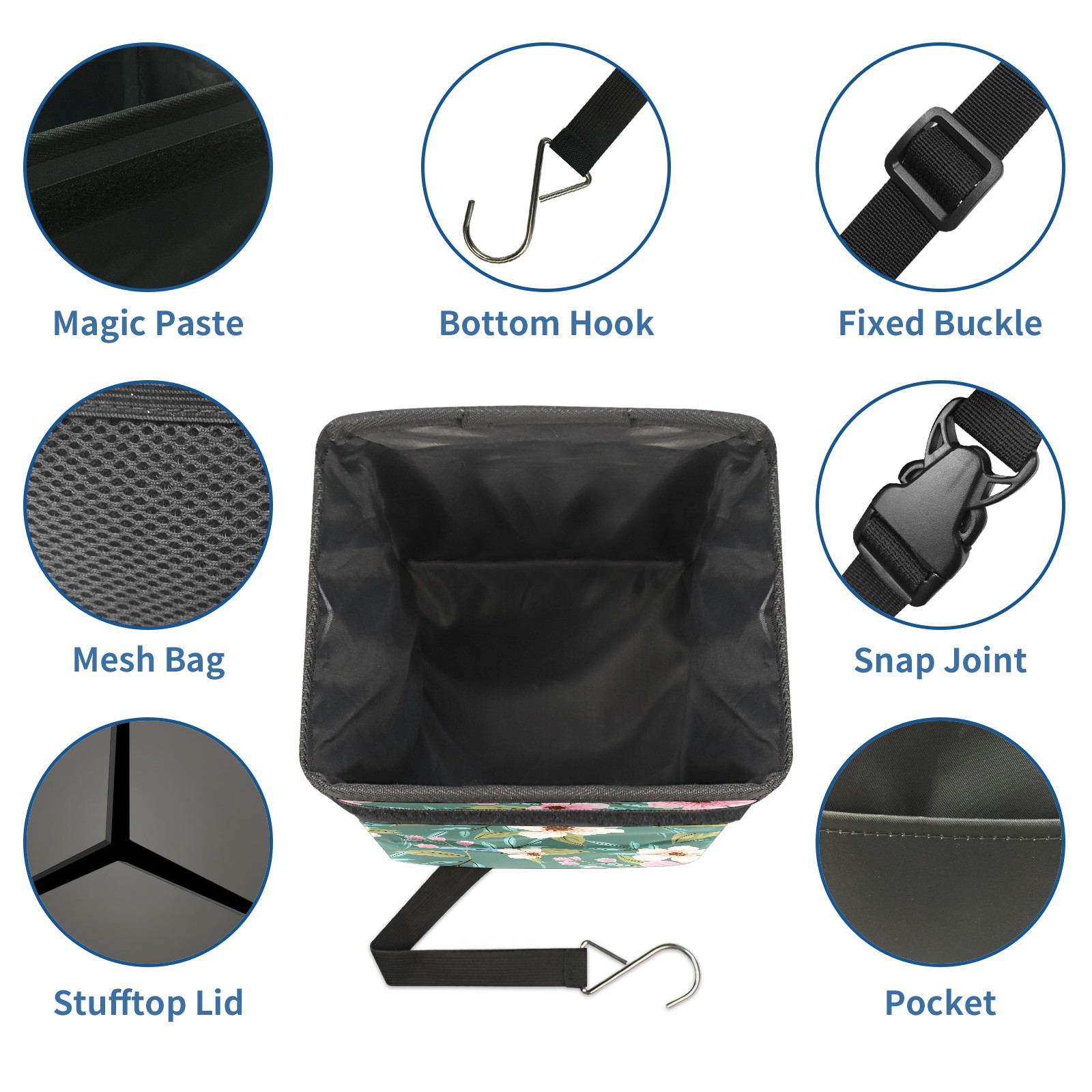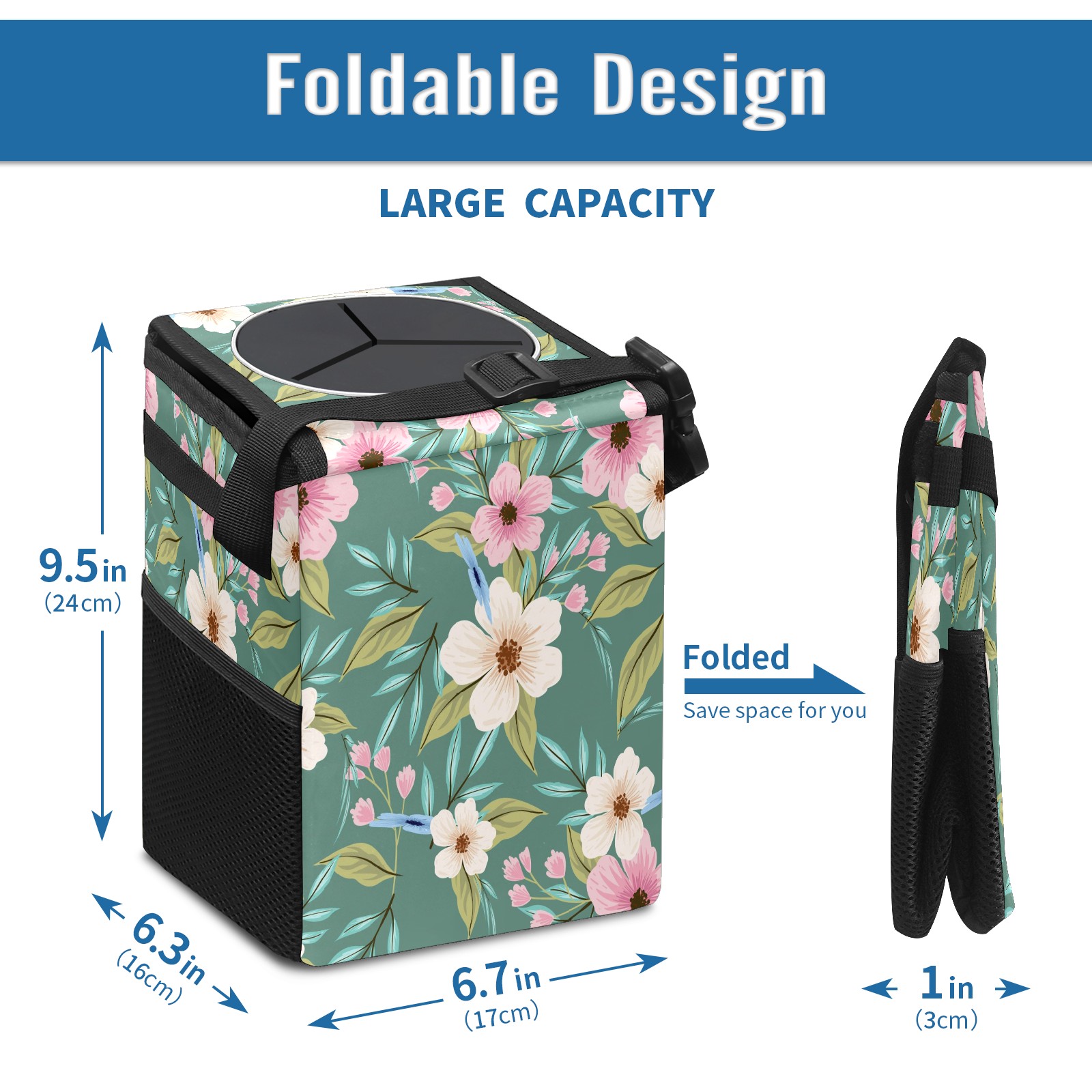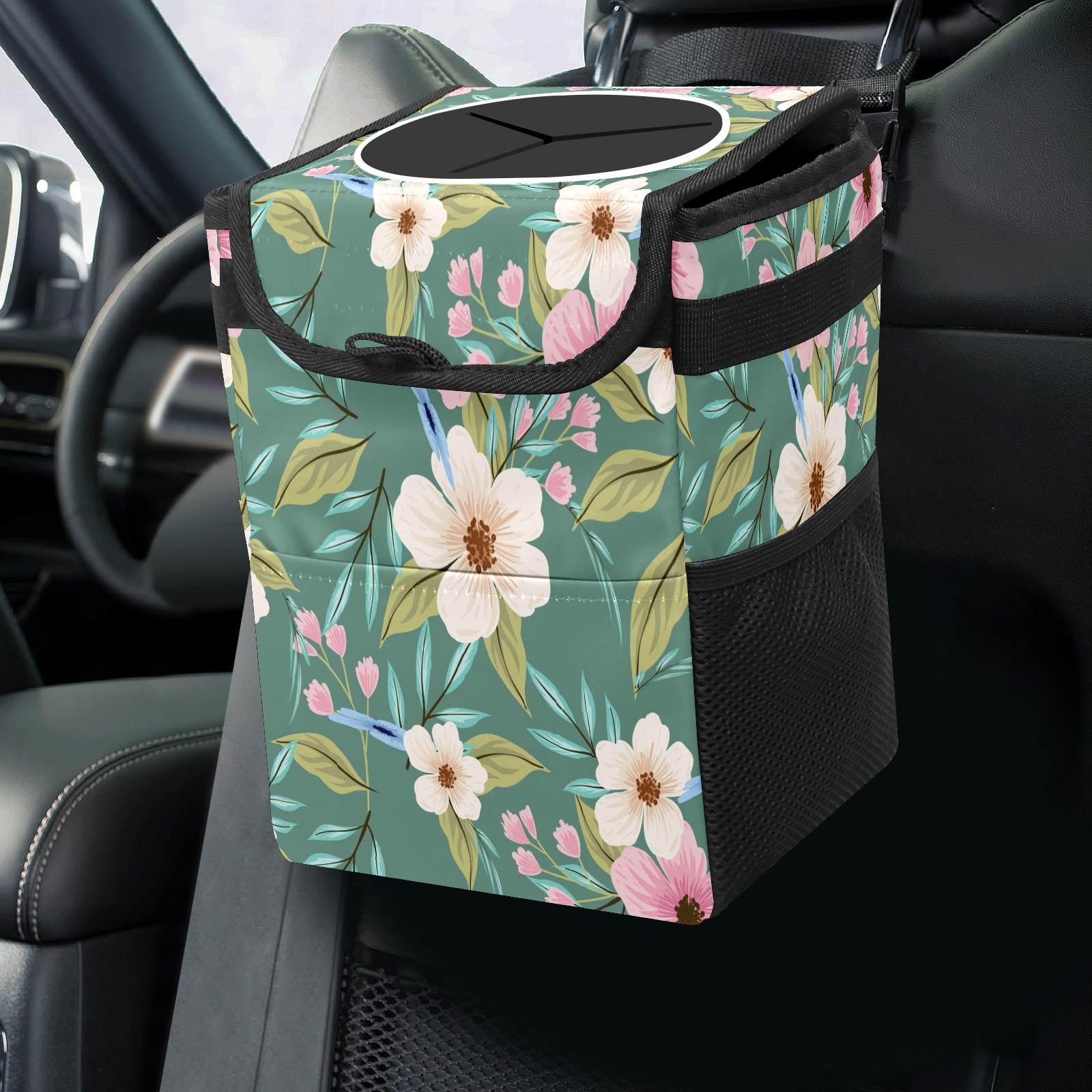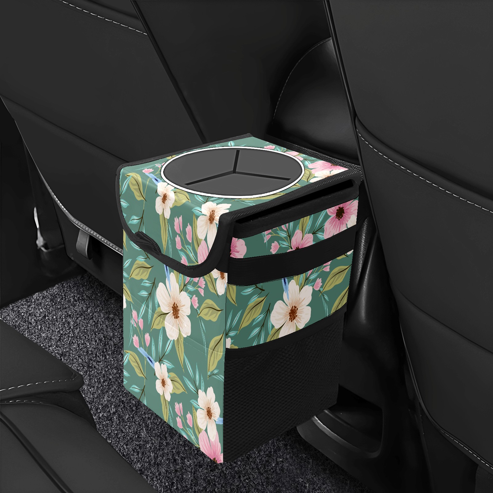 Car Garbage Can — Multi-functional, Lightweight Portable, Reusable Vehicle Trash Can, Waterproof with Sufficient Storage Capacity Natural Colorful Painted Flowers