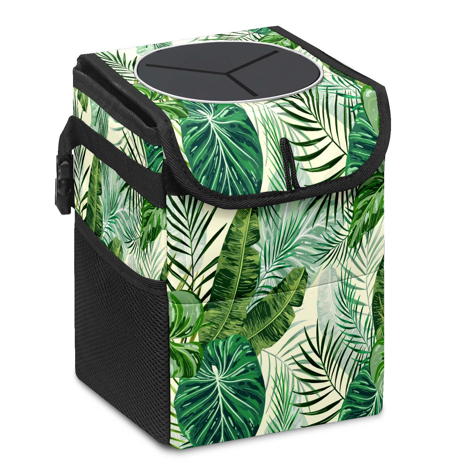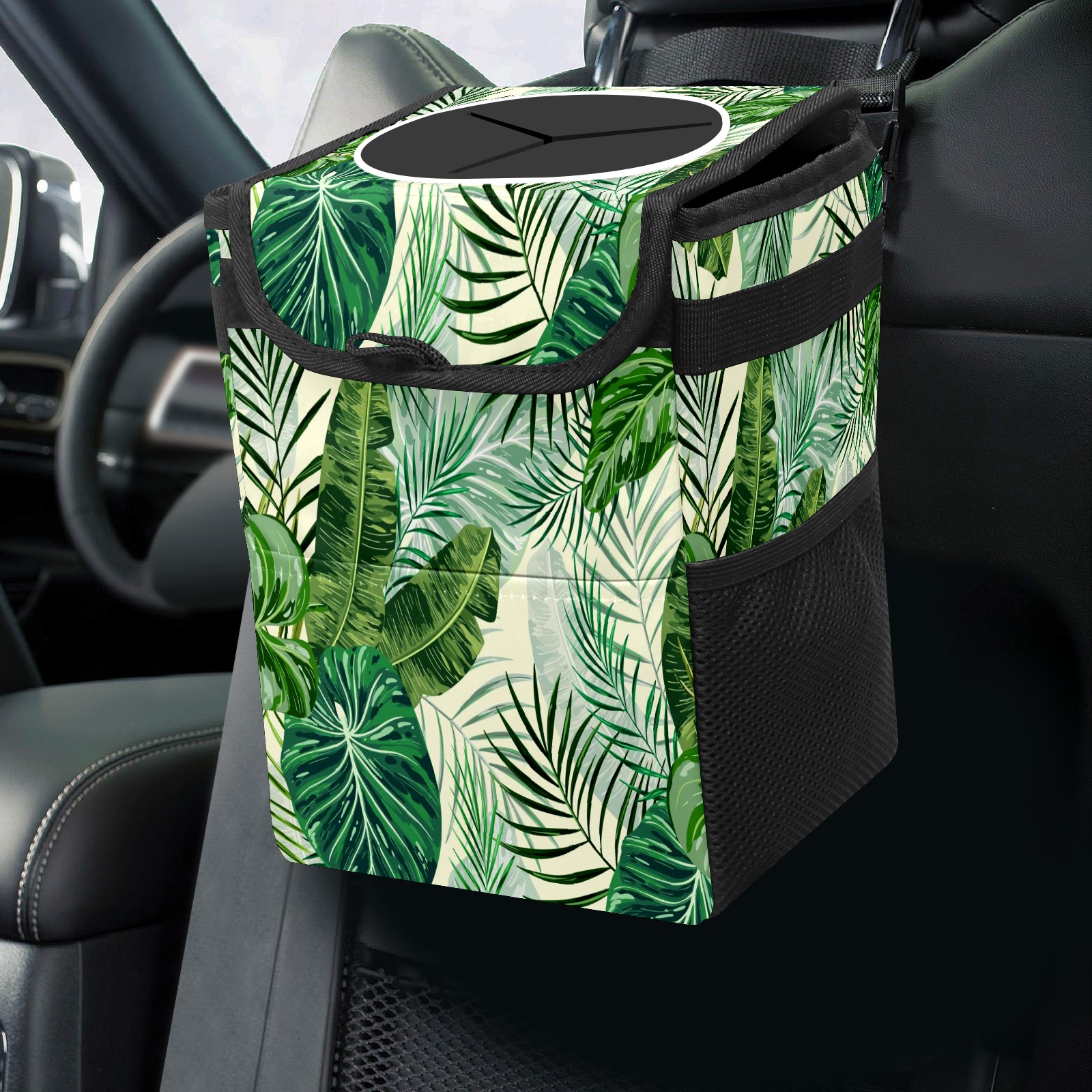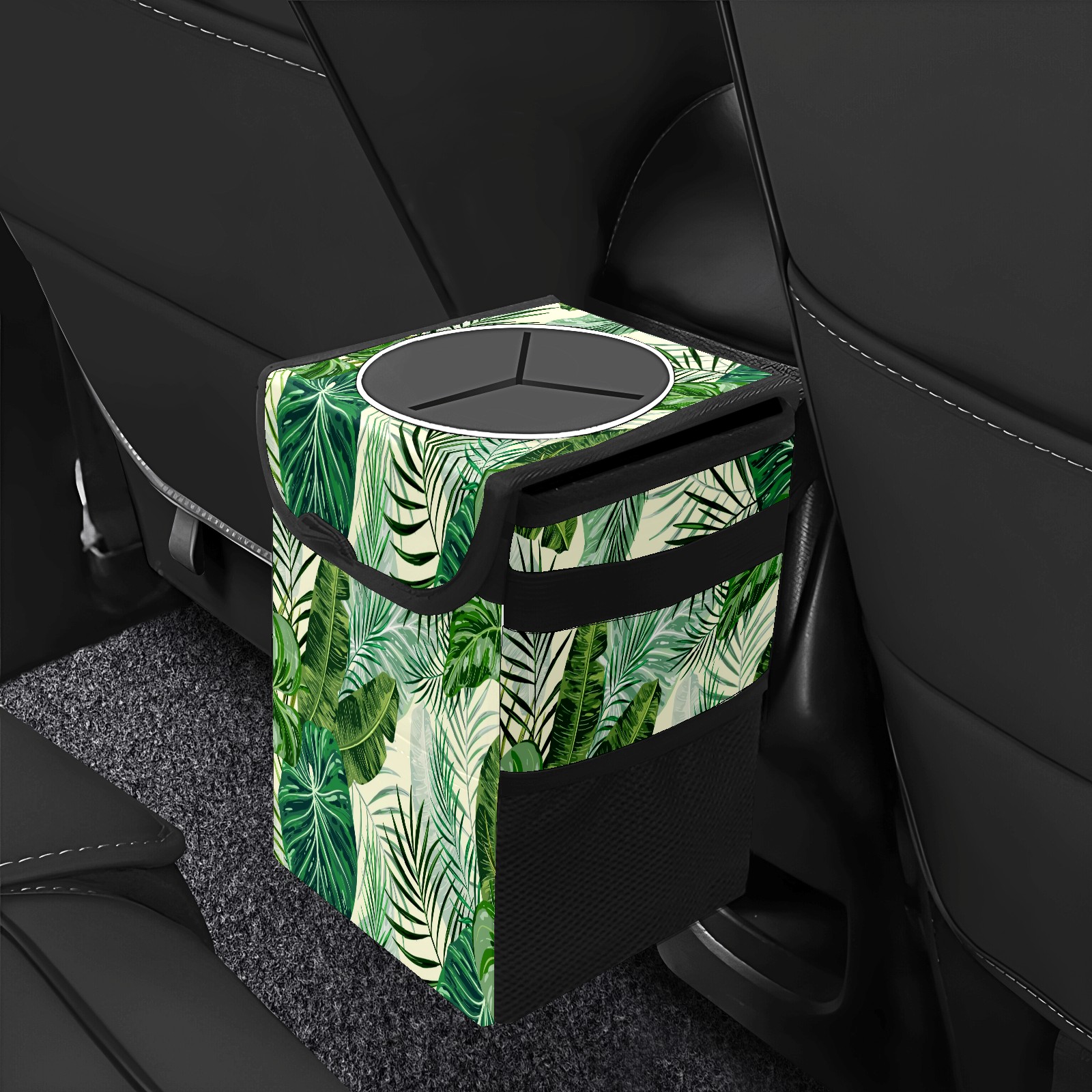 Car Garbage Can — Multi-functional, Lightweight Portable, Reusable Vehicle Trash Can, Waterproof with Sufficient Storage Capacity Green Tropical Leaves Background